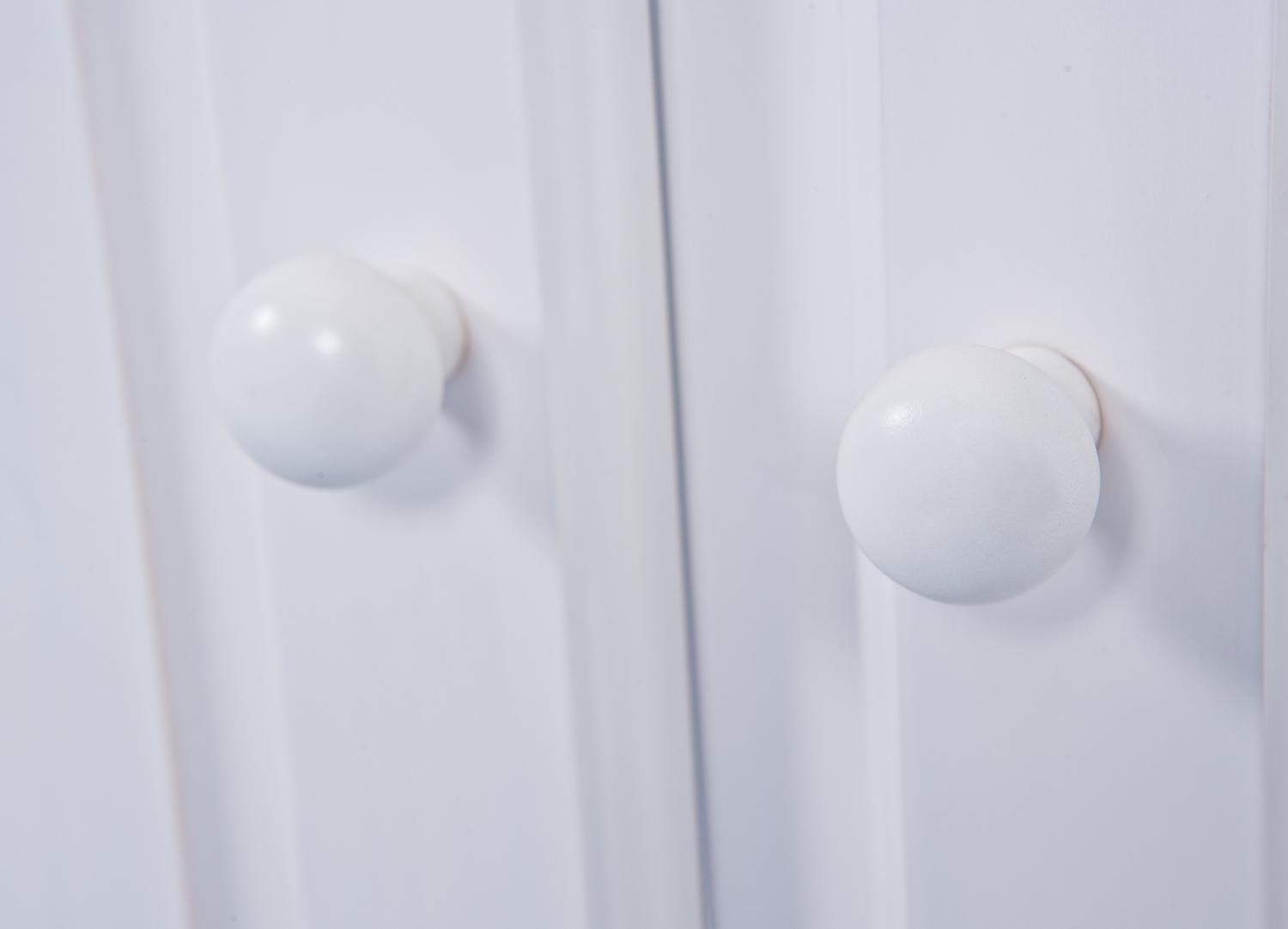 Die Oberfläche wurde mit weißem Lack behandelt, der schadstoffarm, pflegeleicht und wasserabweisend ist.