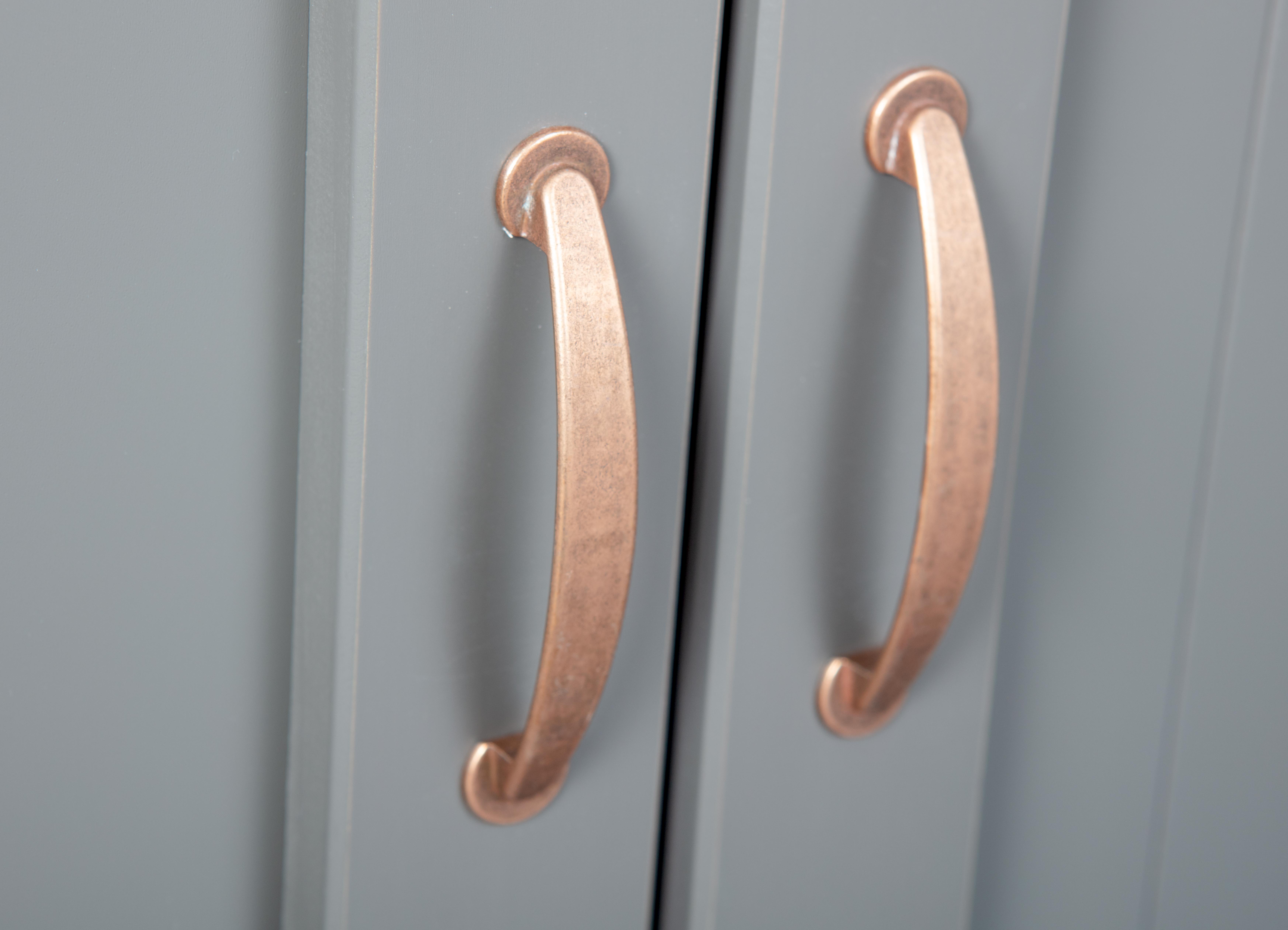Mit 3 Schubladen und 4 Ablageflächen hinter 3 großen Türen sorgt sie für eine optimale Aufbewahrungslösung. Auf der oberen Ablagefläche finden auch dekorative Objekte wie eine Vase oder ein Taschenleerer ihren Platz. Die Schubladen sind auf Metall-Auszugsschienen montiert, was für einen hohen Benutzerkomfort sorgt.