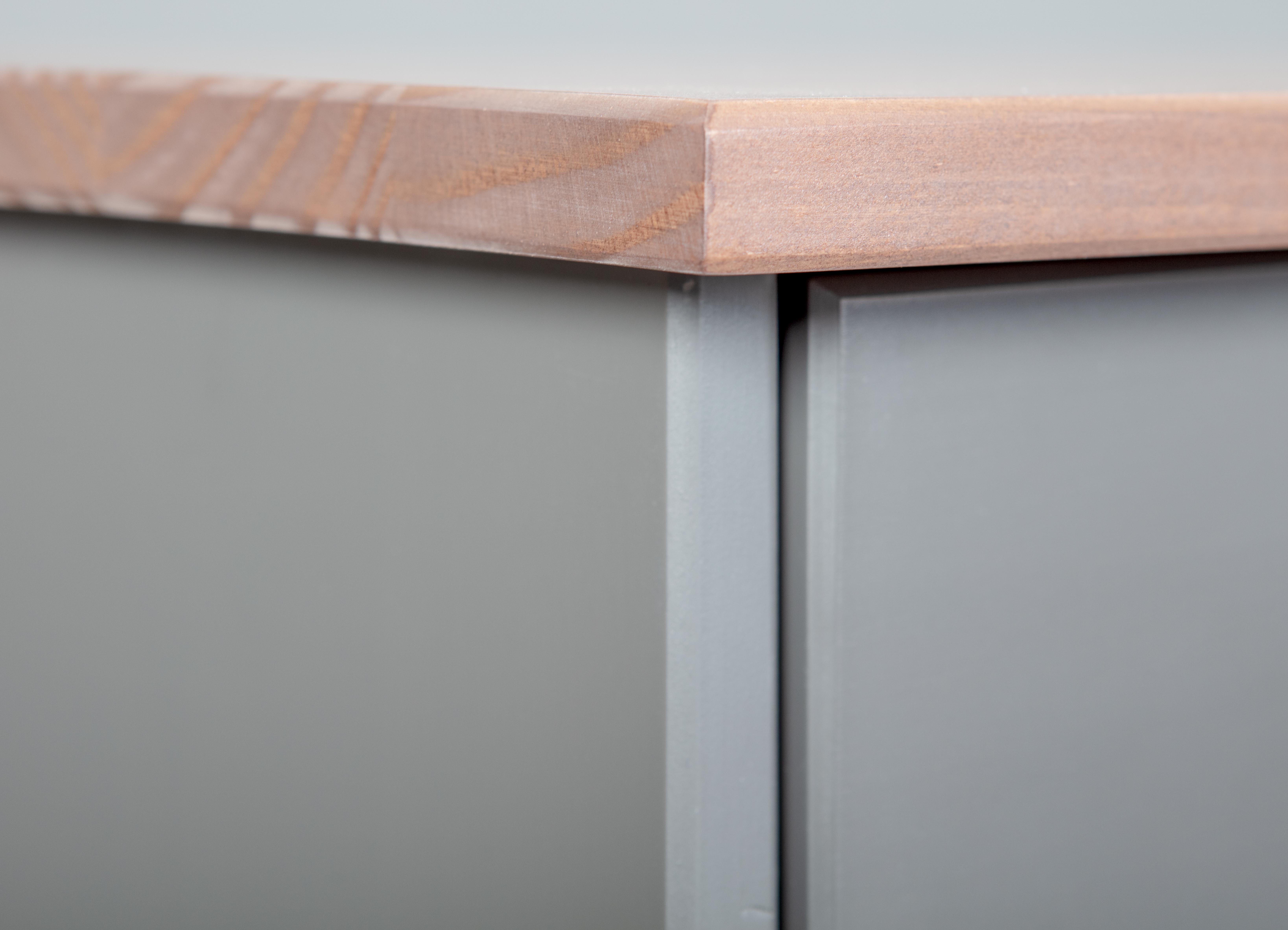 Kiefer massiv (Brasilien) in grau lackiert kombiniert mit einer Deckplatte in Sepia braun lackiert