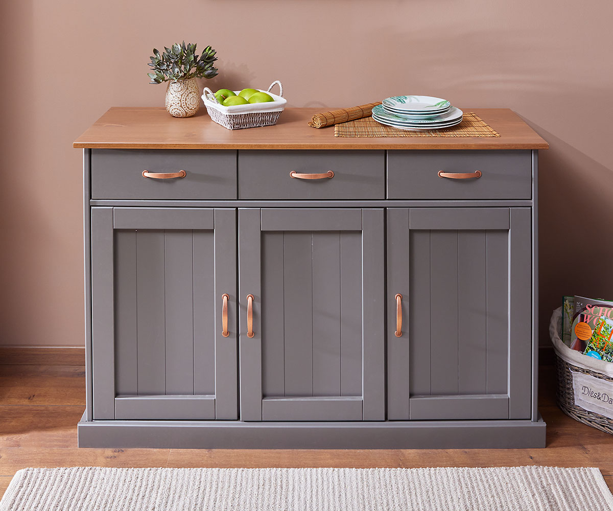 Praktisch, ästhetisch und funktional – diese Kommode bietet großzügigen Stauraum für Geschirr, Dokumente oder andere Gegenstände.
