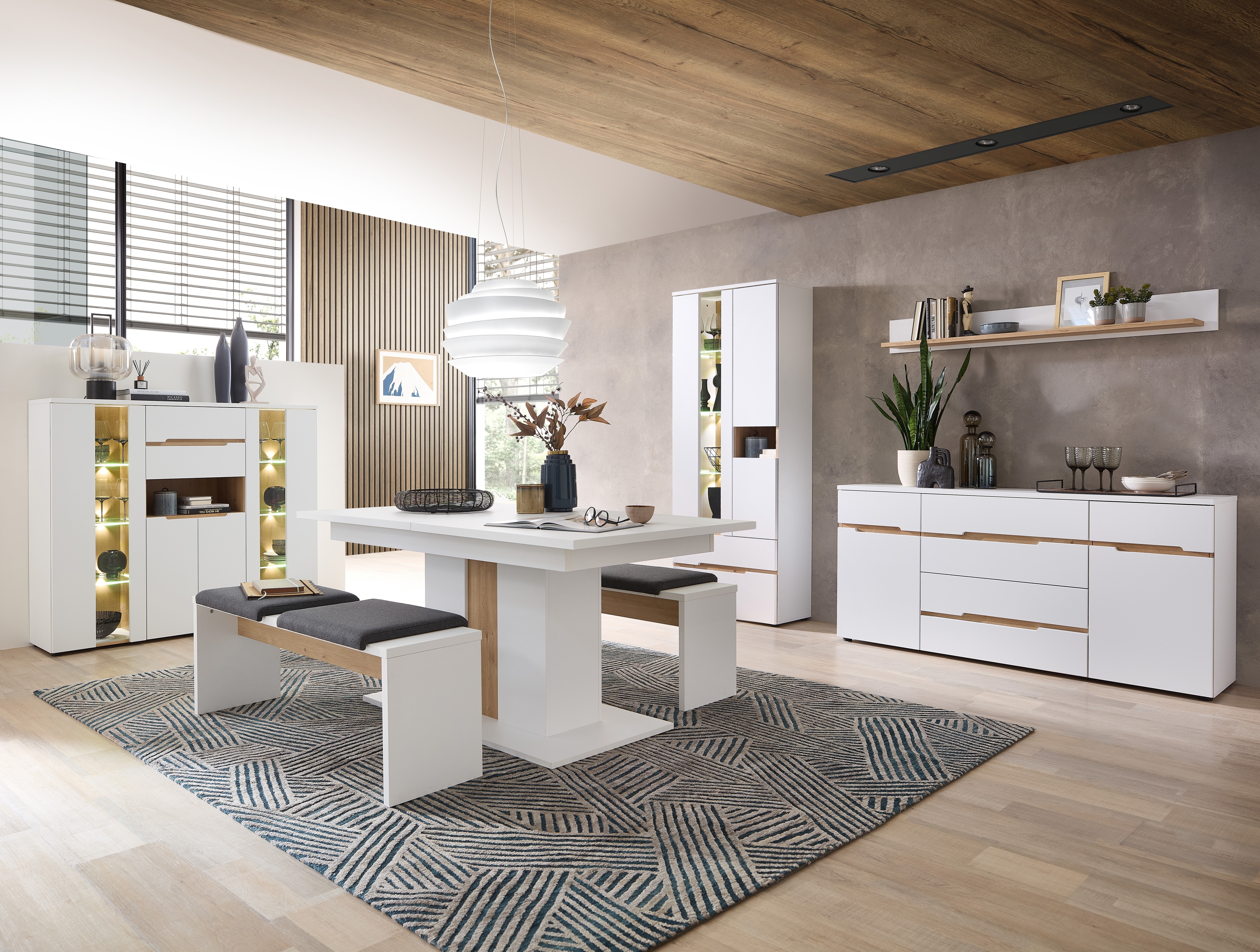 Korpus: Außen in Weiß, innen in Artisan Eiche Holznachbildung