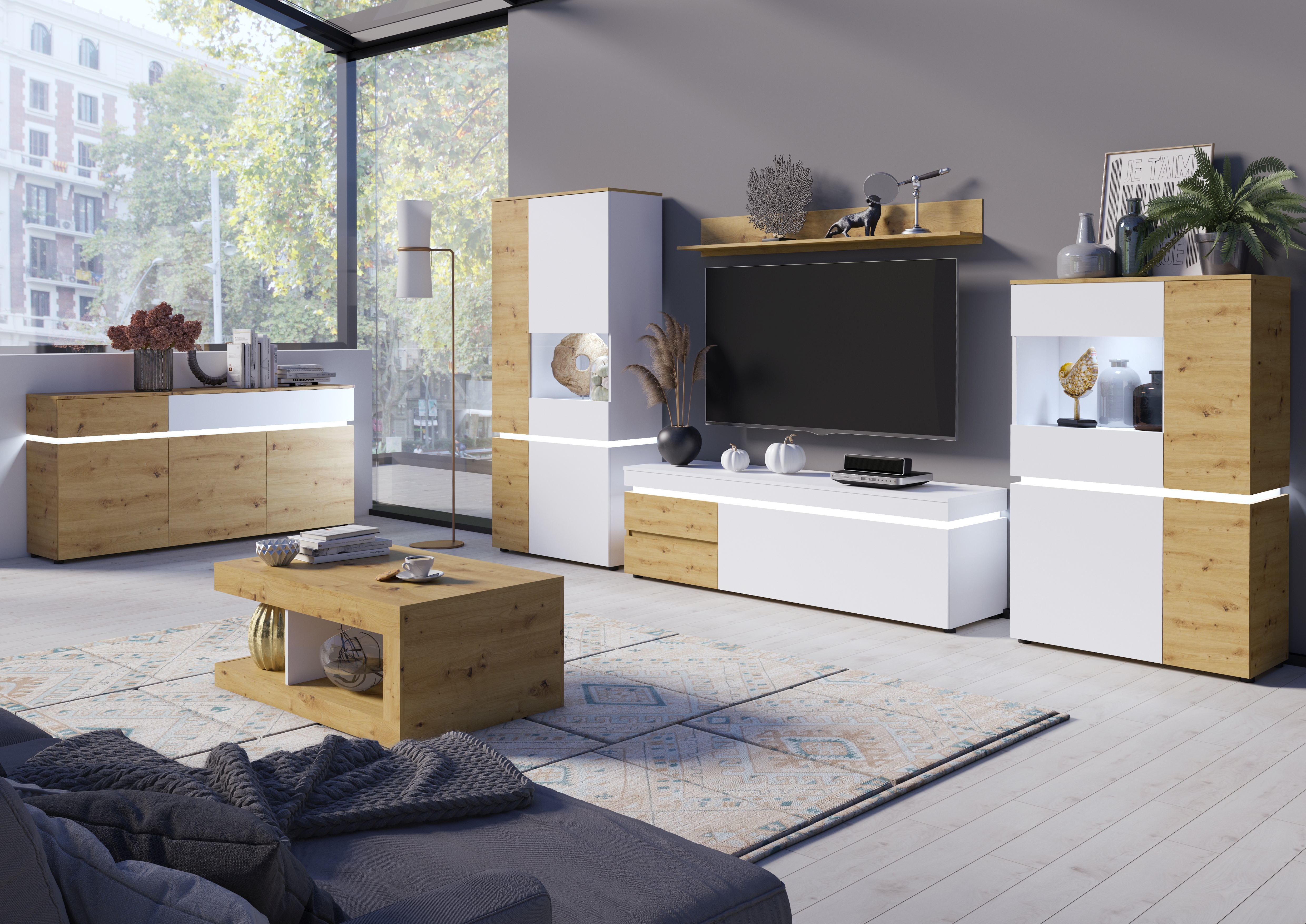 Front: Artisan Eiche Holznachbildung / Alpinweiß