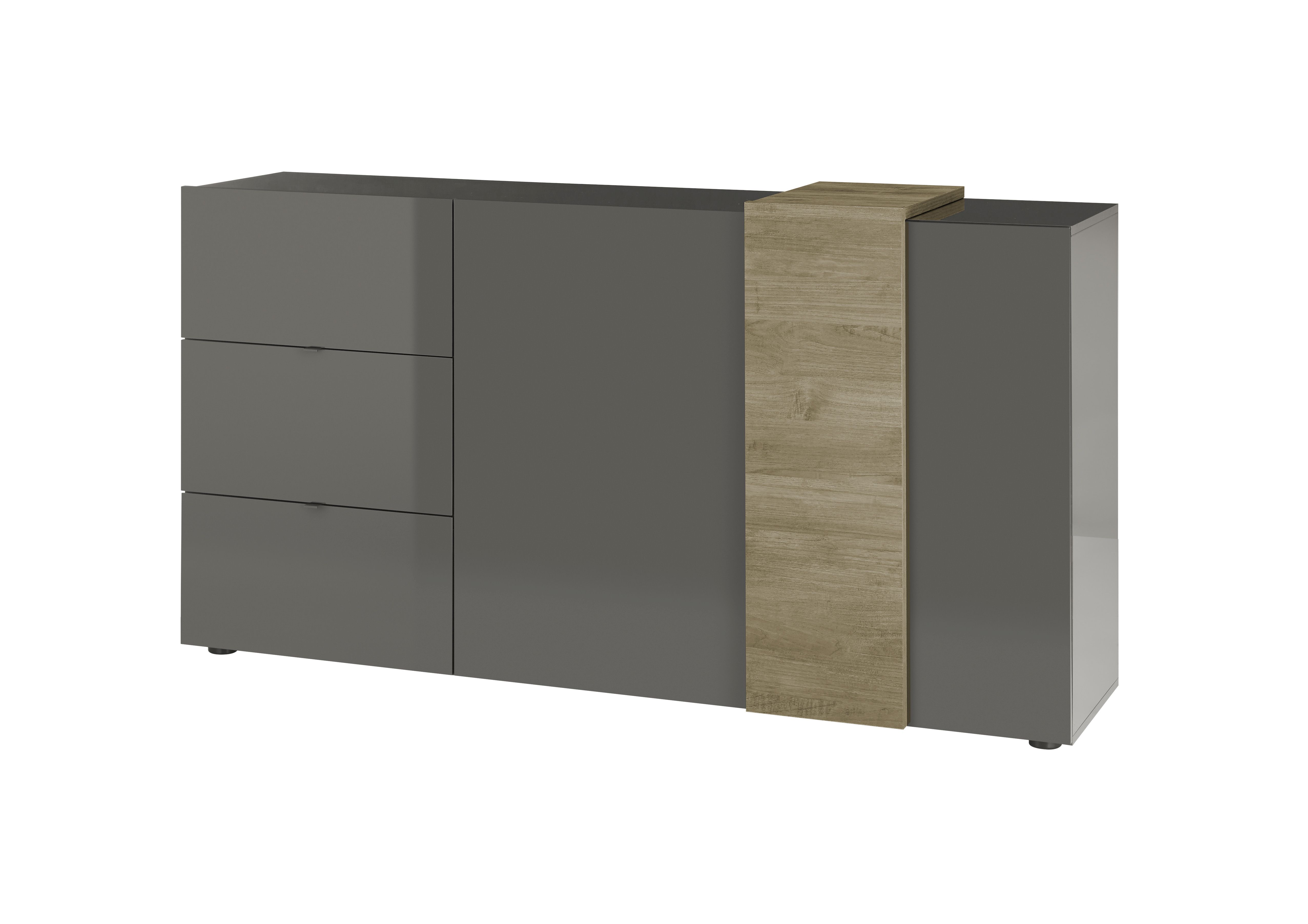 Front und Korpus: Hochglanz Dunkelgrau mit Absetzungen in Mercure Holznachbildung