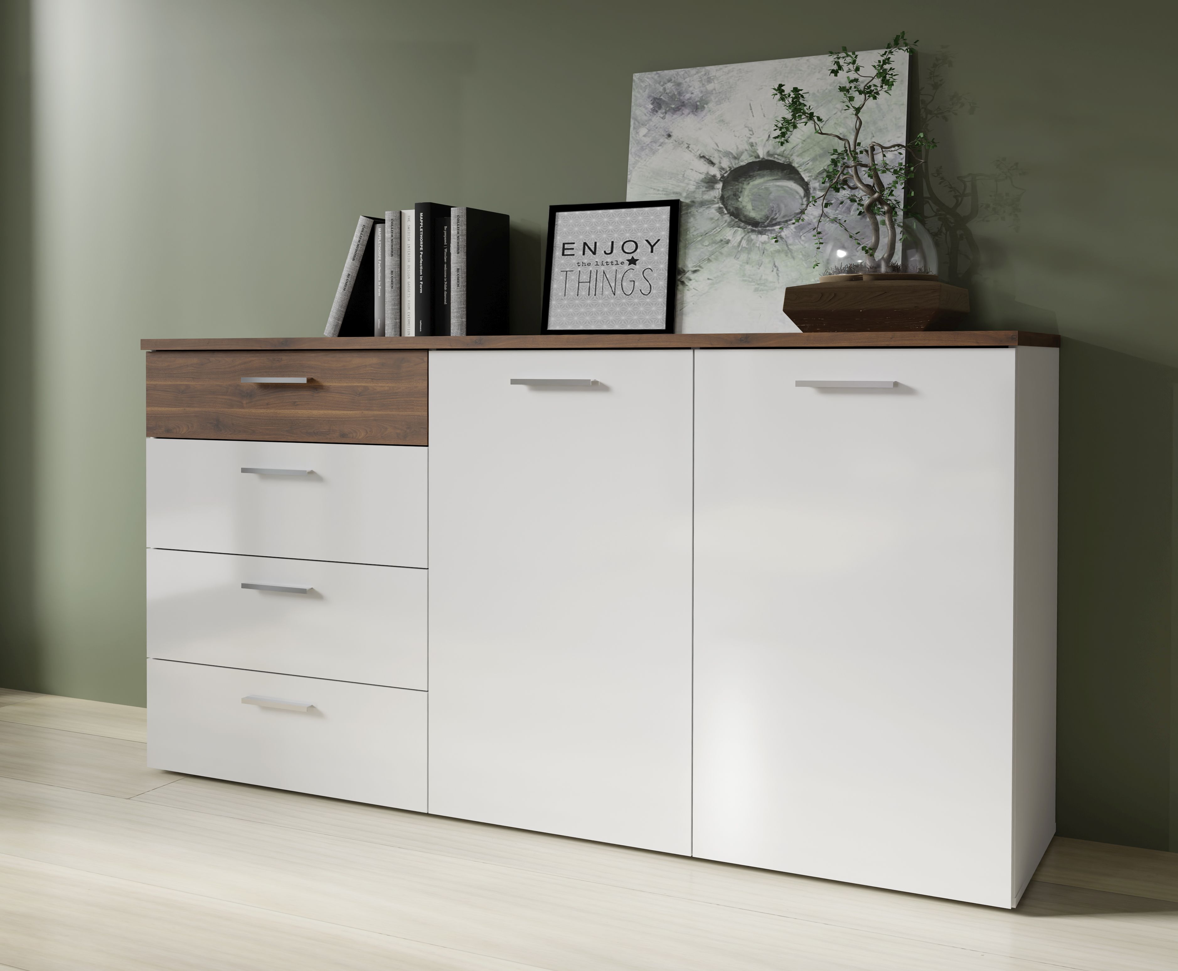 Weiß Hochglanz kombiniert mit Bakersfield Walnuß Holznachbildung