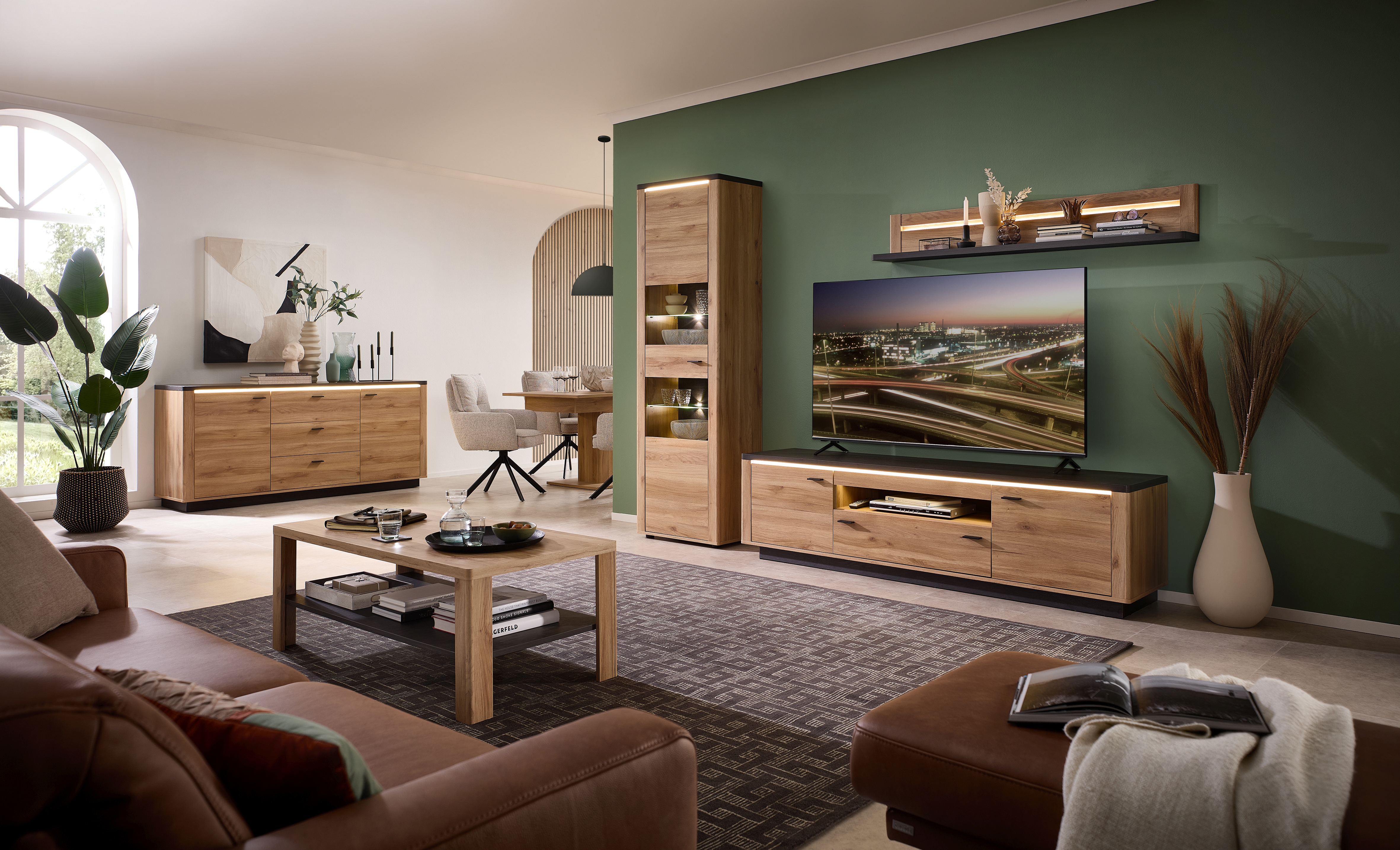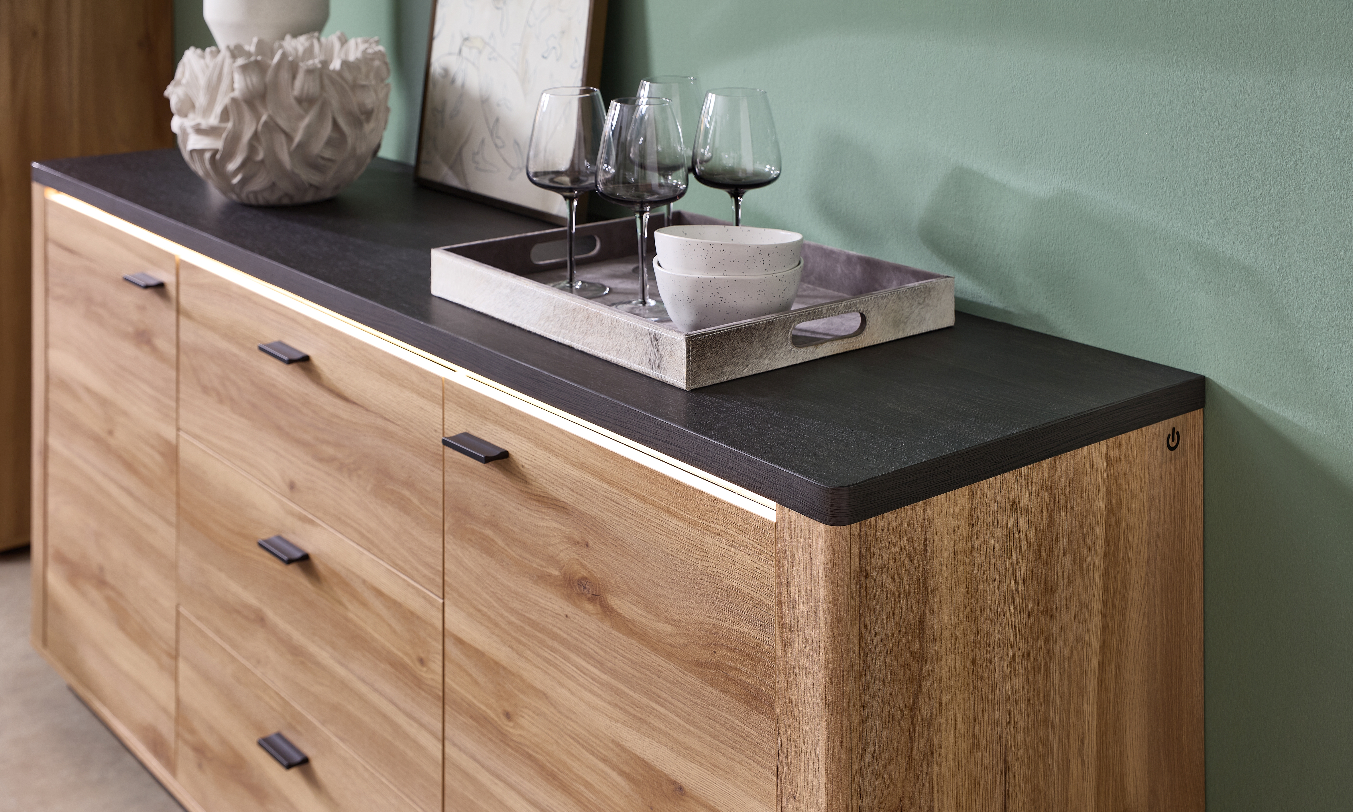 Korpus: Mauvella Eiche Holznachbildung kombiniert mit Absetzungen in Carbon Eiche dunkel Holznachbildung