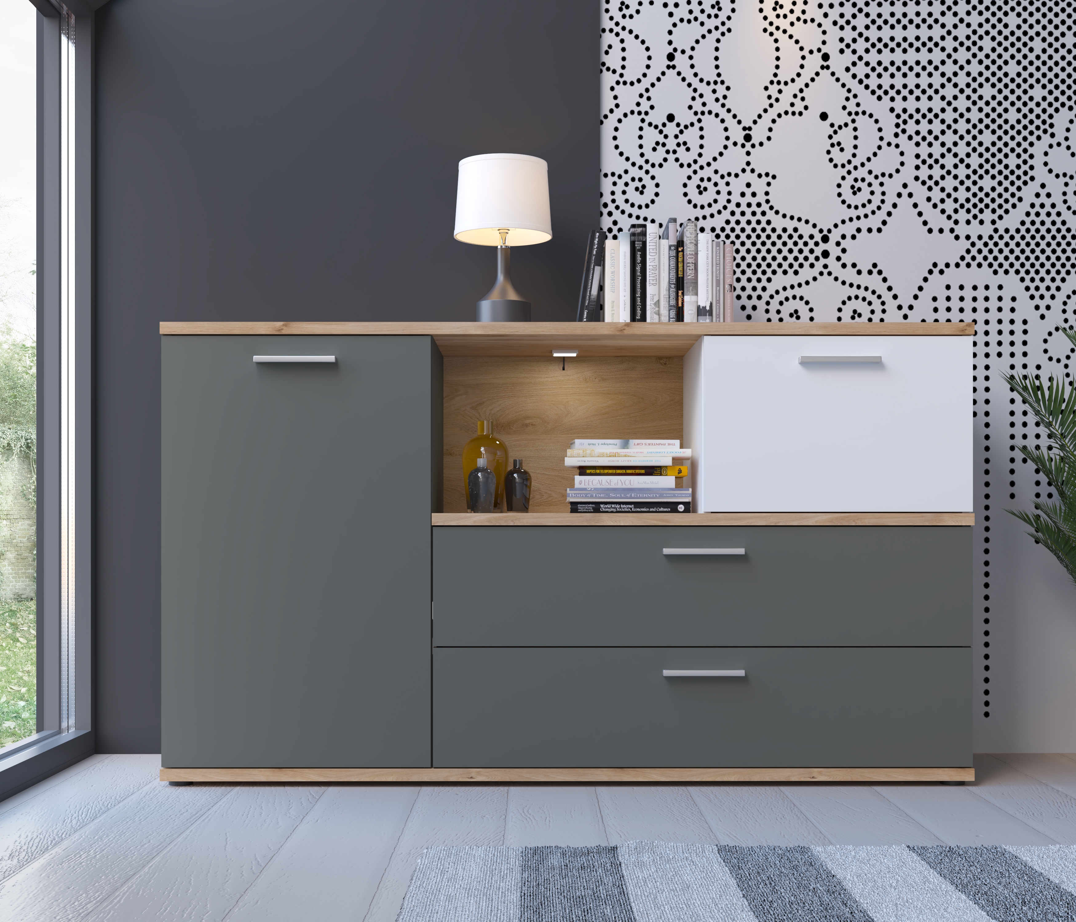 | Ausstattung Kommoden Phono Büro Regal: | Schublade(n), Türe(n) | ||