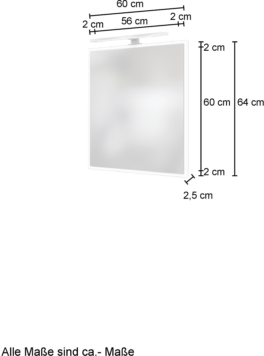 | Spiegel (ohne Aufbauleuchte) | 60 | 64 | 2 |