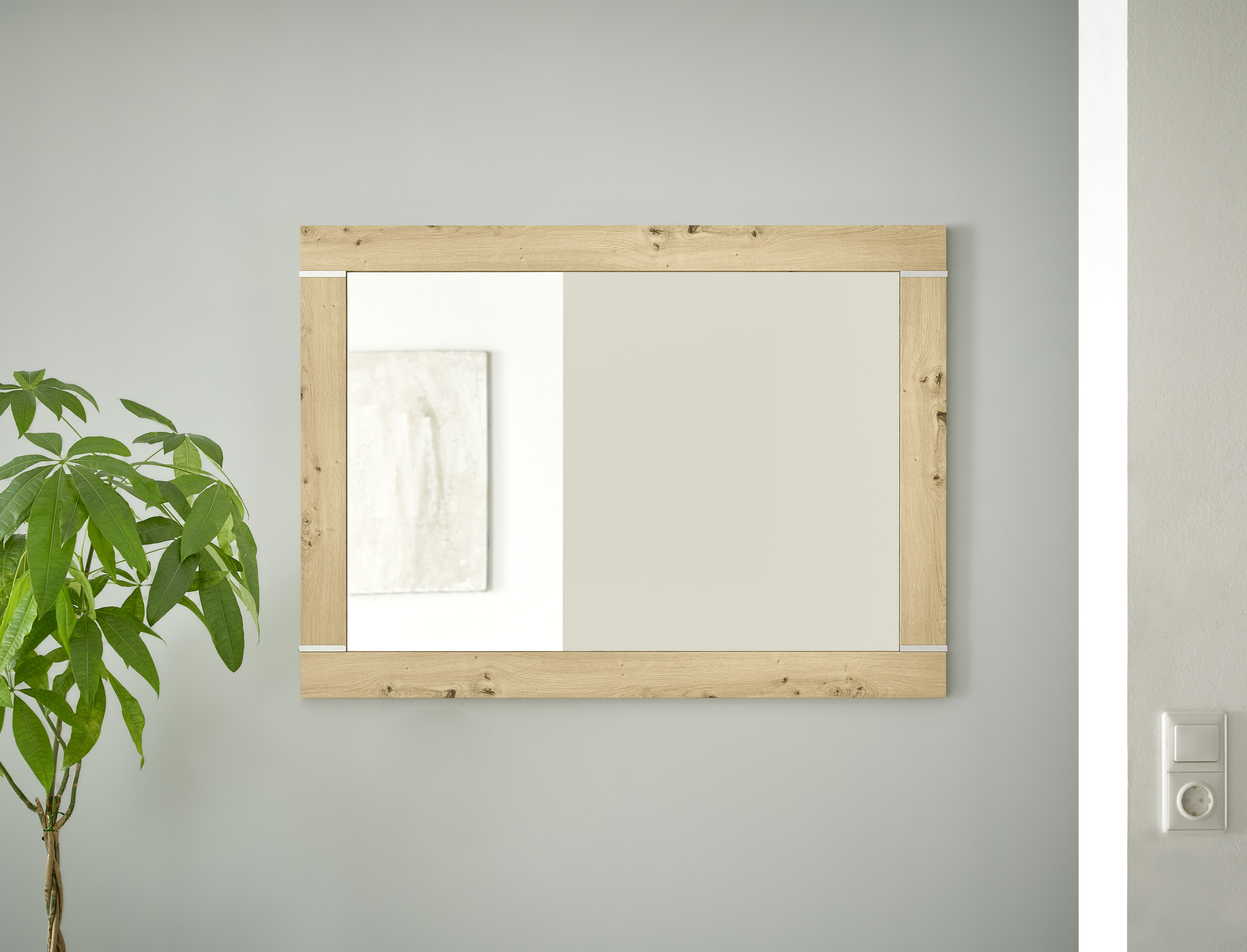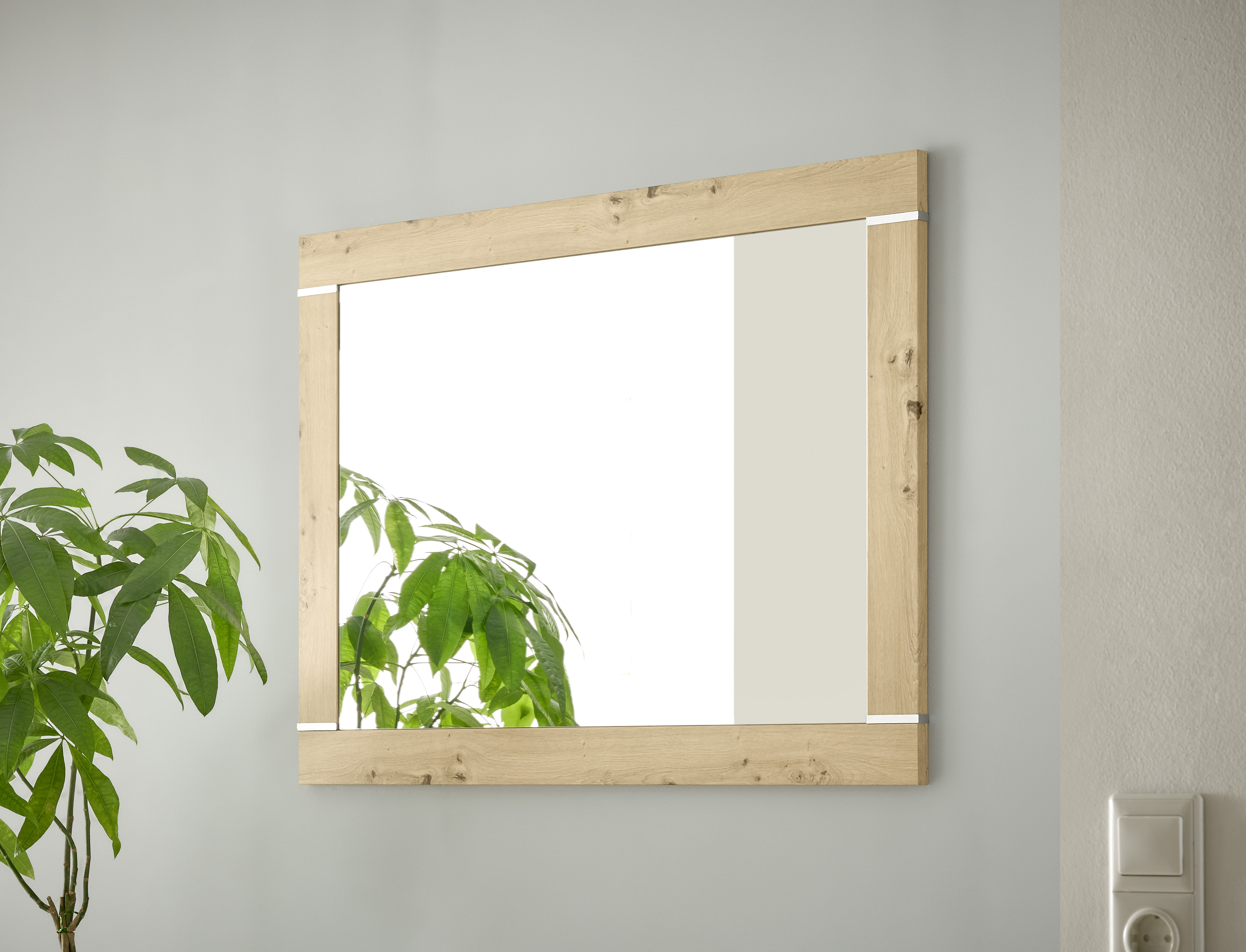 - Gerahmter Spiegel in zeitloser, heller Optik, der jeden Raum größer wirken lässt