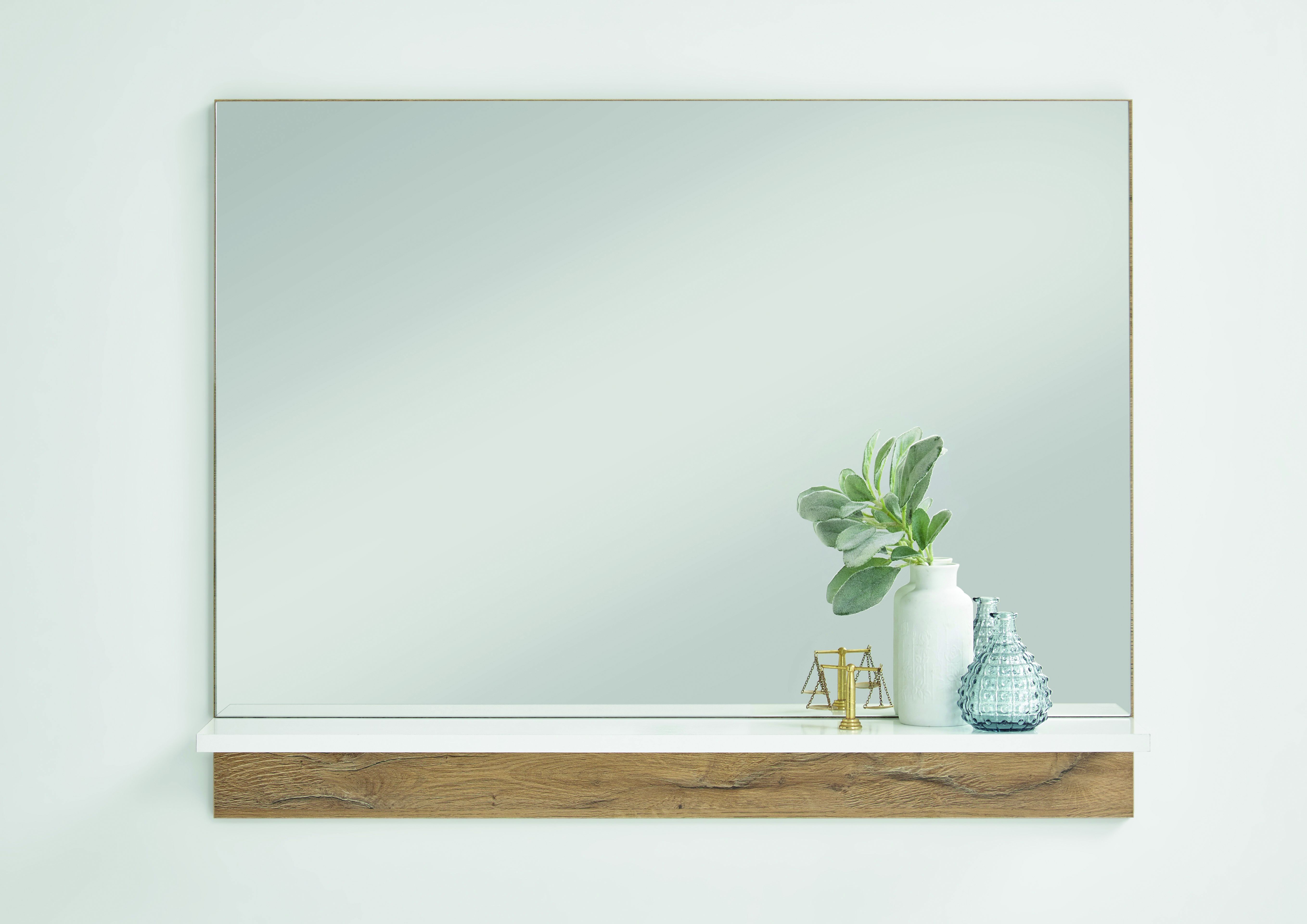 Korpus und Front: Alteiche Holznachbildung kombiniert mit Weiß Edelglanz / Spiegel