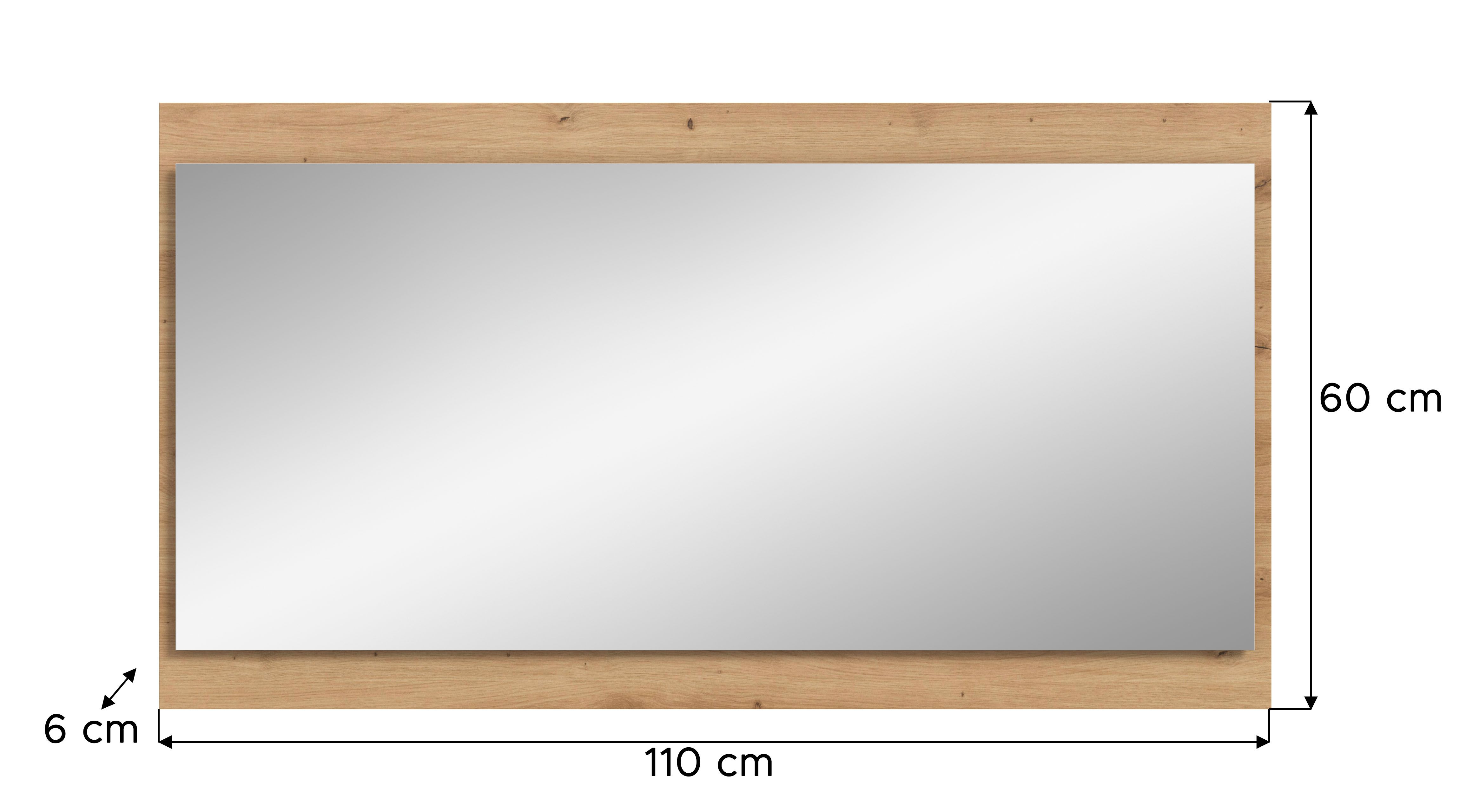 Der Spiegel 110x60x6 cm in Artisan Oak Nachbildung bietet eine große Spiegelfläche für mehr Licht und Raumgefühl. FSC®-zertifizierter Holzwerkstoff steht für Nachhaltigkeit. Die pflegeleichte Oberfläche und schnelle Montage machen den Spiegel besonders praktisch. Erweitere dein Zuhause flexibel mit weiteren Artikeln der Serie. Perfekt, um deinem Raum mehr Offenheit und Stil zu verleihen.