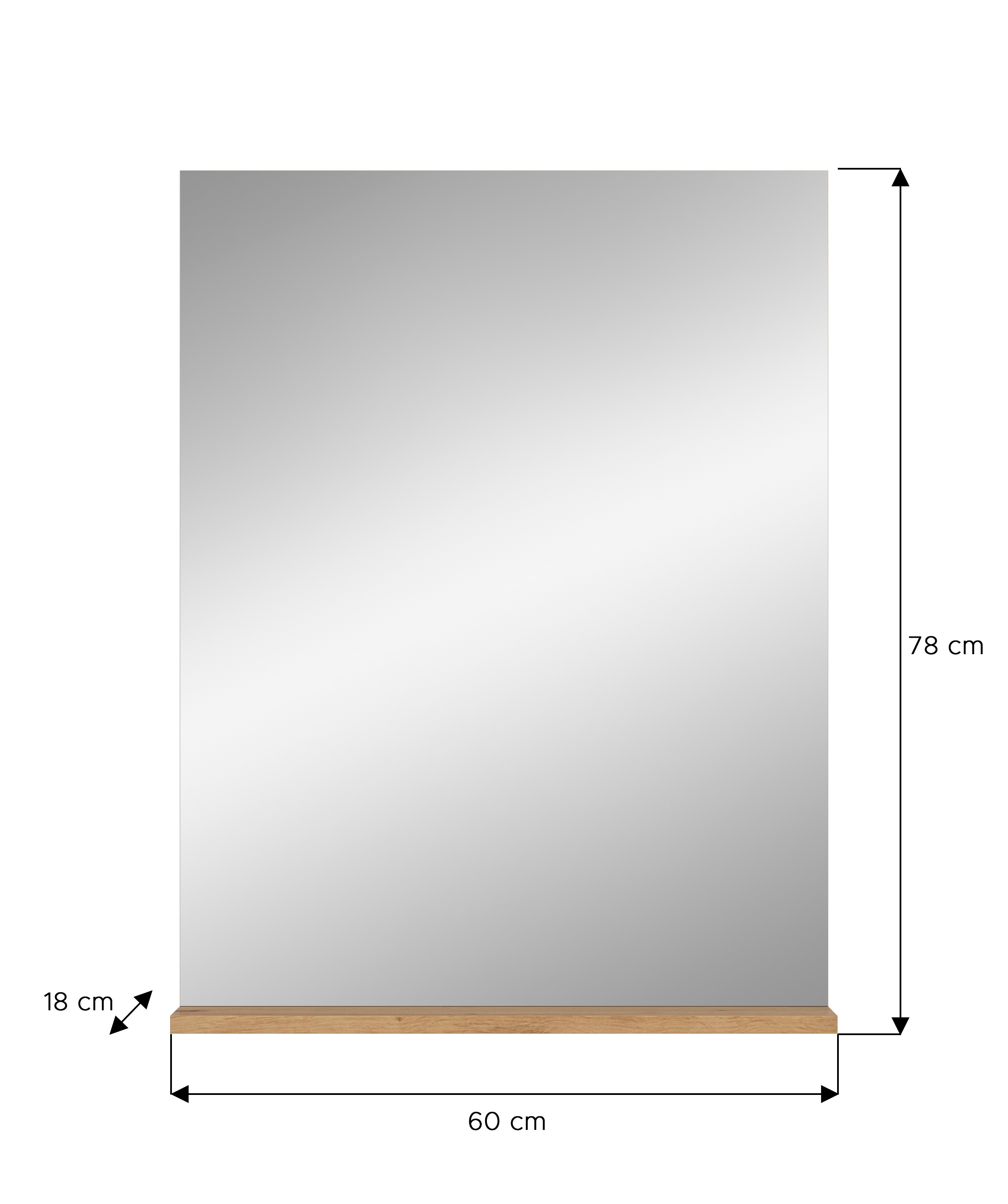 | Ausstattung Spiegel: | inkl. Ablage | ||