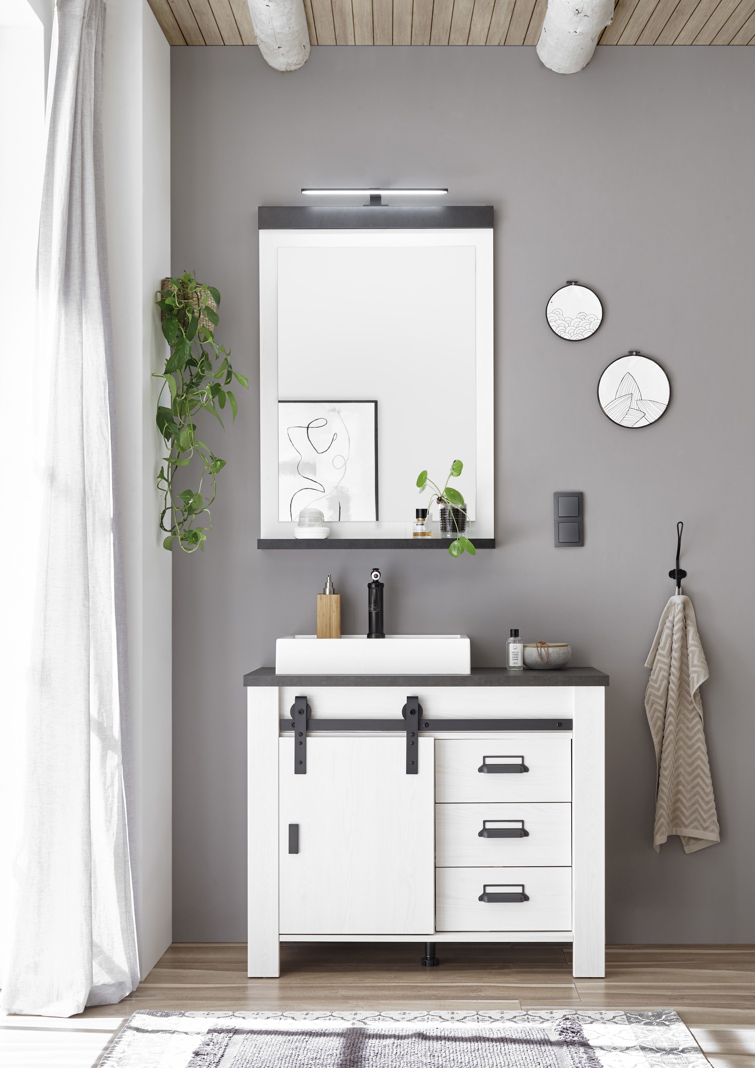 | Ausstattung Spiegel: | inkl. Ablage, inkl. Beleuchtung, inkl. Rahmen | ||