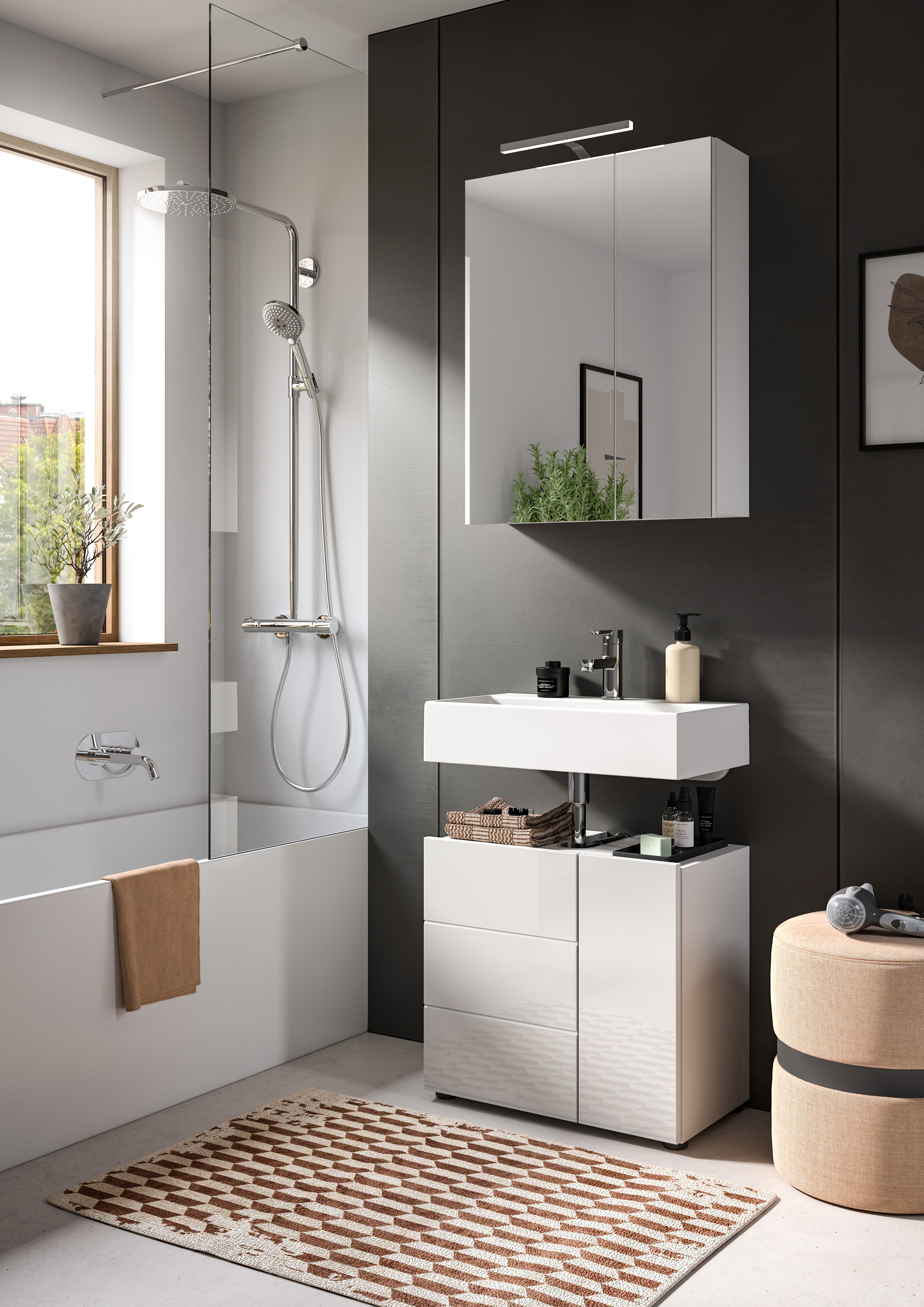 - Einsatzbereich: Geeignet für den Einsatz im Badezimmer, insbesondere über dem Waschbecken oder der Waschtischanlage, um zusätzlichen Stauraum und einen praktischen Spiegel zur Verfügung zu stellen.