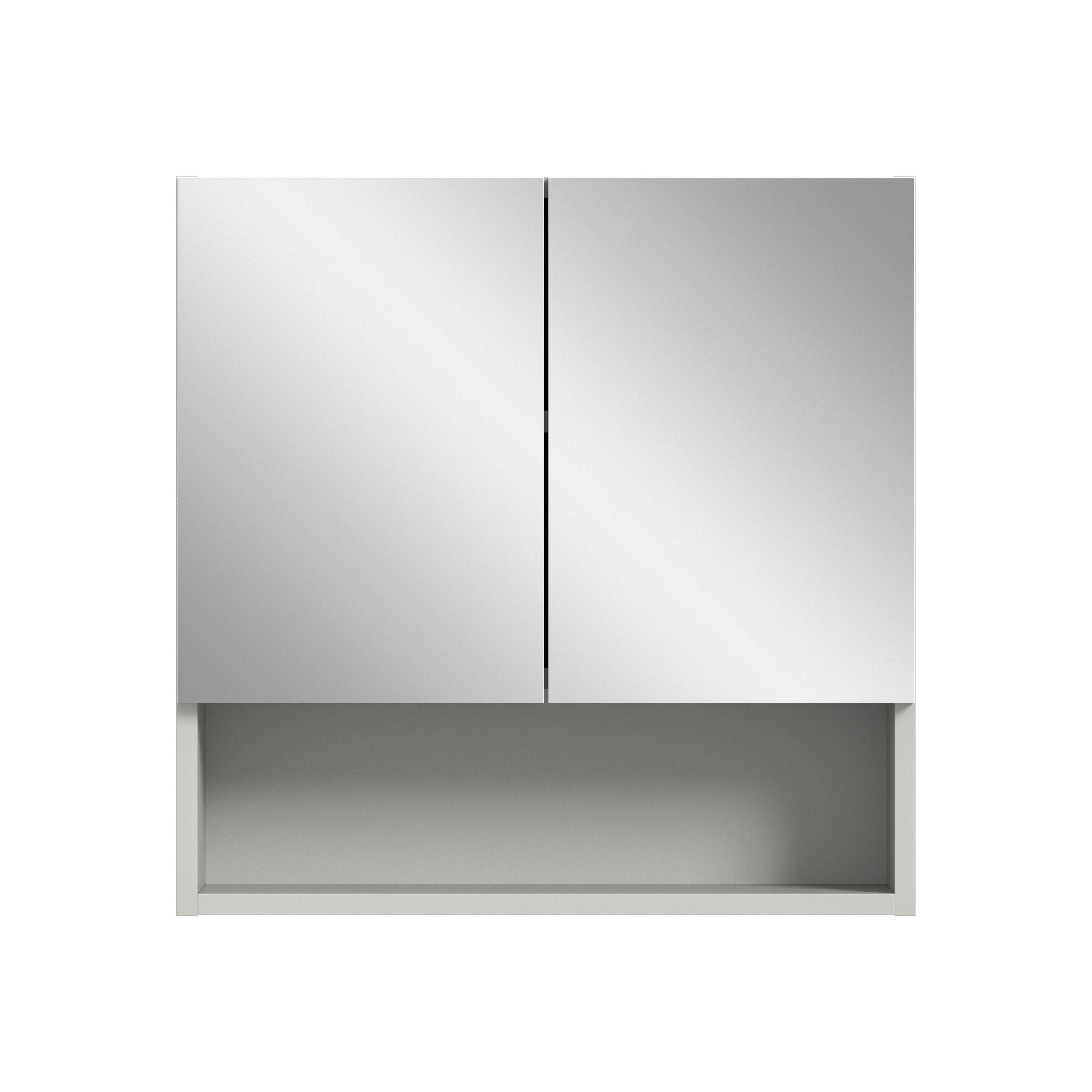 - Design/Stil: Moderner Spiegelschrank mit einer einheitlichen Hellgrau und einer eleganten Spiegelfront, die schlichte Eleganz und Funktionalität für das Badezimmer bietet.