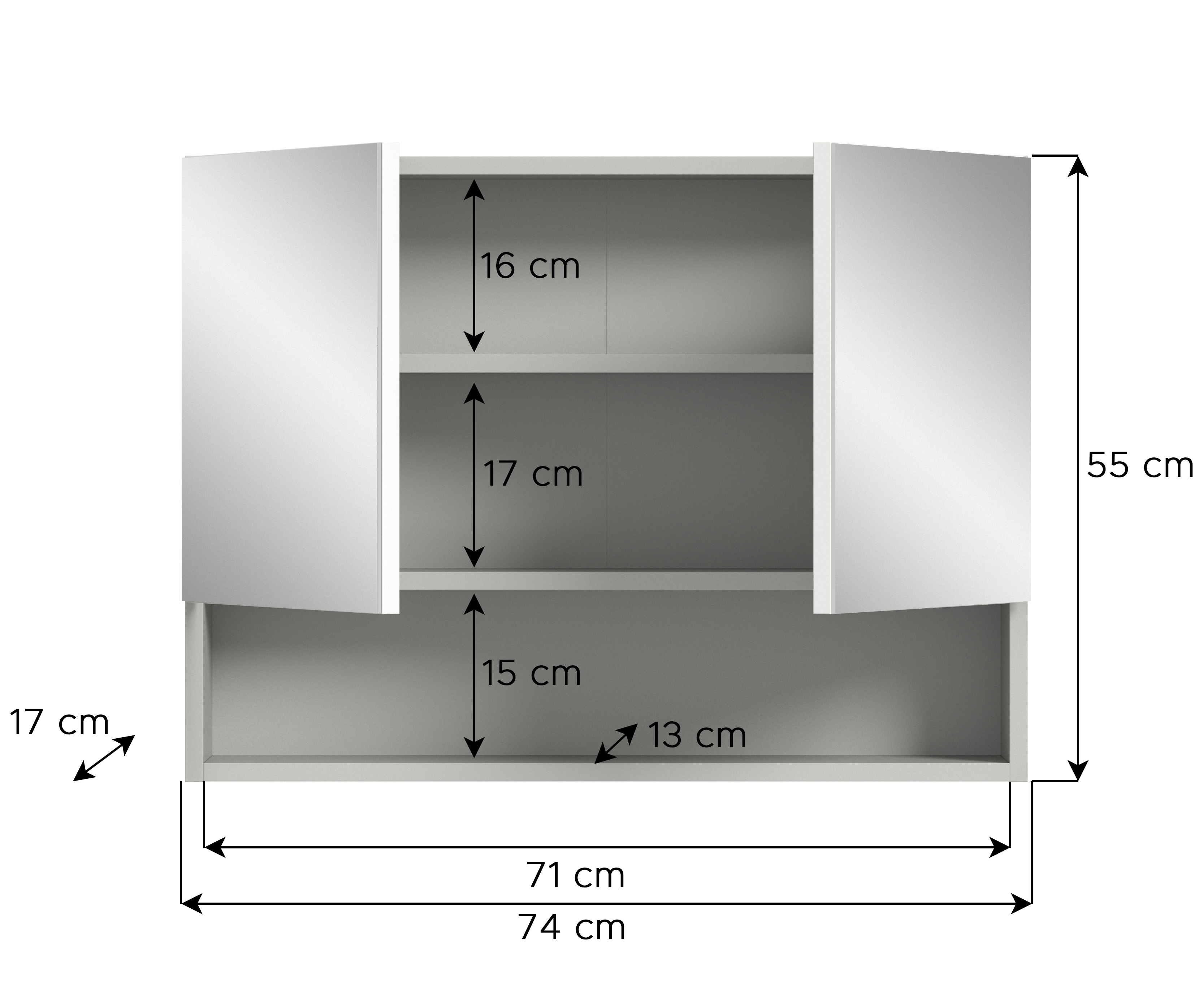 - Einsatzbereich: Ideal für Badezimmer als platzsparende und funktionale Lösung zur Aufbewahrung von Badutensilien und zur Bereitstellung einer praktischen Spiegelfläche.