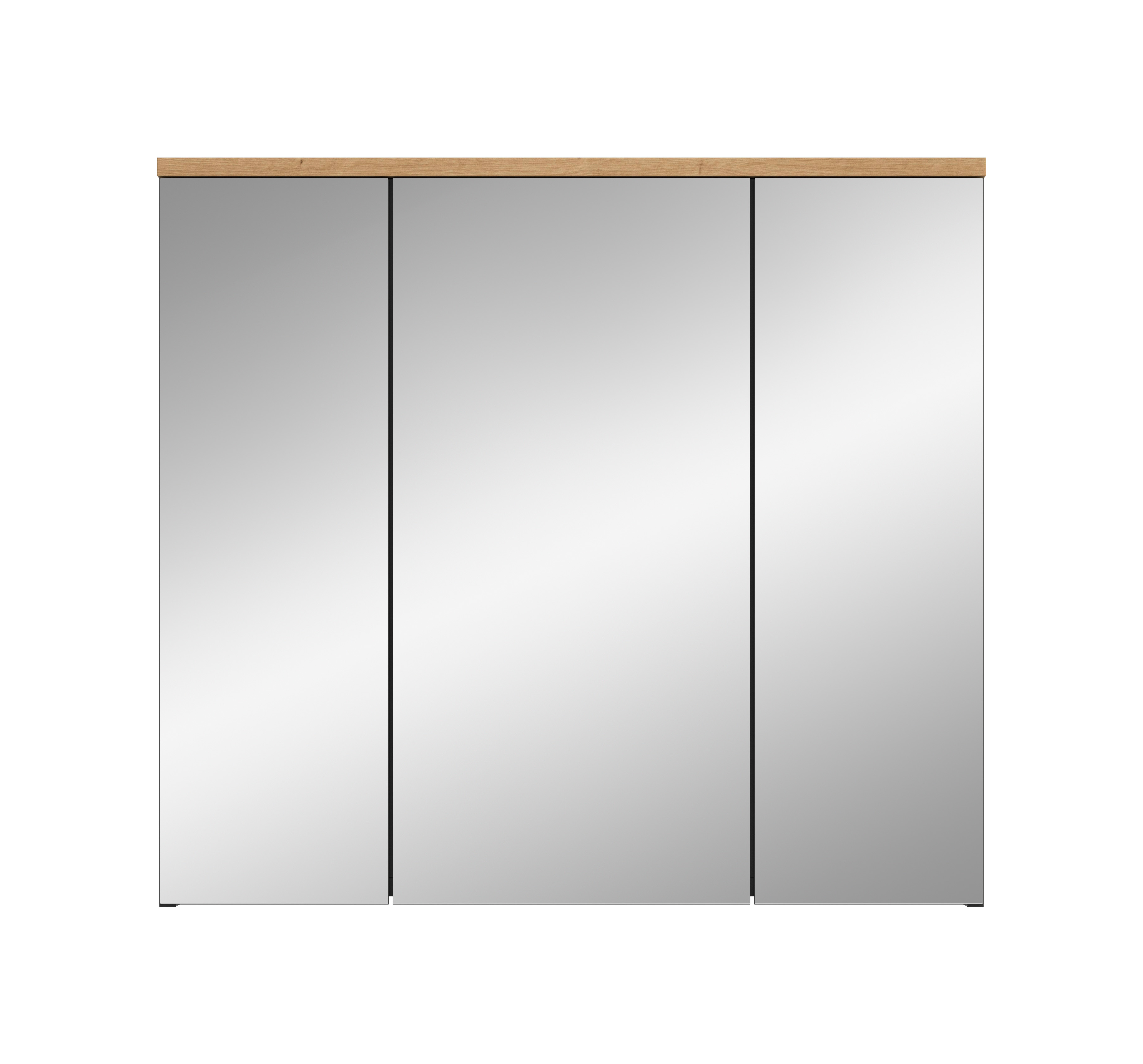 Mit drei großen Spiegeltüren bietet der Schrank eine klare Reflexion und zusätzlichen Komfort im Badezimmer. Hinter den Türen verbirgt sich ein großzügiger Stauraum, der für Ordnung und Übersichtlichkeit sorgt. Diese Kombination aus Spiegelflächen und verdecktem Stauraum macht den Spiegelschrank zur idealen Lösung für ein aufgeräumtes Badezimmer.