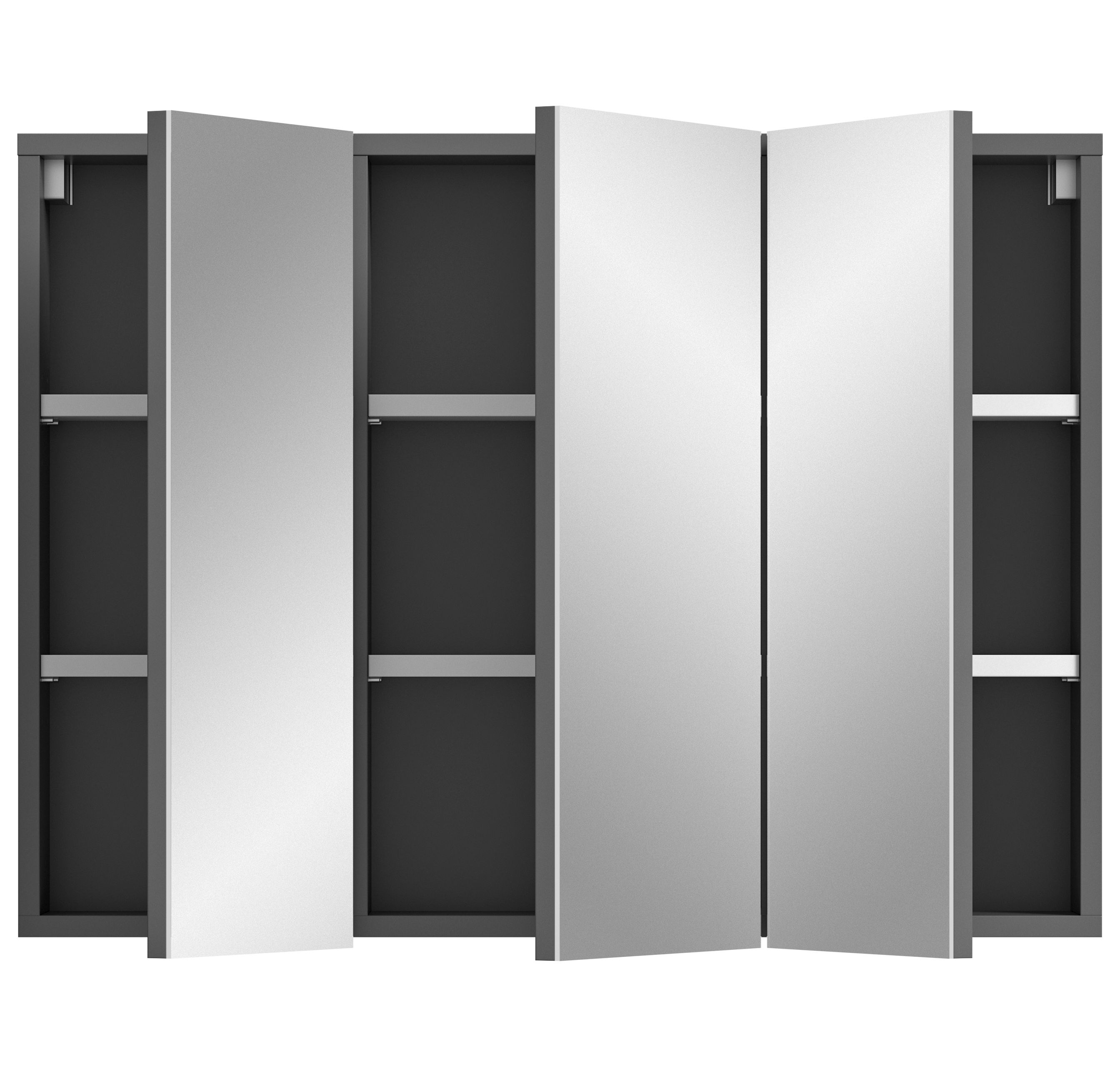 - Funktionalität: Mit integriertem Stauraum hinter den Spiegeltüren bietet der Spiegelschrank eine praktische Lösung zur Aufbewahrung von Kosmetika, Medikamenten und anderen Badezimmerutensilien, während er gleichzeitig als Spiegel dient, um die tägliche Pflege zu unterstützen und den Raum optisch zu vergrößern.