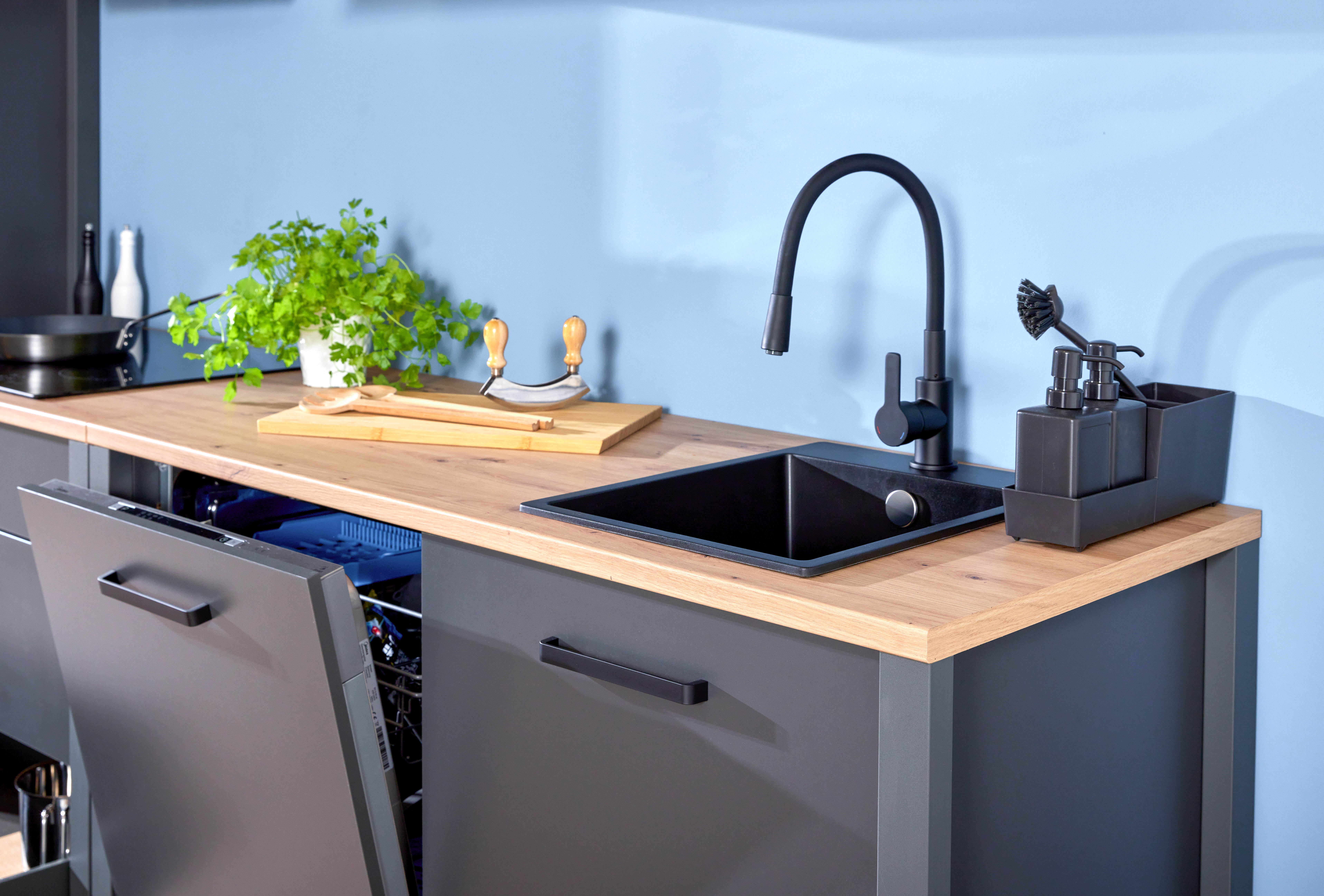 Front und Korpus: MDF (Mitteldichte Holzfaserplatte) Spanplatte in Anthrazit