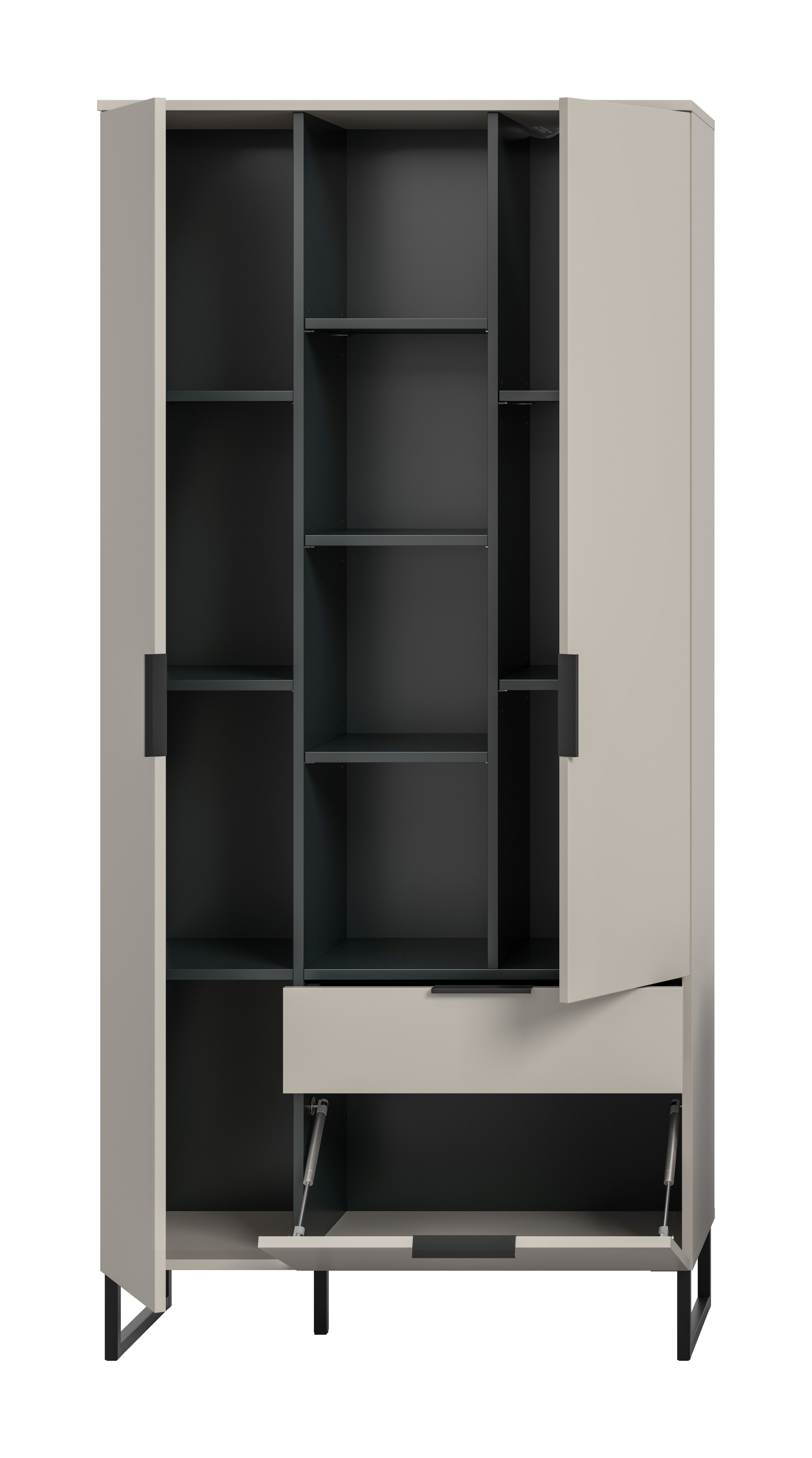 Die Stauraumtype in Kaschmir Nachbildung (90 x 192 x 37 cm) bietet mit zwei Türen, acht Einlegeböden, acht geschlossenen Fächern, vier offenen Fächern, einem Schubkasten und einer Klappe großzügigen Stauraum für deine Wohnräume. Die pflegeleichte Oberfläche in trendiger Farbausführung sorgt für eine moderne und elegante Optik. Dieses Möbelstück ist ideal, um Ordnung zu schaffen und gleichzeitig stilvolle Akzente zu setzen. Die vielseitigen Nutzungsmöglichkeiten machen die Stauraumtype zu einem unverzichtbaren Möbelstück für dein Zuhause.