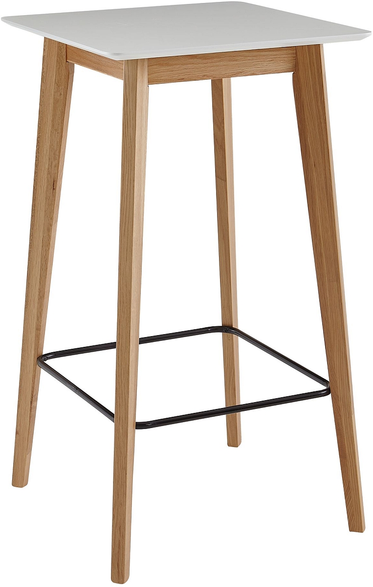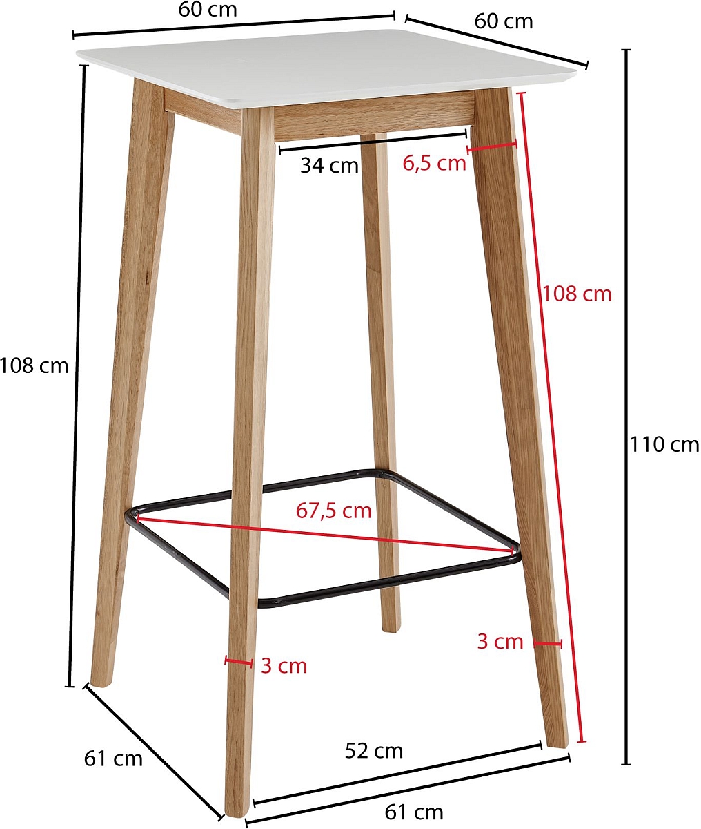 MATERIAL ✔ Tischplatte: Hochwertig verarbeitetes MDF mit matt weißer Lackierung // Tischbeine: Eiche Echtholz // Fußablage: lackiertes Eisen.