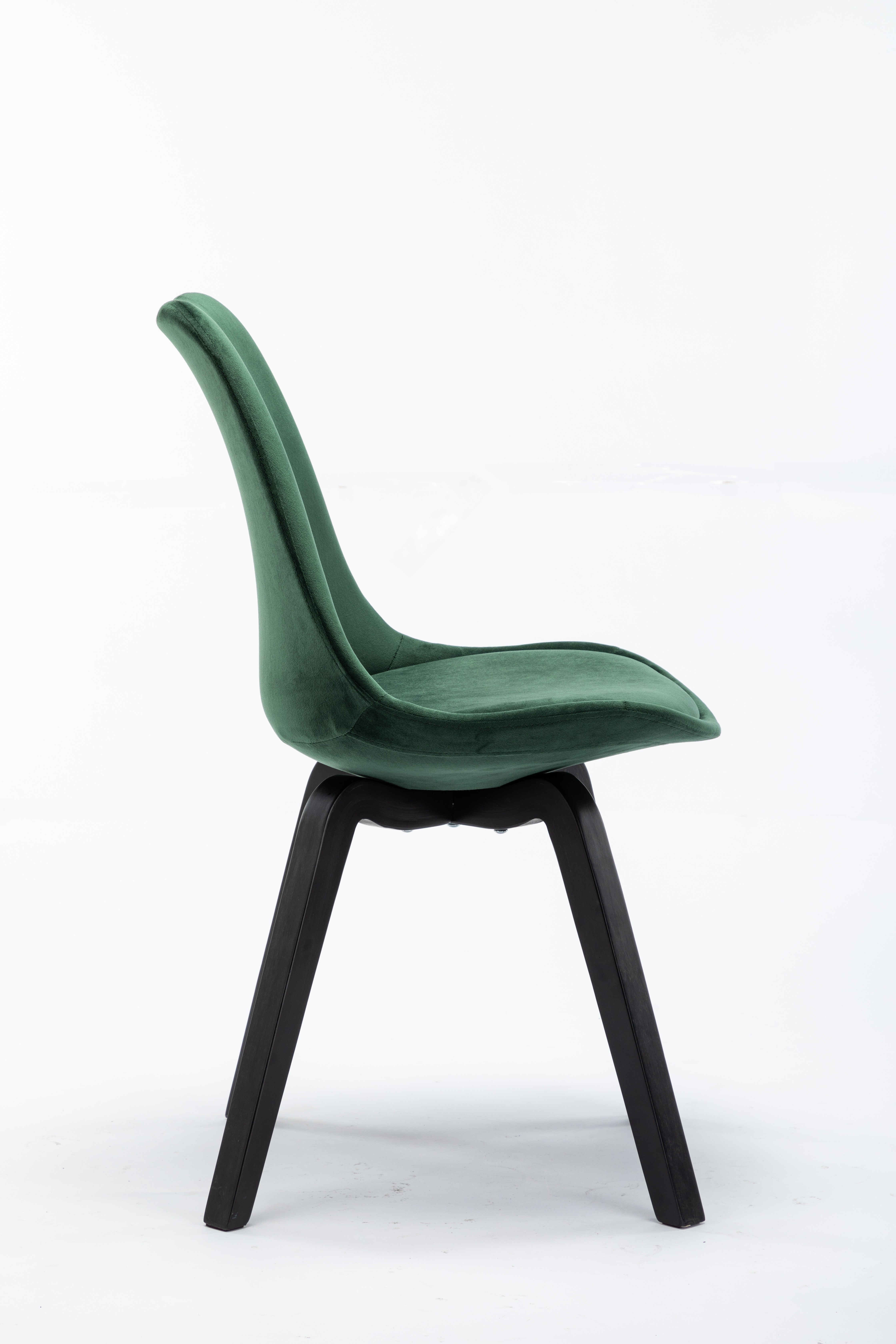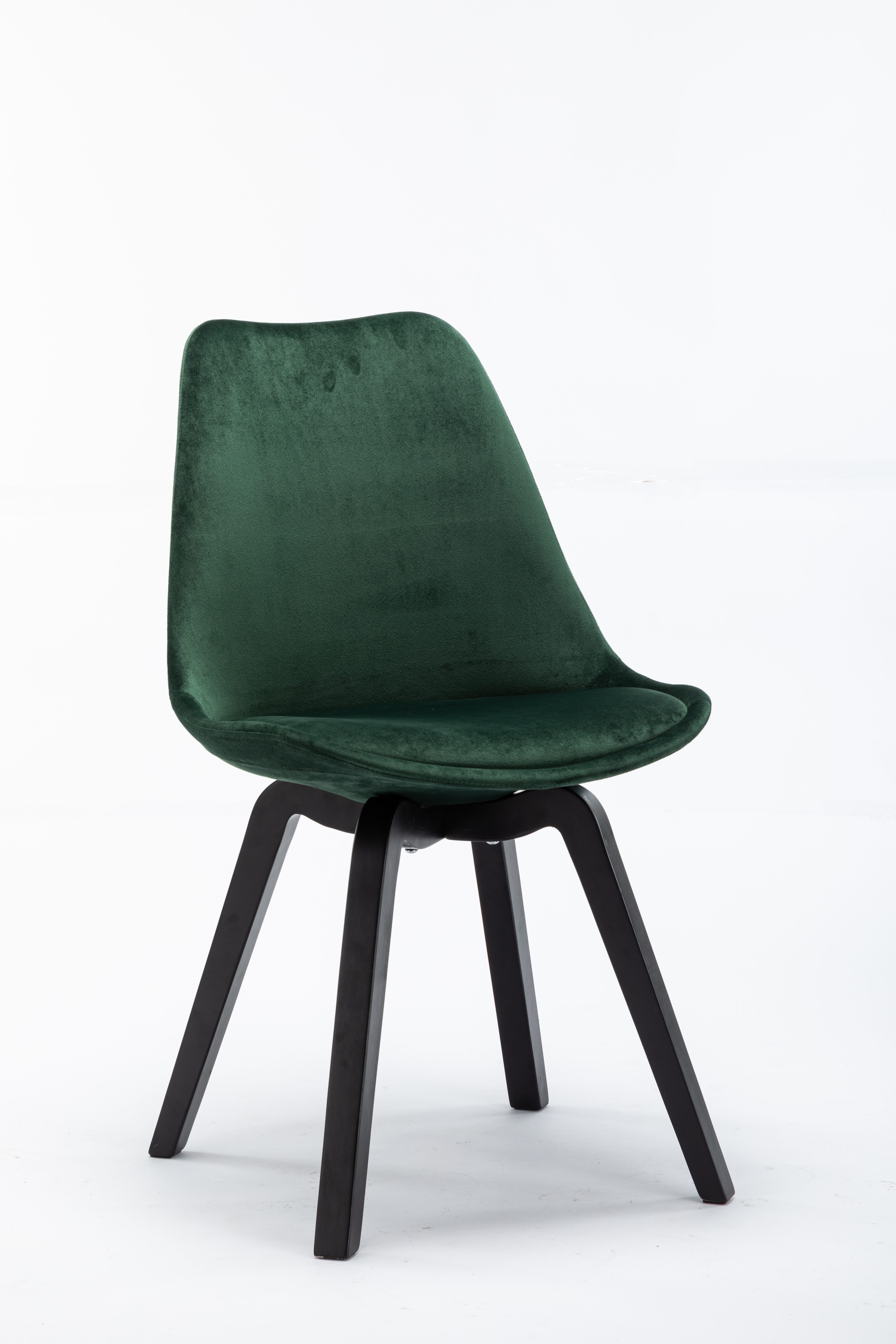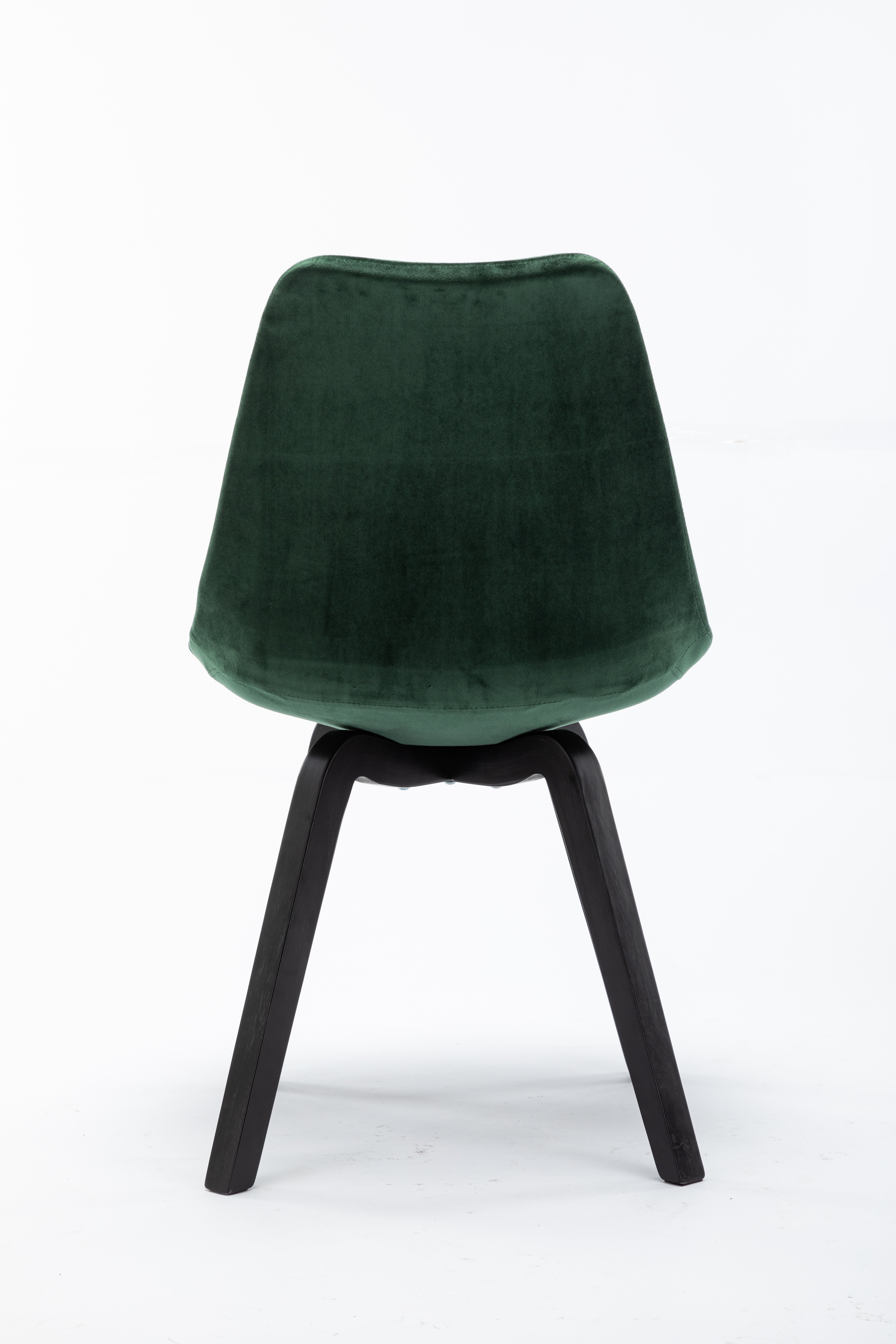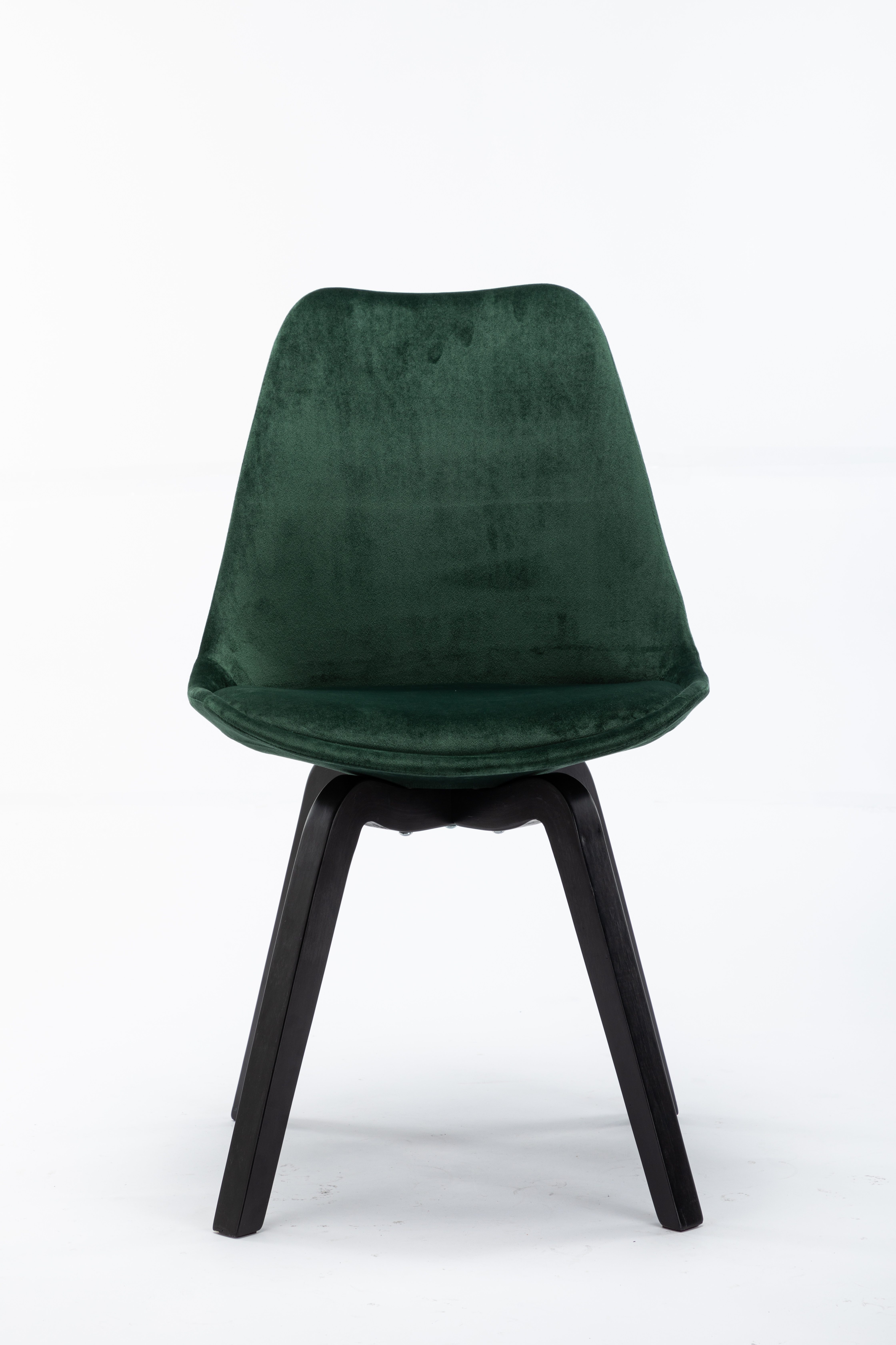 Dieser Polsterstuhl im 2er-Set im 60er Jahre Stil besticht durch sein modernes Design. Der Bezug besteht aus tannengrünem Samt und das schwarz-gebeizte 4 Fuß-Gestell aus Hevea Holz. Die Sitzfläche und die Rückenlehne sind angenehm weich gepolstert. Dieser Retro Stuhl macht sowohl als Einzelstück im Wohnzimmer, als auch als raffinierter Stuhl am Esszimmertisch eine hervorragende Figur. Er kann aber auch in einem Wartebereich oder in Kanzleien genutzt werden. Der Samtstuhl ist frei im Raum stellbar und kann wunderbar in ein bestehendes Raumkonzept integriert werden, denn er wertet Ihren Wohnraum stilvoll auf.