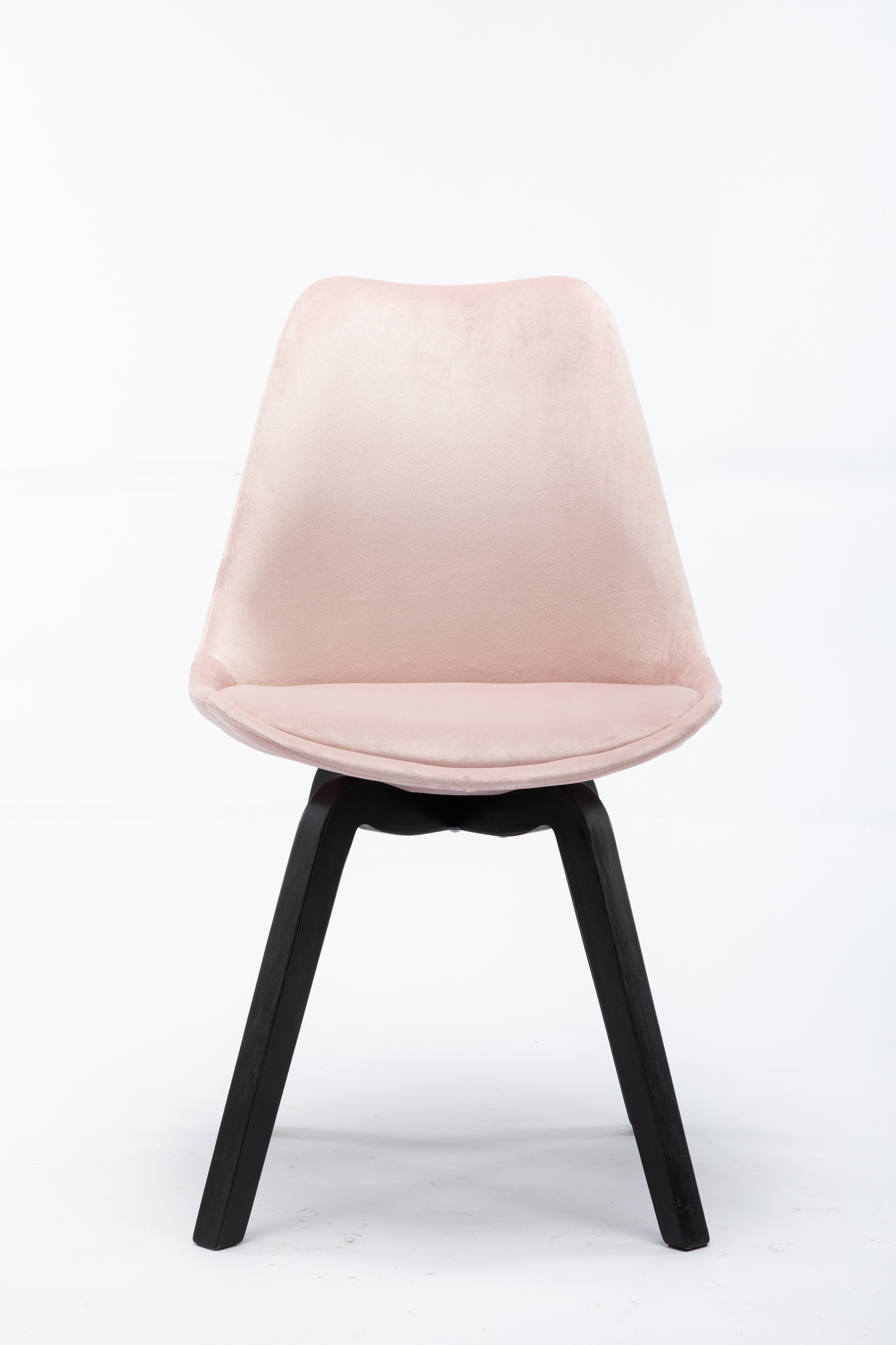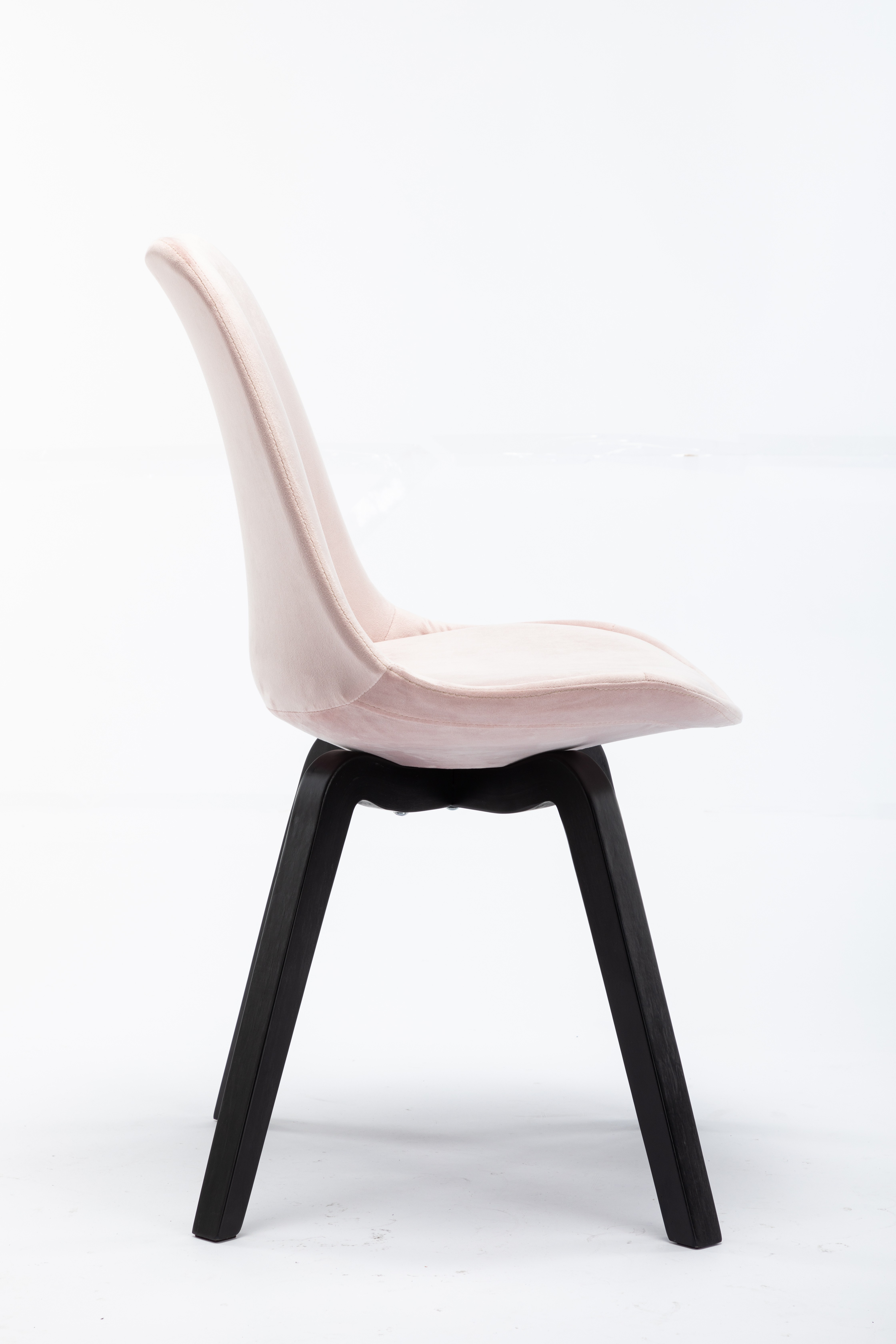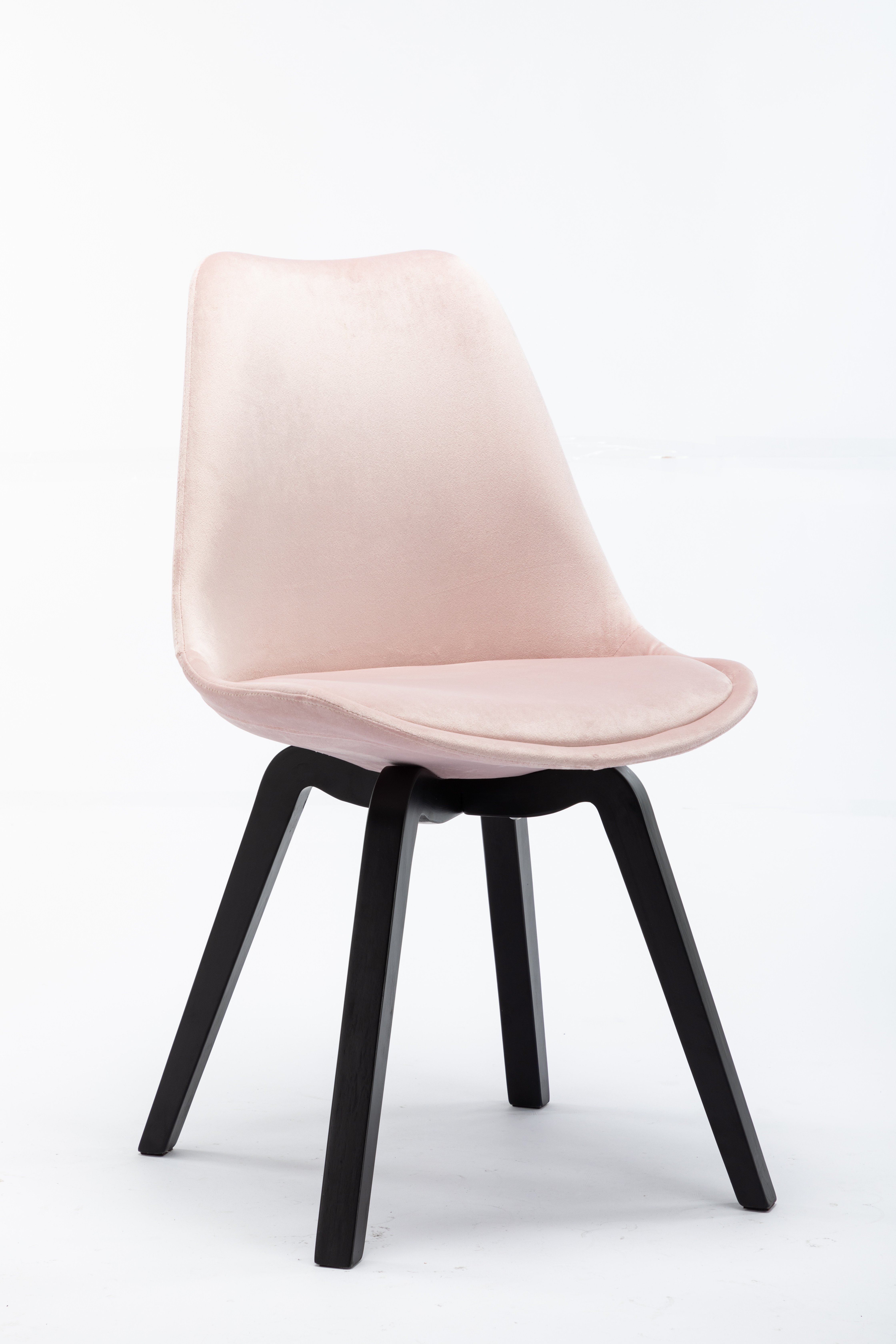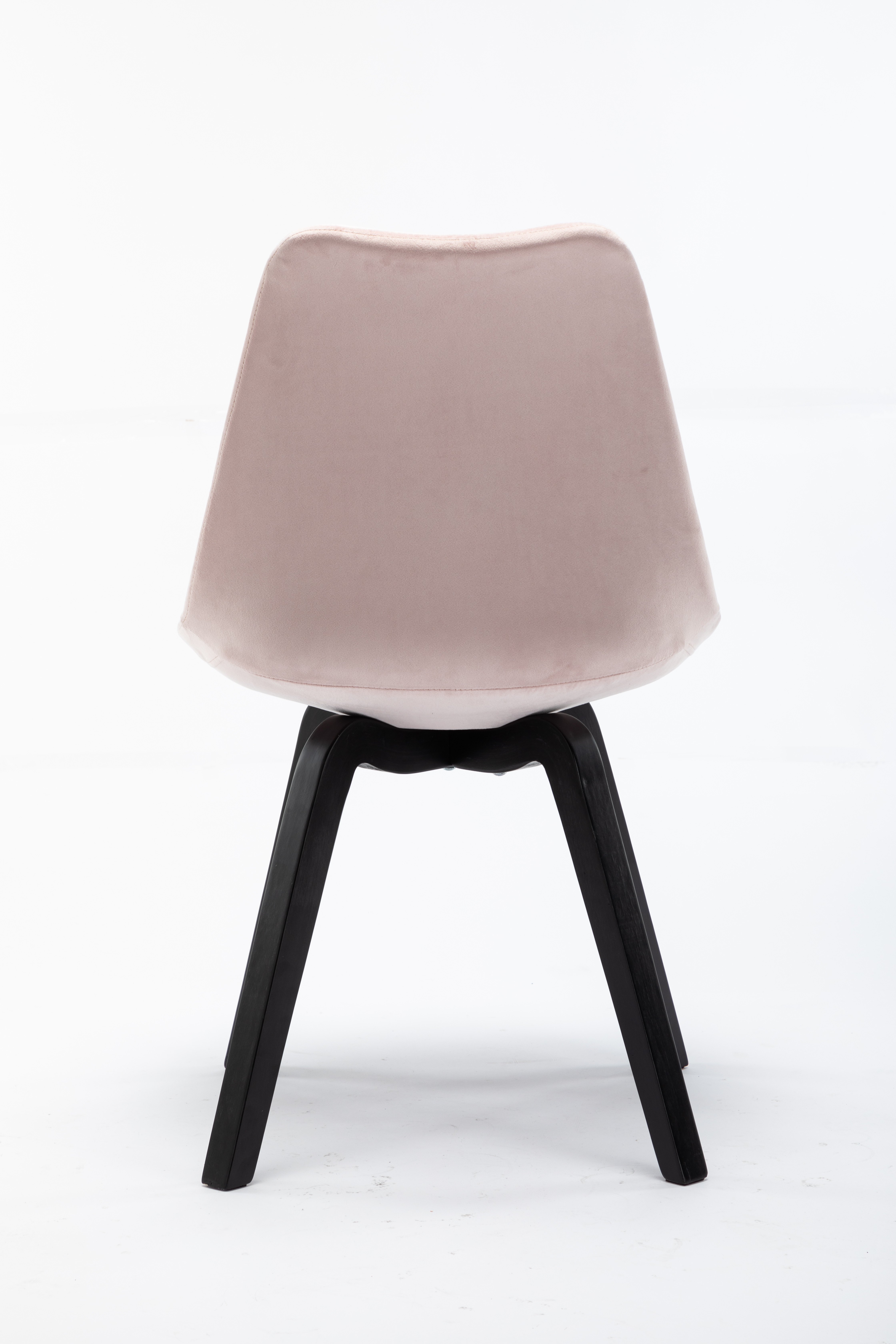 Dieser Polsterstuhl im 2er-Set im 60er Jahre Stil besticht durch sein modernes Design. Der Bezug besteht aus rosefarbenem Samt und das schwarz-gebeizte 4 Fuß-Gestell aus Hevea Holz. Die Sitzfläche und die Rückenlehne sind angenehm weich gepolstert. Dieser Retro Stuhl macht sowohl als Einzelstück im Wohnzimmer, als auch als raffinierter Stuhl am Esszimmertisch eine hervorragende Figur. Er kann aber auch in einem Wartebereich oder in Kanzleien genutzt werden. Der Samtstuhl ist frei im Raum stellbar und kann wunderbar in ein bestehendes Raumkonzept integriert werden, denn er wertet Ihren Wohnraum stilvoll auf.