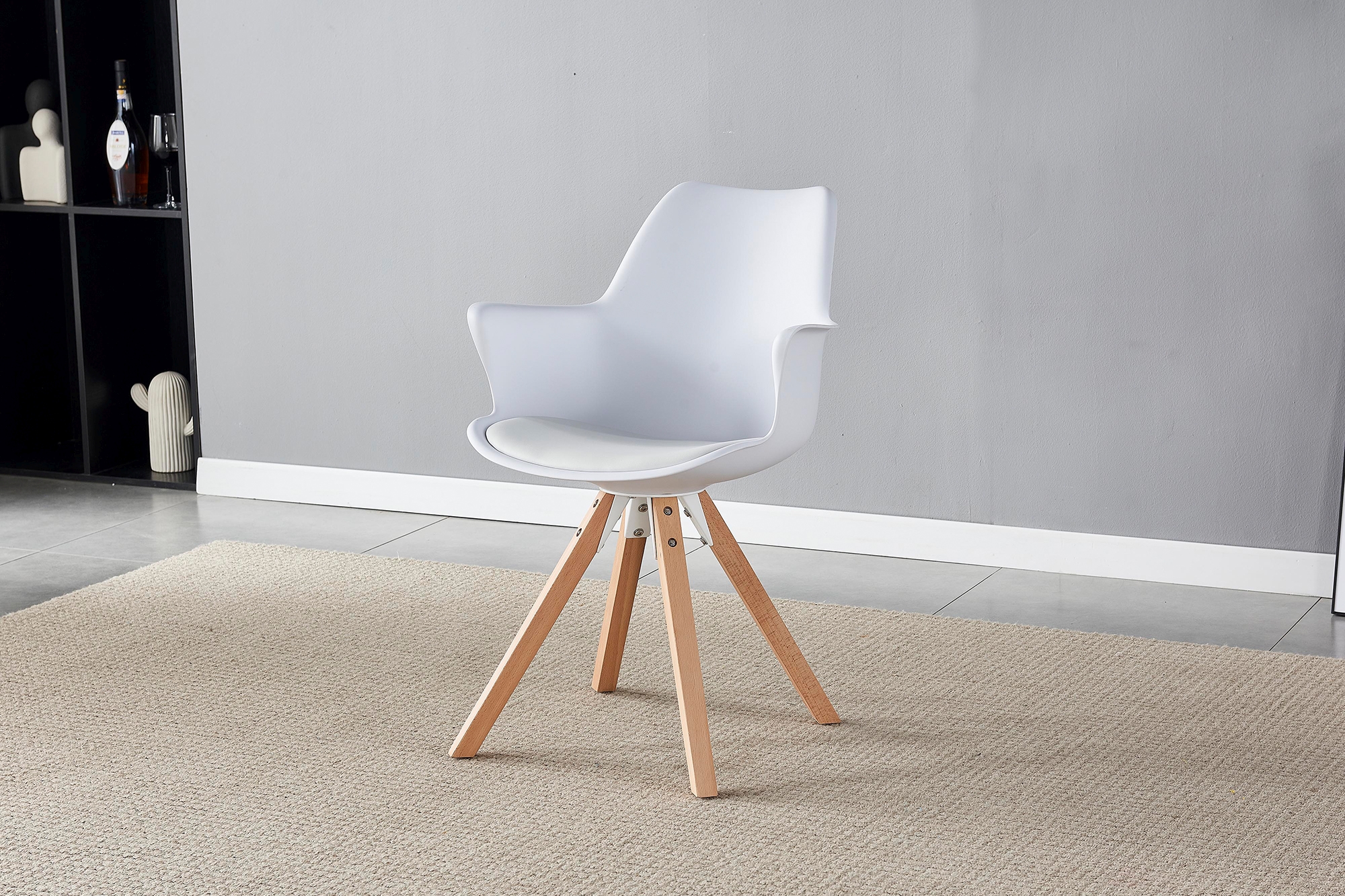 Der Armlehnstuhl aus Kunststoff sorgt für einen zeitgemäßen Look und ist leicht zu reinigen. Sie müssen sich keine Sorgen um Flecken oder Verschüttetes machen - einfach mit einem feuchten Tuch abwischen und schon erstrahlt er wieder im neuen Glanz. Die Armlehnen aus Kunststoff verleihen dem Stuhl einen eleganten Touch und bieten gleichzeitig zusätzlichen Komfort. Ob beim Essen, Arbeiten oder Entspannen, dieser Stuhl bietet Ihnen eine angenehme Sitzgelegenheit für jede Gelegenheit. Das 2er Set ermöglicht es Ihnen, Ihren Essbereich oder Wohnraum stilvoll und einheitlich einzurichten. Egal, ob Sie ein modernes oder klassisches Interieur haben, diese Armlehnstühle passen sich nahtlos an und bringen einen Hauch von Eleganz in jeden Raum. Das Stuhl-Set zeichnet sich durch hochwertige Materialien und sorgfältige Verarbeitung aus. Sie können sich auf die Qualität und Langlebigkeit dieser Armlehnstühle verlassen, die Ihnen über Jahre hinweg Freude bereiten werden.