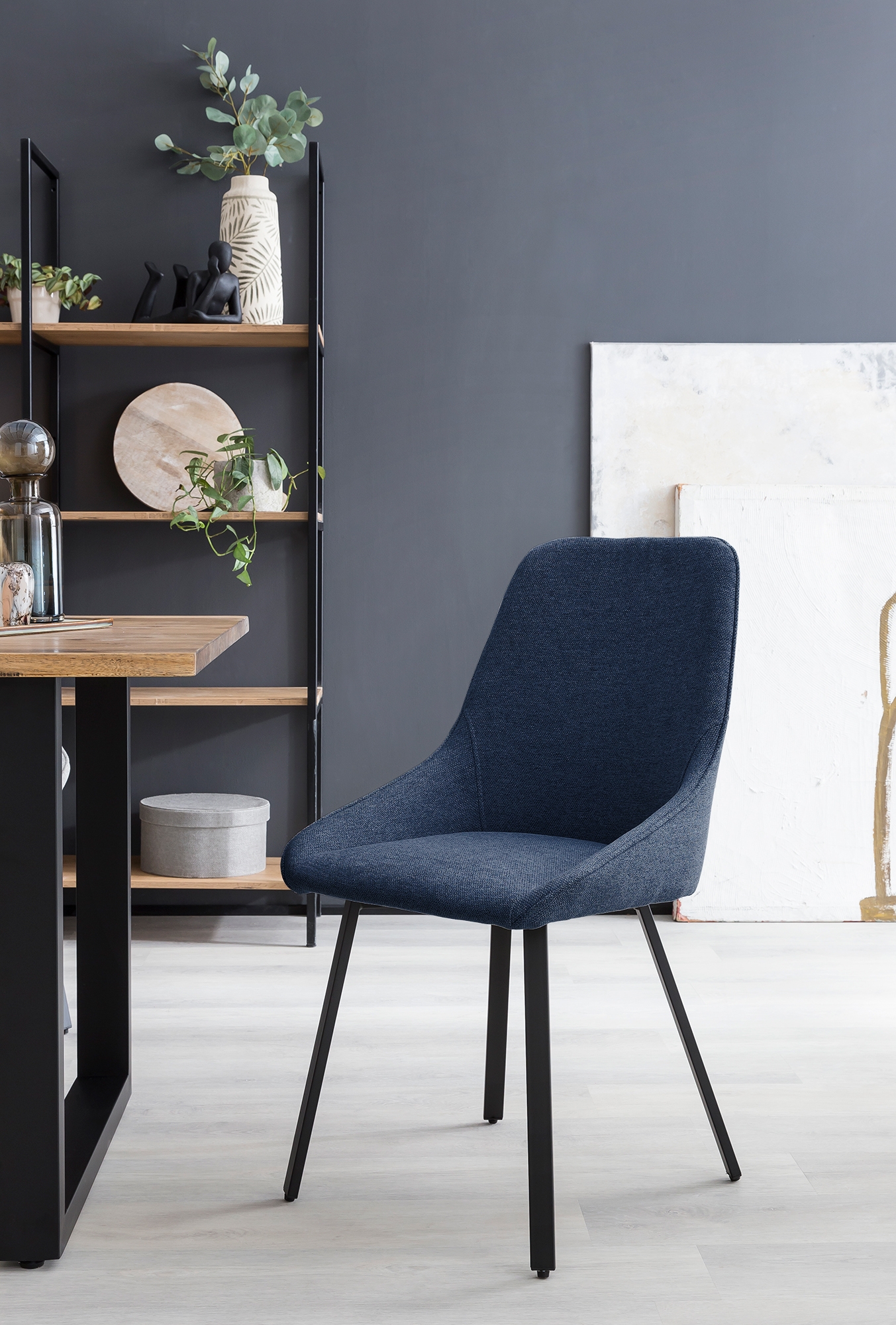 Skandinavisch schlichtes Design, modern interpretiert – Mit diesem Esszimmerstuhl machen Sie garantiert nichts falsch. Das gradlinige Design in Kombination mit dem warmen Strukturstoff in Baumwolloptik machen die Optik des Stuhls zu etwas besonderem. Das abgeschrägte Metallgestell mit klar definierten Linien lassen die weichen Formen der angedeuteten Armlehnen besonders gut zur Geltung kommen. Die Lieferung im praktischen 2er Set ist ideal für das Kombinieren von verschiedenen Farben für einen spannenden Look im Esszimmer. Die hohe Rückenlehne und die abgeschrägten Armlehnen sorgen für optimalen Sitzkomfort, sodass gesellige Runden am Esstisch nicht nur für Spaß, sondern auch für das richtige Level an Gemütlichkeit sorgen.