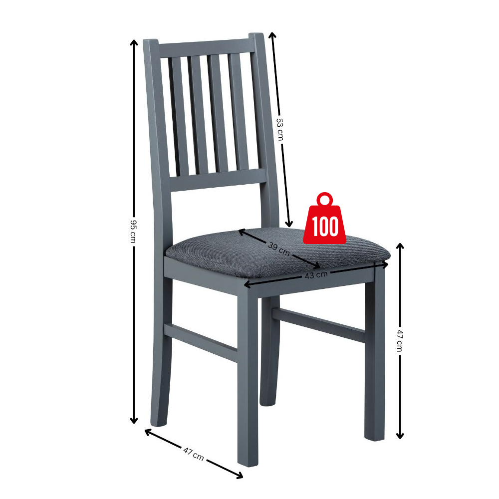 Die bequeme Sitzfläche ist mit hochwertigem Stoff gepolstert, was für zusätzlichen Komfort sorgt, sodass Sie lange und angenehme Mahlzeiten genießen können.