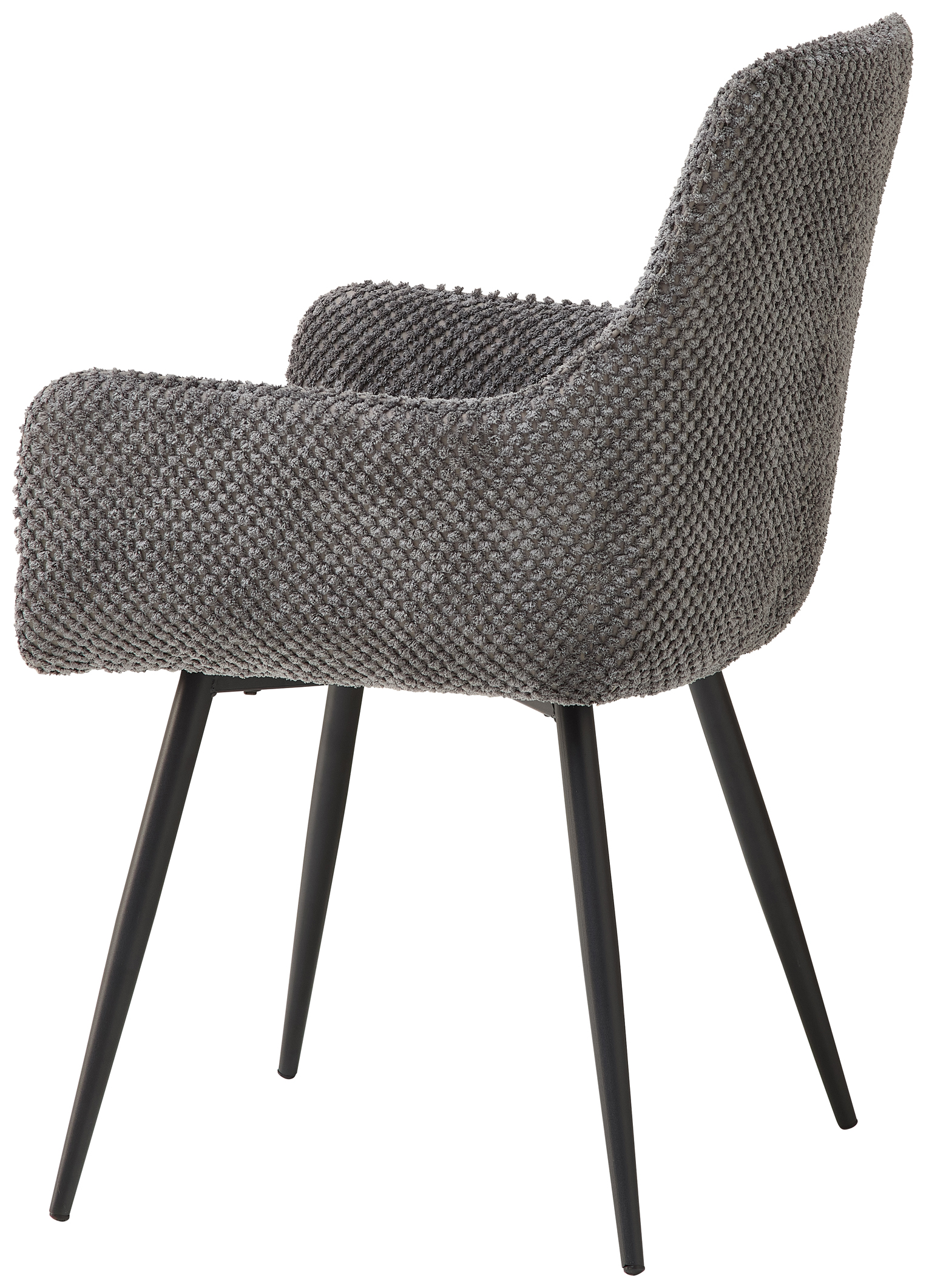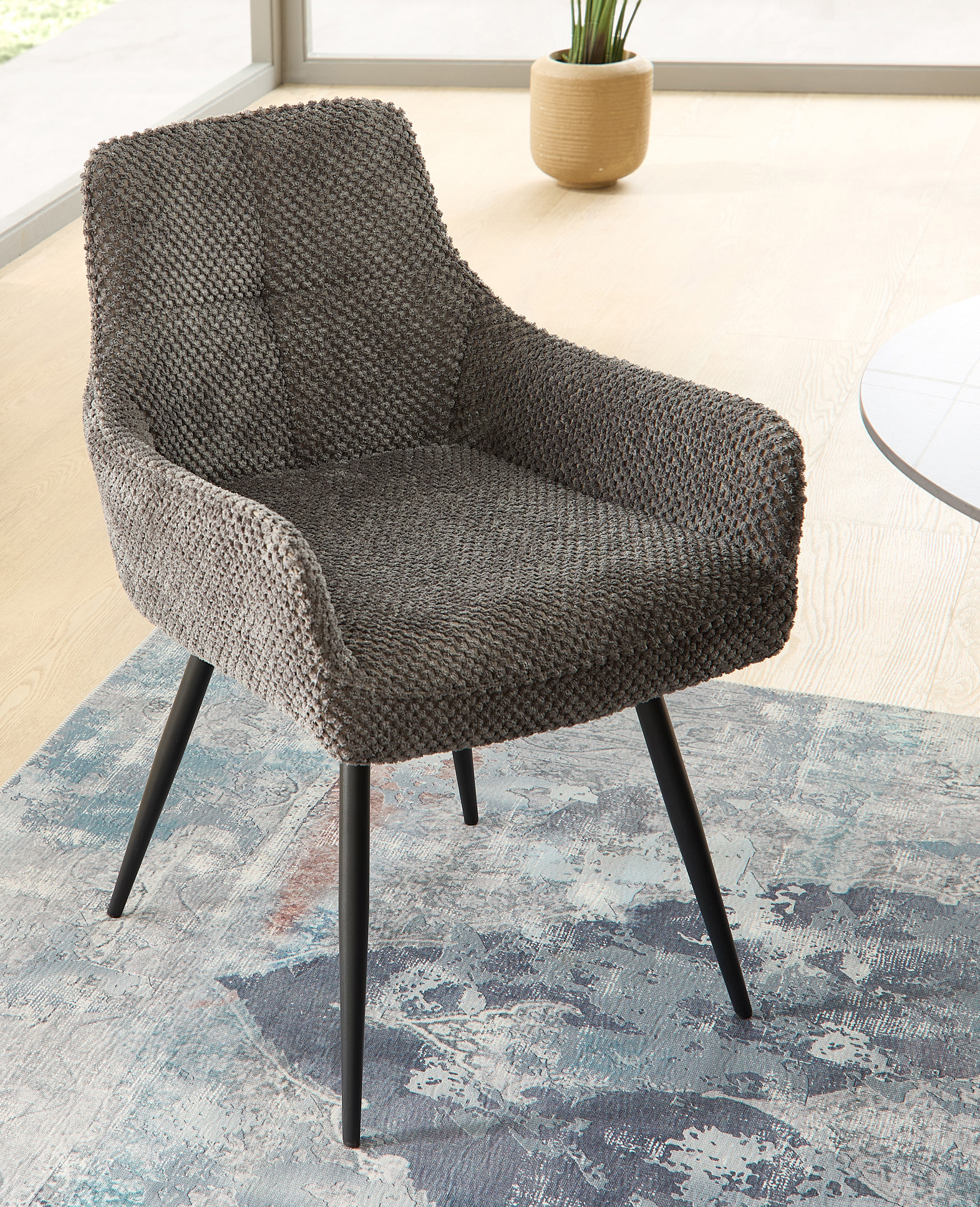 Die ergonomisch ausgelegte Polsterung sorgt für langanhaltenden Sitzkomfort, auch bei längeren Mahlzeiten oder Gesprächen. Das stabile Metallgestell mit vier Beinen garantiert sicheren Stand und hohe Langlebigkeit, während der pflegeleichte Faserflorbezug eine angenehme Haptik bietet. Durch die moderne Linienführung passt der Stuhl vielseitig zu unterschiedlichen Einrichtungsstilen und wertet jeden Raum optisch auf.