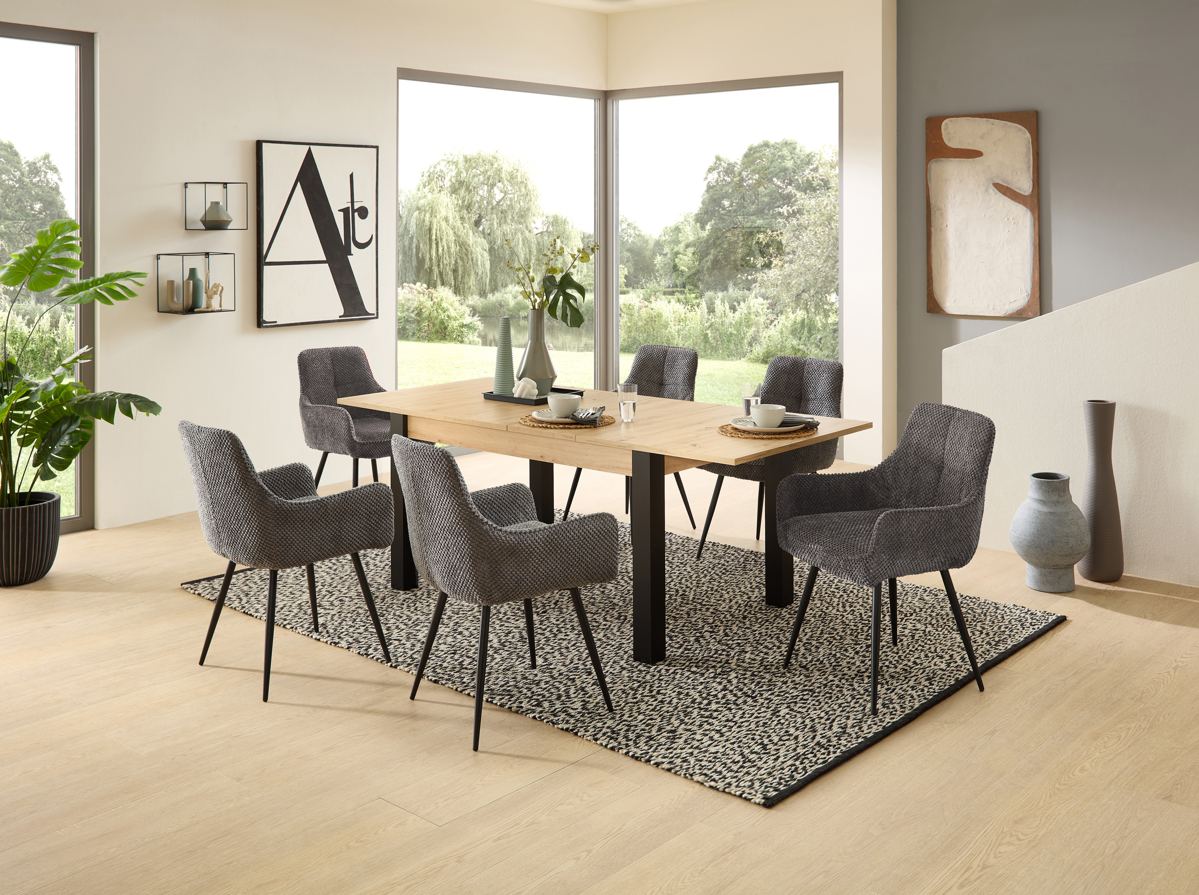 Die kompakte Größe macht ihn flexibel einsetzbar, vom Esstisch bis zur zusätzlichen Sitzgelegenheit im Wohnbereich.