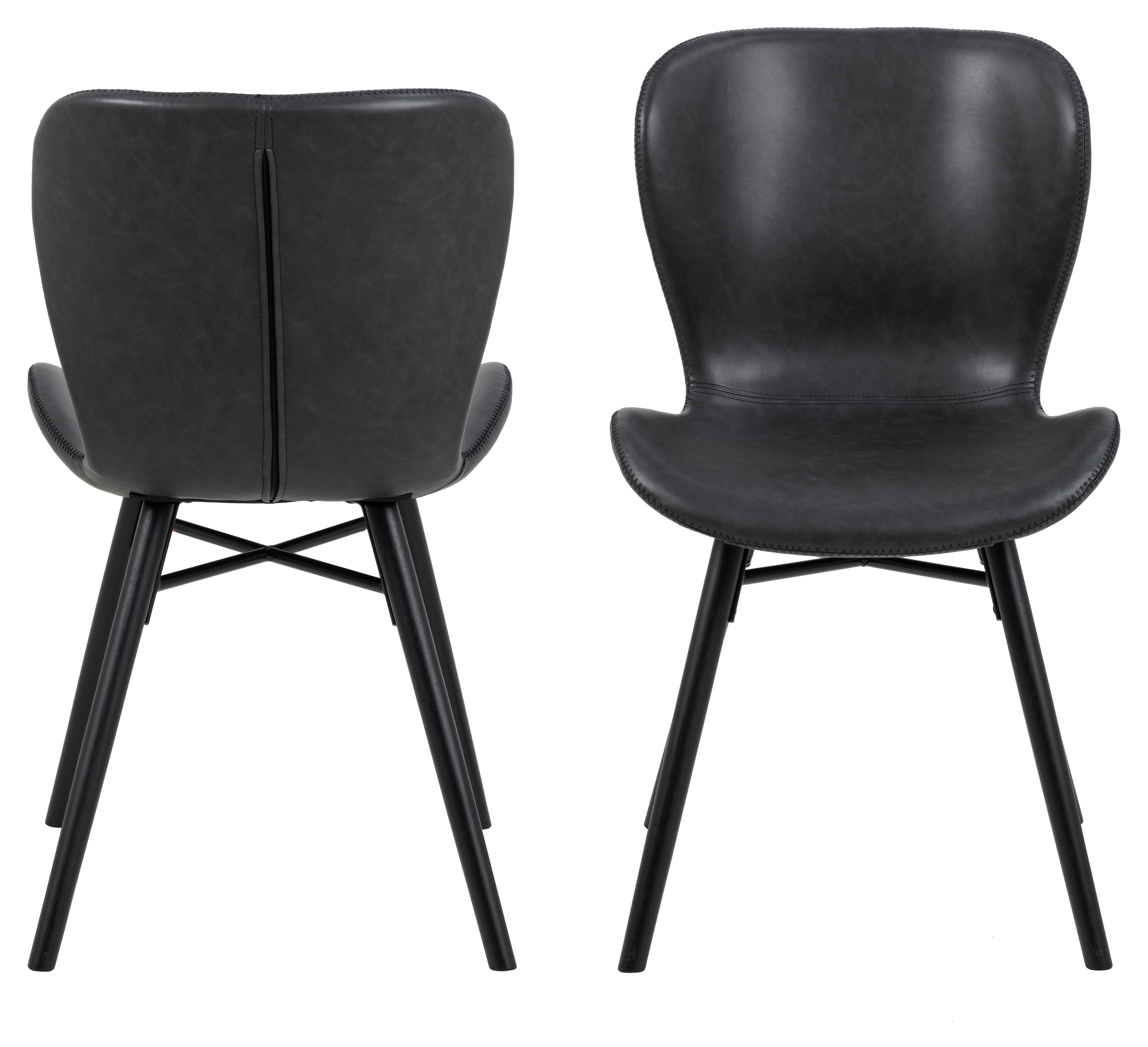 Gestelle: Metallkreuz schwarz lackiert; Beine in Rubberwood massiv (Asien), schwarz lackiert