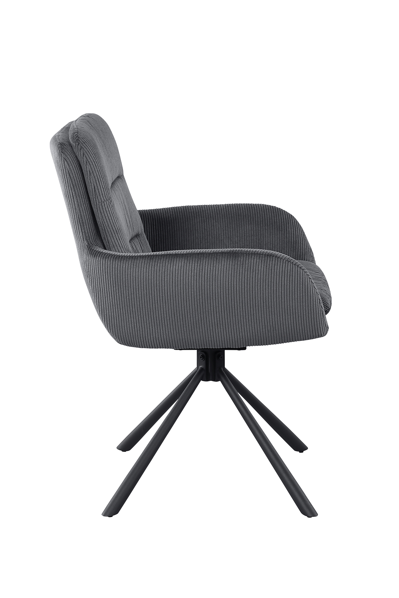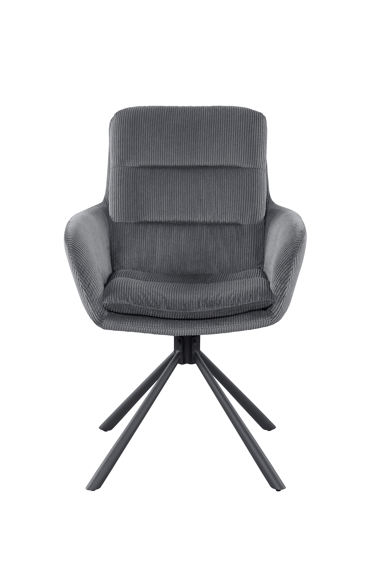 Dieser moderne Armlehnstuhl überzeugt mit seinem hochwertigen Stoffbezug in Cord-Optik. Das stabile Baseball-Gestell aus pulverbeschichtetem Metall mit 360° Drehfunktion bietet einen sicheren Stand und einen großartigen Kontrast zum Bezug des Stuhles. Durch die weich gepolsterte Sitz- und Rückenfläche entsteht ein Sitzkomfort der Extraklasse. Ein optisches Highlight sind die Quersteppungen am Bezug. Durch das stylische Design kann der Stuhl im Essbereich, als Sitzgelegenheit im Wartebereich oder in einem Konferenzraum eingesetzt werden. Aber auch als Einzelstuhl wird dieses Möbel zum echten Hingucker. Sie und Ihre Gäste werden Ihre neue Sitzgelegenheit lieben.