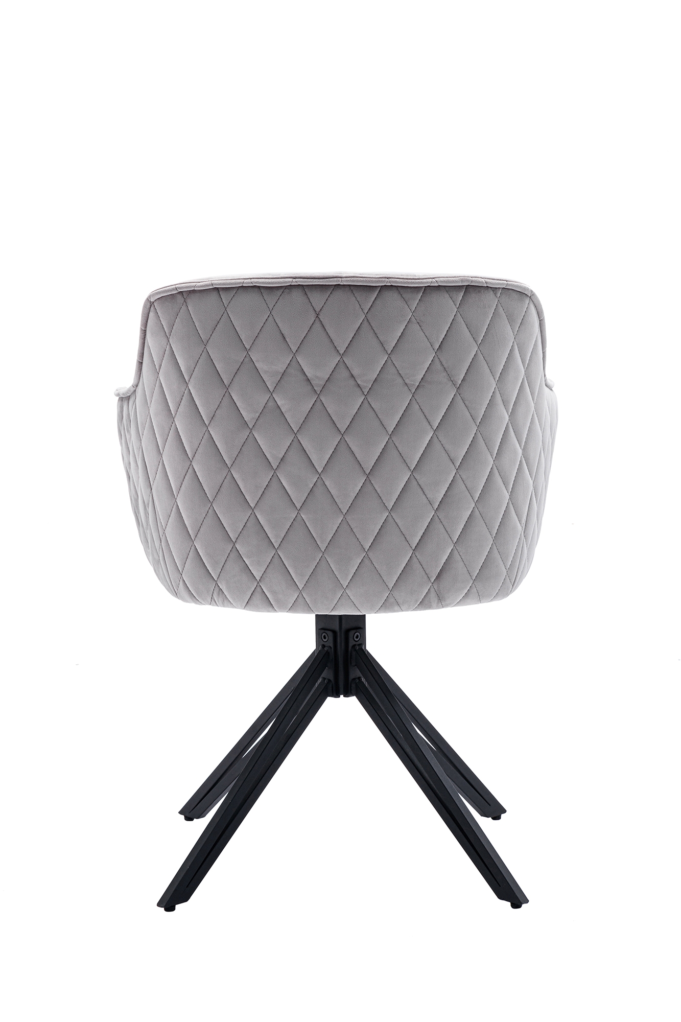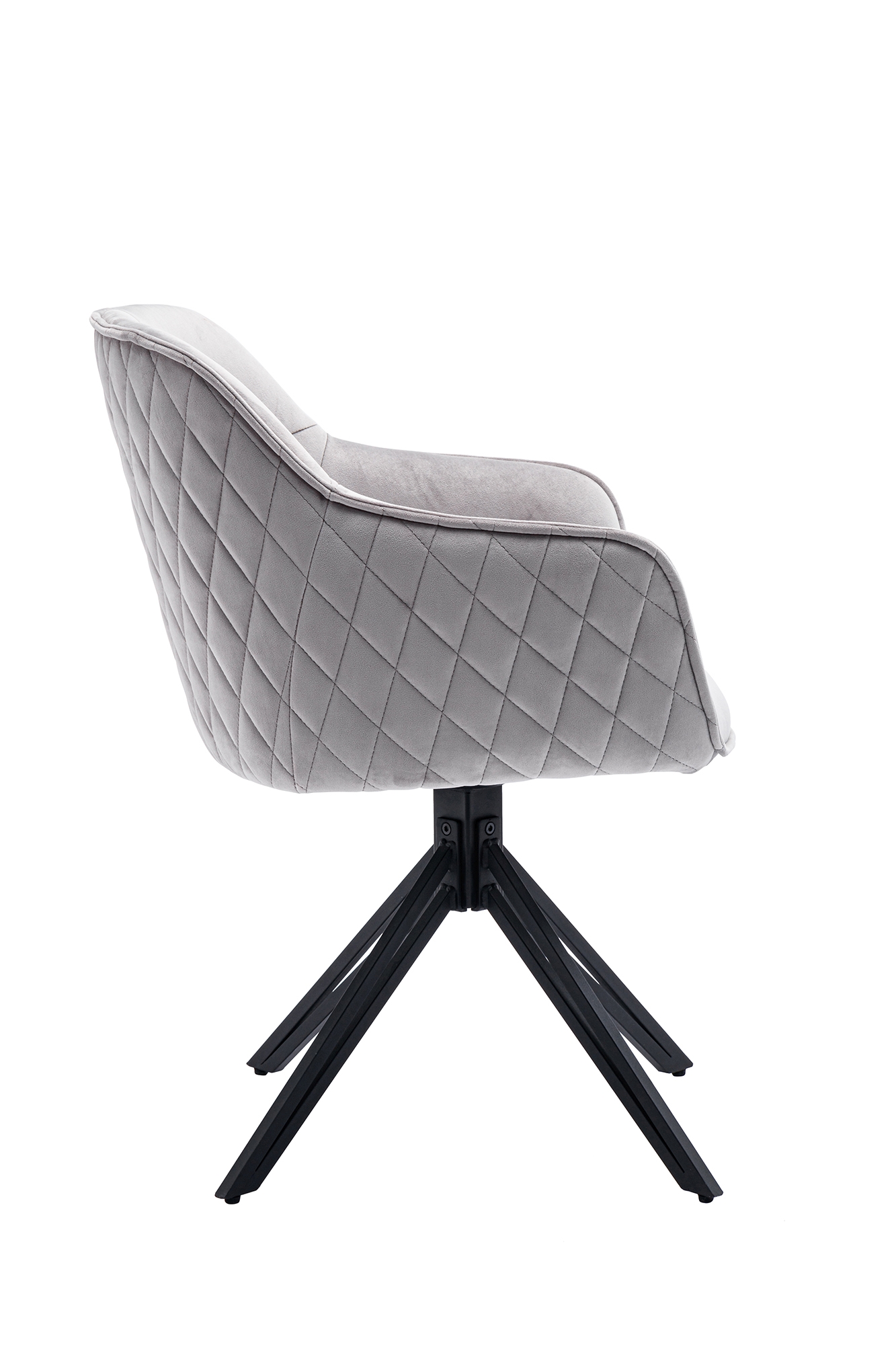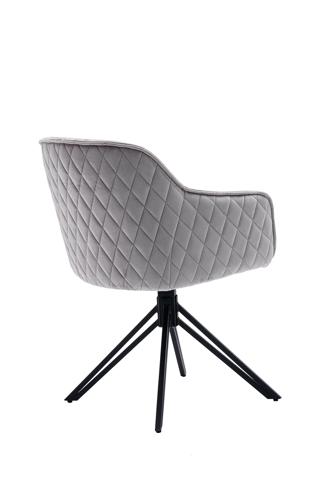 Der stylische Armlehnstuhl mit 360°-Drehfunktion bereichert mit besonders flexiblem Sitzkomfort Ihr Zuhause. Die Sitzschale lässt sich um 360° drehen und kehrt immer wieder in ihre Ursprungsposition zurück. Der besondere Retro-Look des bequemen Stuhls macht das Sitzmöbel zum absoluten Hingucker. Das außergewöhnliche Design-Gestell aus schwarzem Metall und die hochwertig Wabensteppung im Rücken sind dabei nur zwei der hochwertigen Details des Polsters. Die schwarzen Metallbeine bilden einen interessanten Kontrast zu dem edlen Samt-Bezug der Sitzschale und sorgen für einen sicheren Stand. Ein Rundum besonderer Stuhl für Ihr Zuhause!