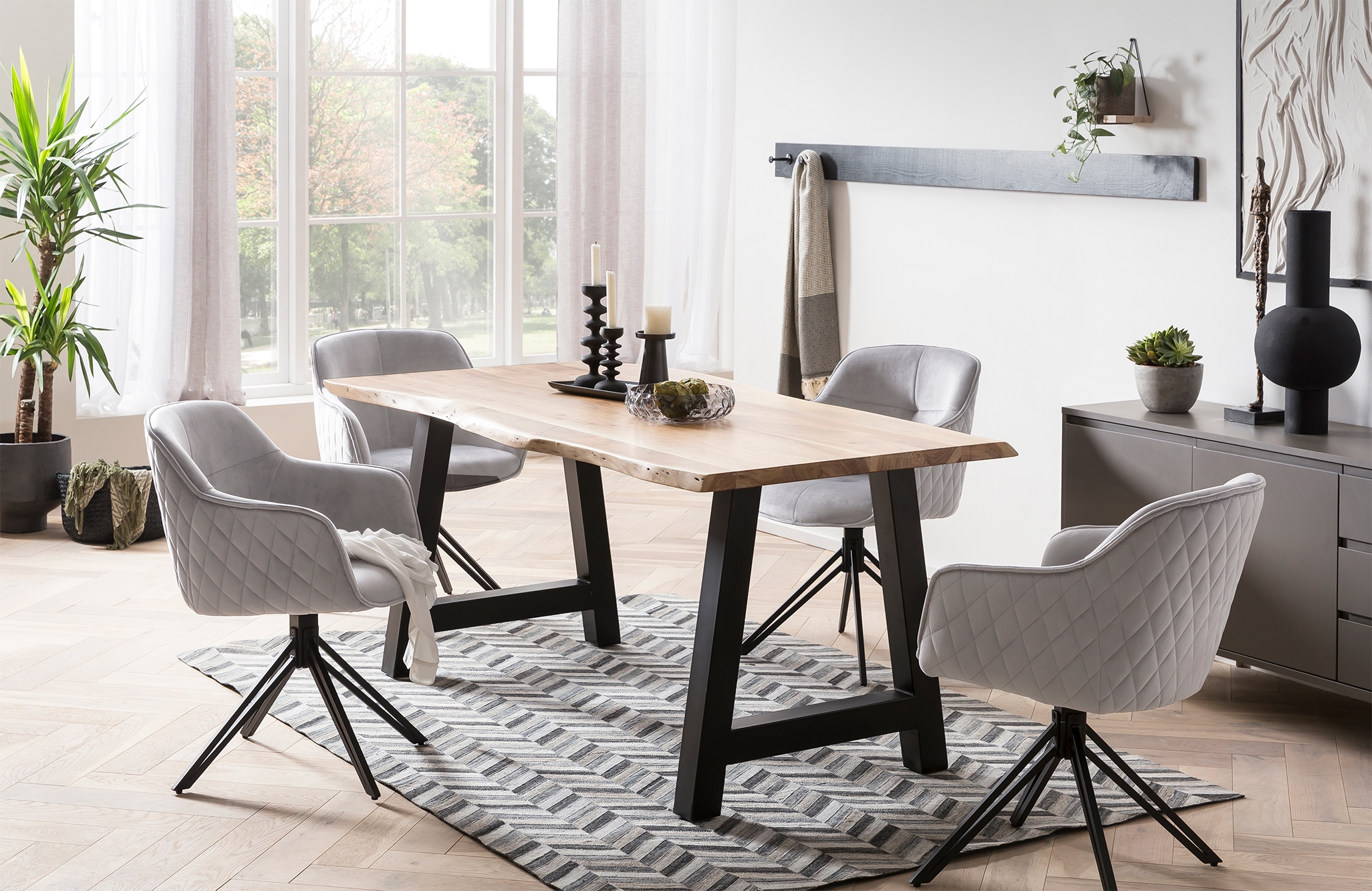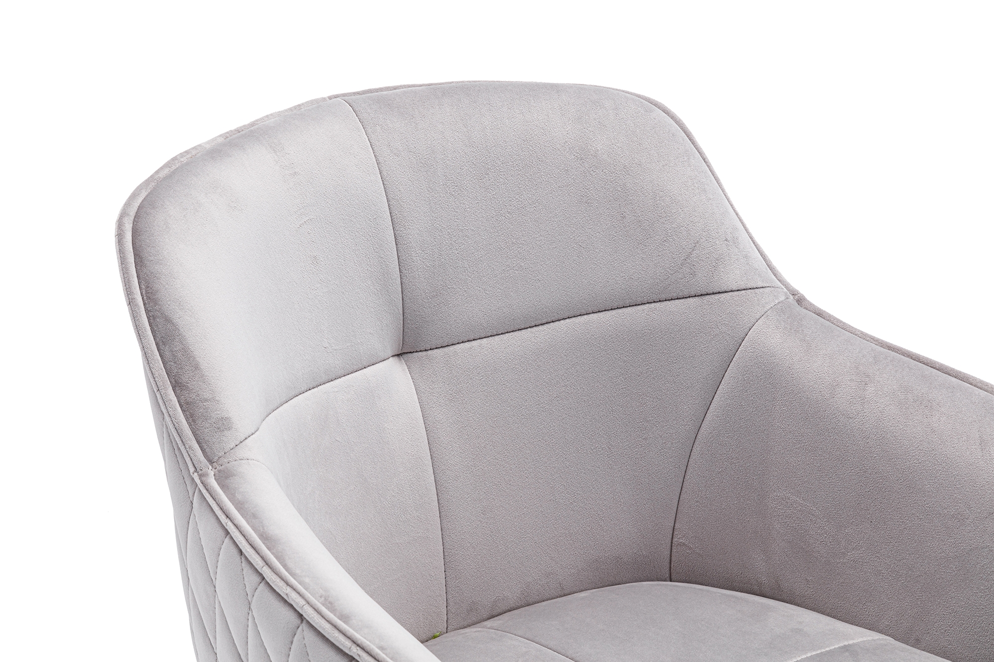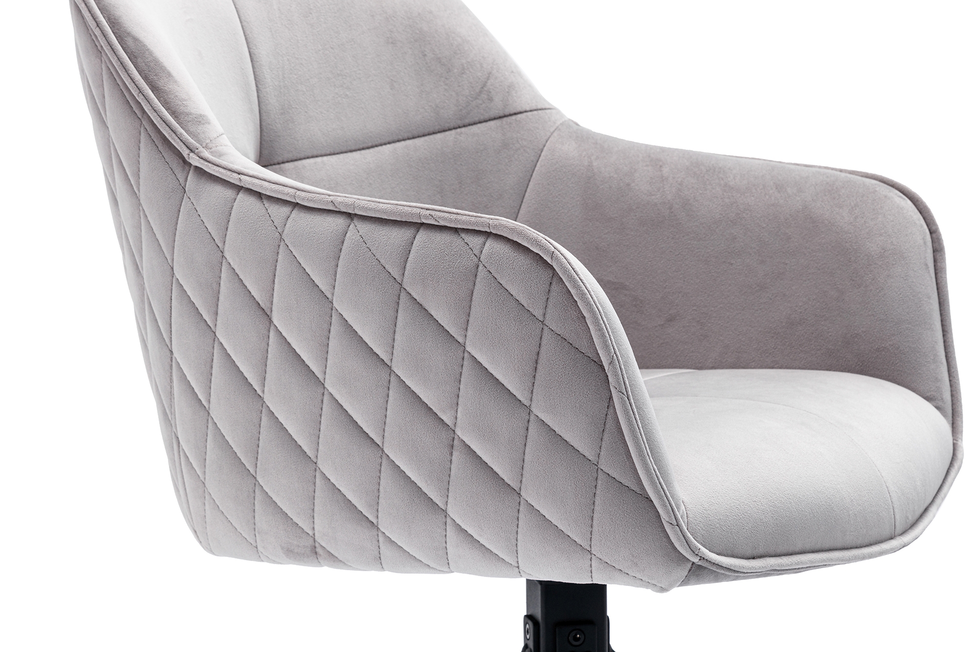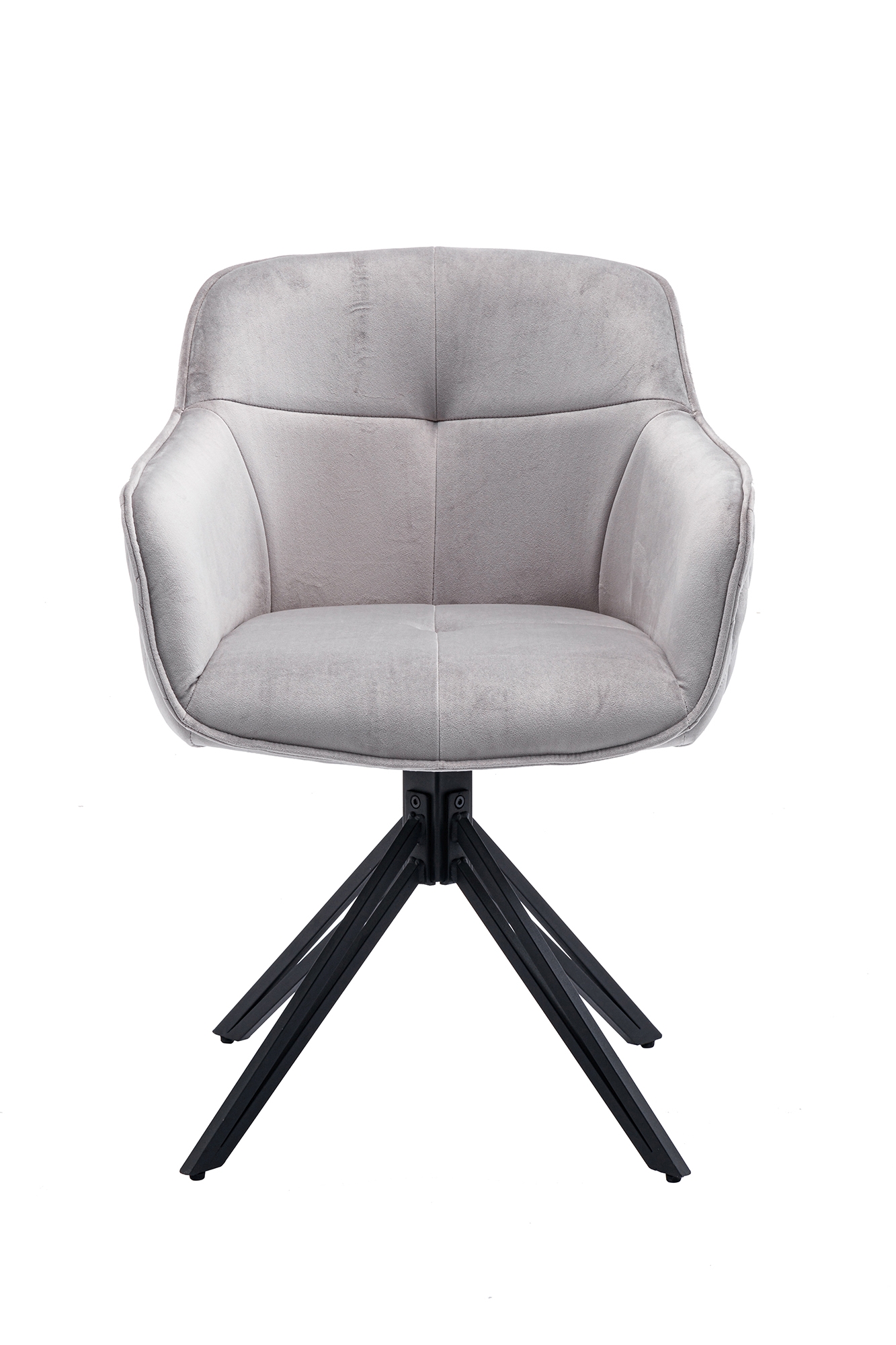 Der stylische Armlehnstuhl mit 360°-Drehfunktion bereichert mit besonders flexiblem Sitzkomfort Ihr Zuhause. Die Sitzschale lässt sich um 360° drehen und kehrt immer wieder in ihre Ursprungsposition zurück. Der besondere Retro-Look des bequemen Stuhls macht das Sitzmöbel zum absoluten Hingucker. Das außergewöhnliche Design-Gestell aus schwarzem Metall und die hochwertig Wabensteppung im Rücken sind dabei nur zwei der hochwertigen Details des Polsters. Die schwarzen Metallbeine bilden einen interessanten Kontrast zu dem edlen Samt-Bezug der Sitzschale und sorgen für einen sicheren Stand. Ein Rundum besonderer Stuhl für Ihr Zuhause!