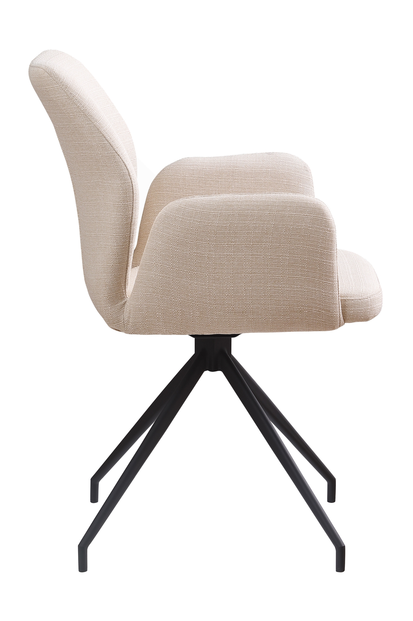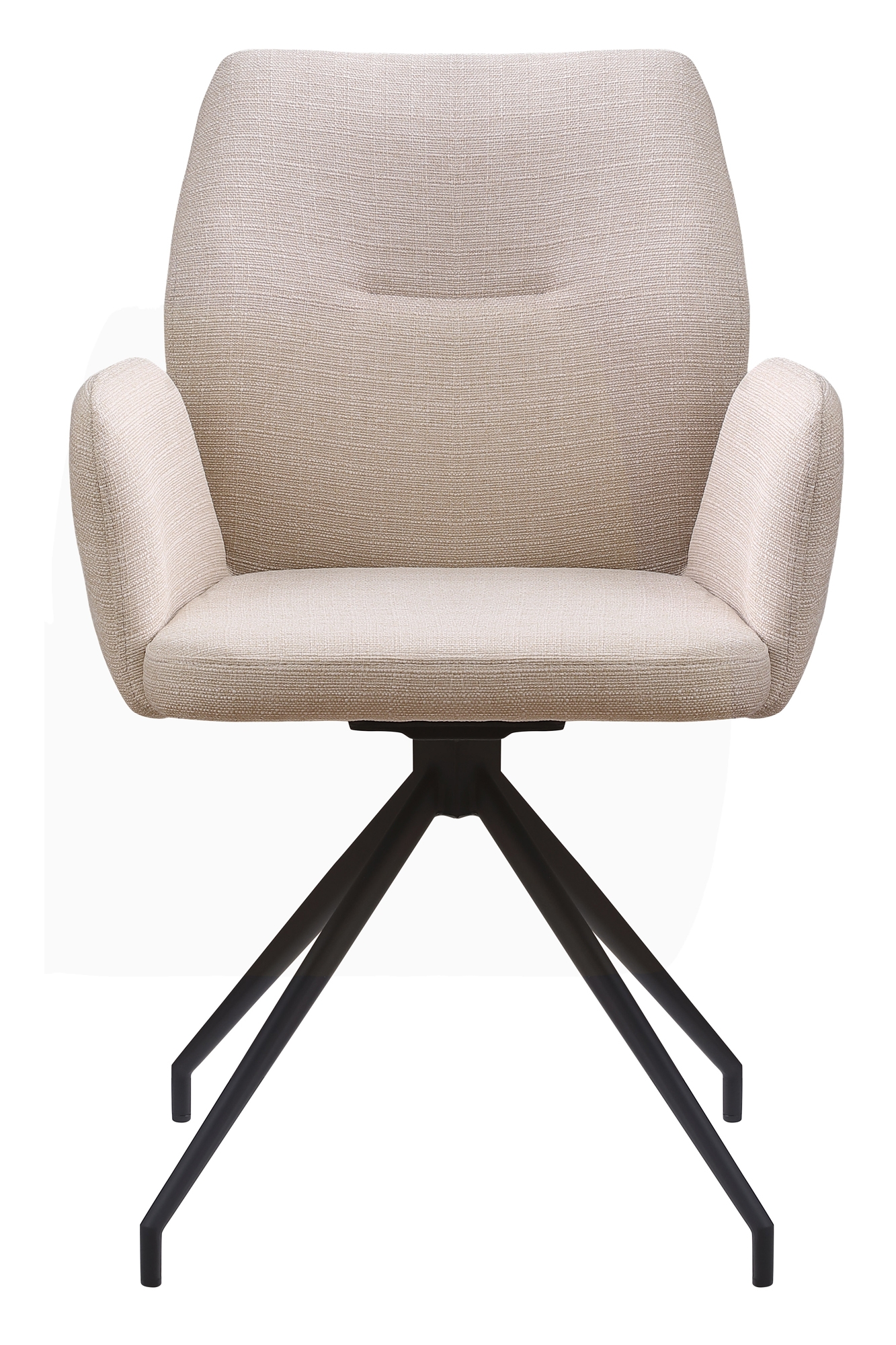 Besticht durch seine moderne Optik und die hohe Verarbeitungsqualität: Im modernen Design fügt sich der Armlehnstuhl mit 180° Drehfunktion in Ihr Zuhause ein. Dabei kann dieser vielseitig als Esszimmerstuhl, für den Schminktisch oder das Homeoffice eingesetzt werden. Der Polsterstuhl besticht durch seine trendige Formensprache mit ergonomisch geformter Rückenlehne mit Ziernaht, gerader Sitzfläche und leicht ausgestellten Armlehnen. Alle Bereiche weisen eine angenehme Polsterung für einen hohen Sitzkomfort auf. Bezogen ist das Sitzmöbel mit einem edlen Strukturstoff, der über strapazierfähige Eigenschaften verfügt und in vielen attraktiven Unifarben zur Auswahl steht. Ein weiteres Highlight stellt das filigran wirkende Design-Gestell aus pulverbeschichtetem Metall dar. Durch den integrierten Drehmechanismus ermöglicht der Sessel ein dynamisches Sitzen.