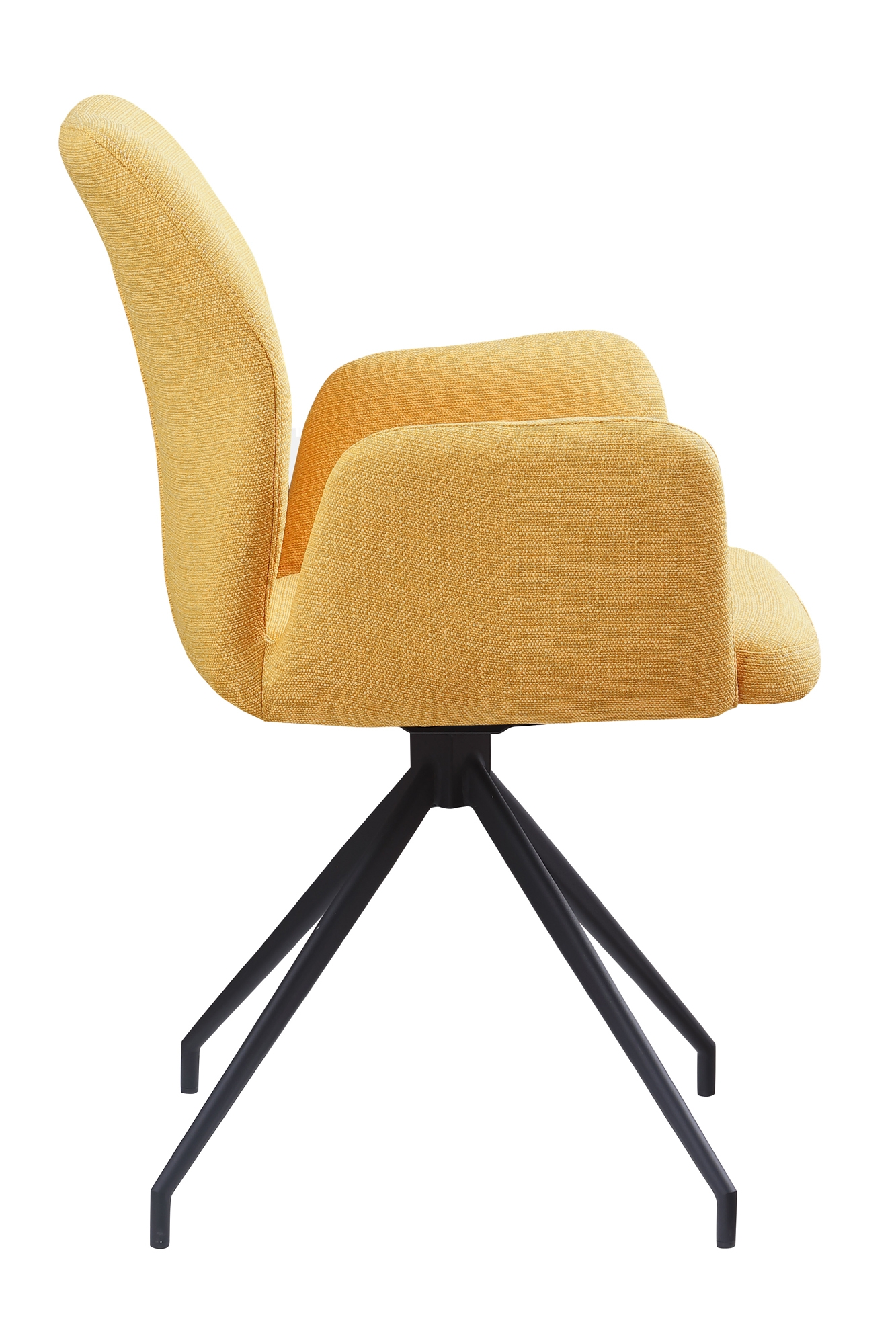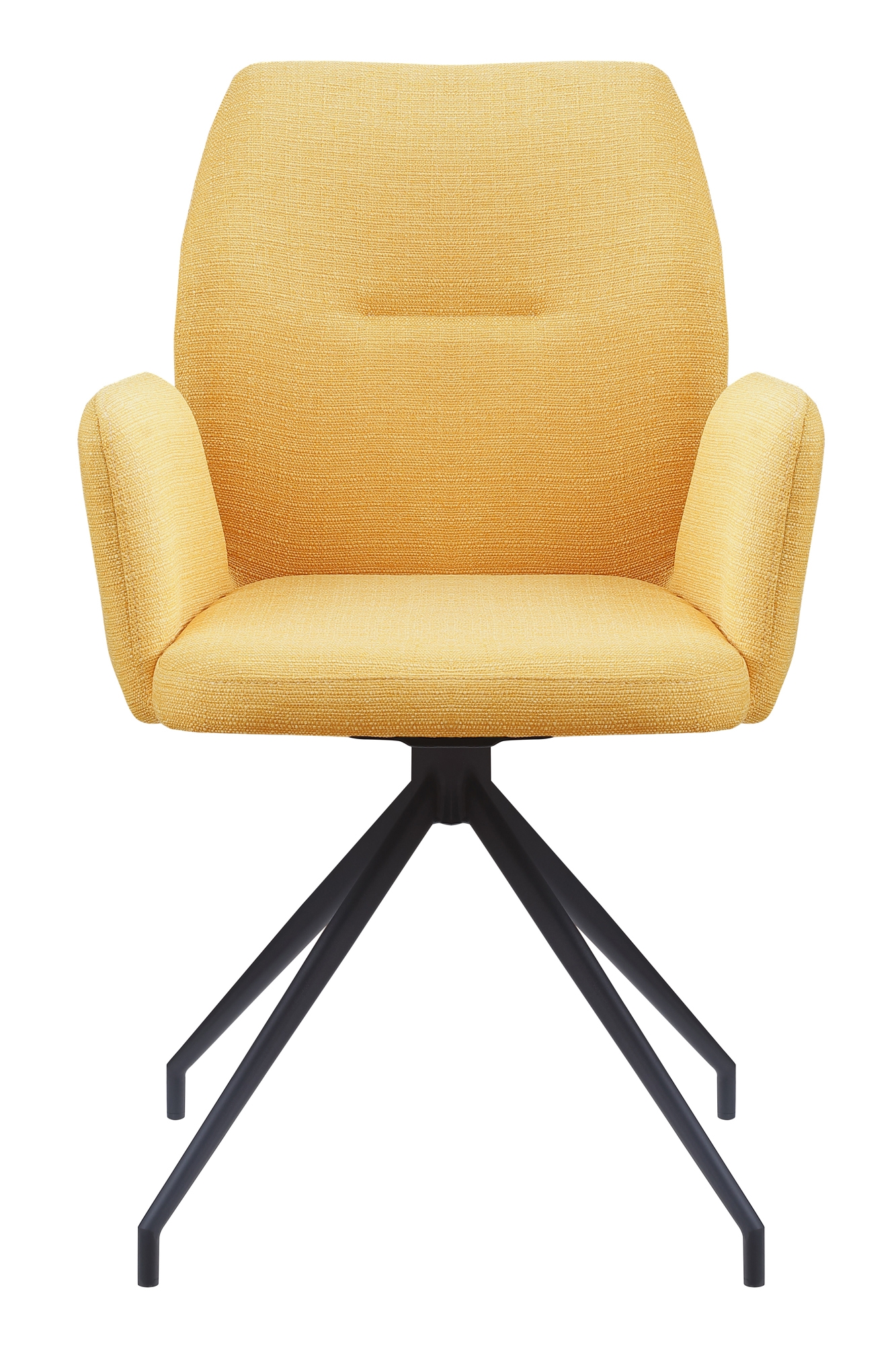 Besticht durch seine moderne Optik und die hohe Verarbeitungsqualität: Im modernen Design fügt sich der Armlehnstuhl mit 180° Drehfunktion in Ihr Zuhause ein. Dabei kann dieser vielseitig als Esszimmerstuhl, für den Schminktisch oder das Homeoffice eingesetzt werden. Der Polsterstuhl besticht durch seine trendige Formensprache mit ergonomisch geformter Rückenlehne mit Ziernaht, gerader Sitzfläche und leicht ausgestellten Armlehnen. Alle Bereiche weisen eine angenehme Polsterung für einen hohen Sitzkomfort auf. Bezogen ist das Sitzmöbel mit einem edlen Strukturstoff, der über strapazierfähige Eigenschaften verfügt und in vielen attraktiven Unifarben zur Auswahl steht. Ein weiteres Highlight stellt das filigran wirkende Design-Gestell aus pulverbeschichtetem Metall dar. Durch den integrierten Drehmechanismus ermöglicht der Sessel ein dynamisches Sitzen.