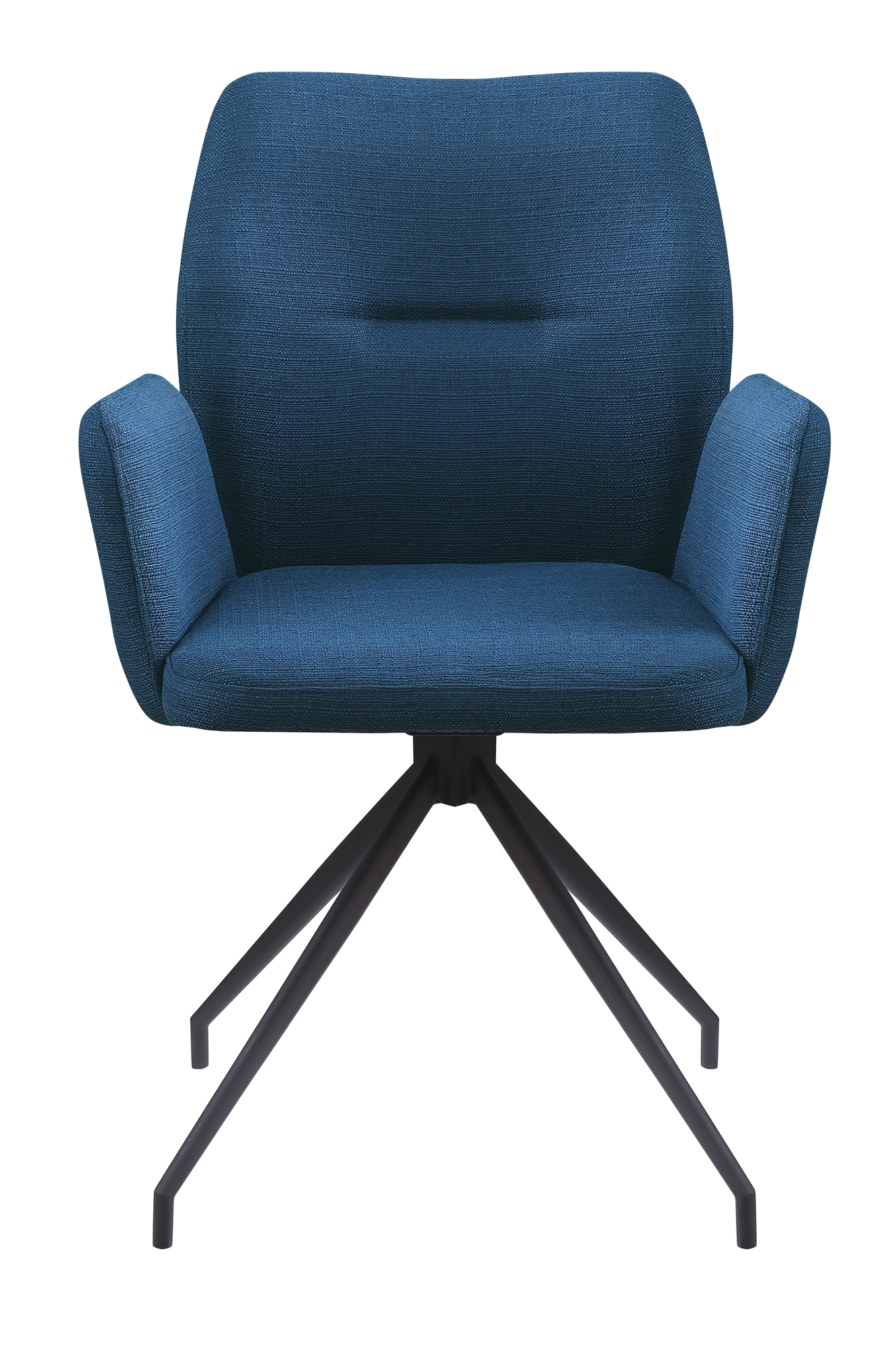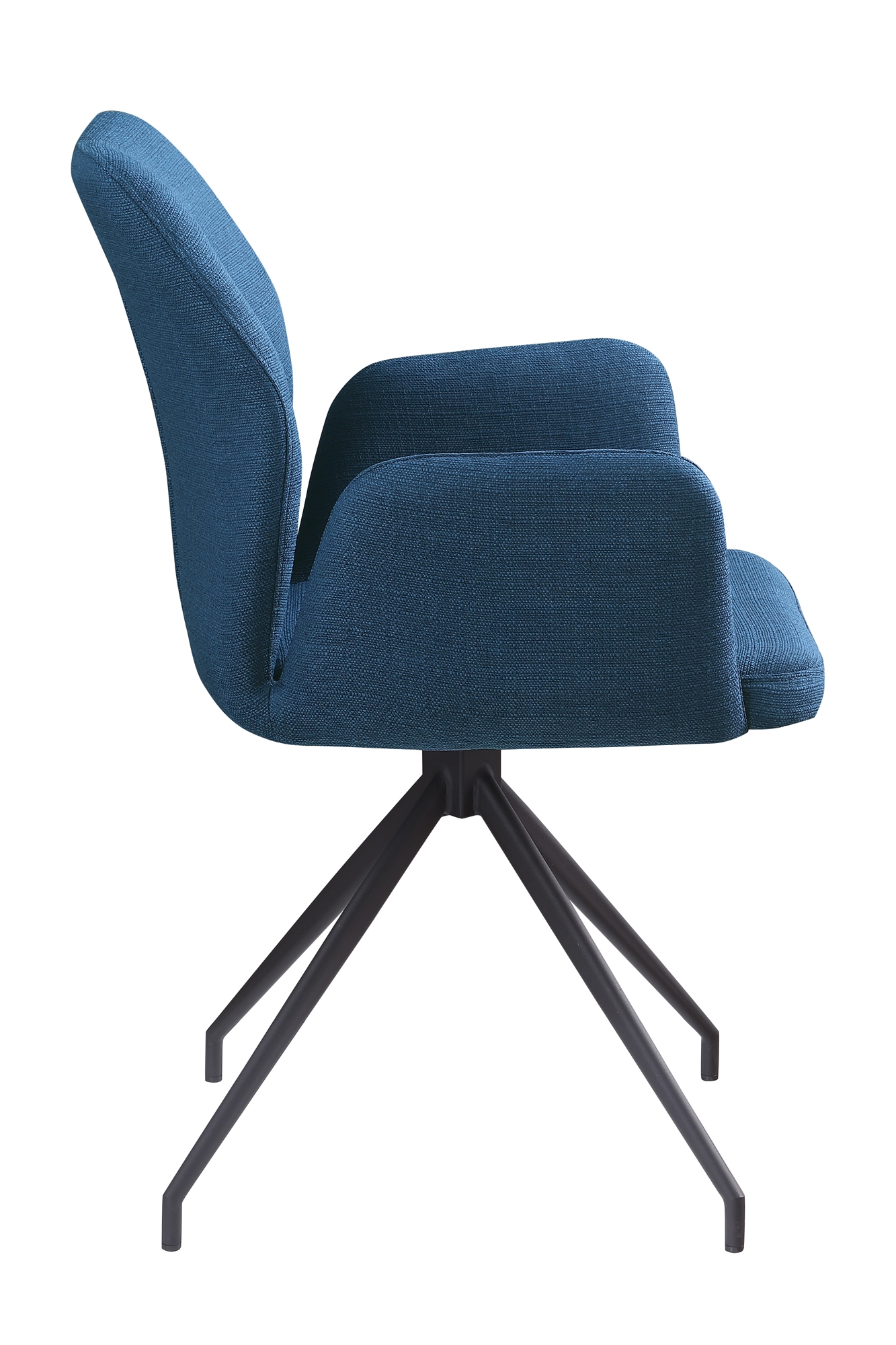 Besticht durch seine moderne Optik und die hohe Verarbeitungsqualität: Im modernen Design fügt sich der Armlehnstuhl mit 180° Drehfunktion in Ihr Zuhause ein. Dabei kann dieser vielseitig als Esszimmerstuhl, für den Schminktisch oder das Homeoffice eingesetzt werden. Der Polsterstuhl besticht durch seine trendige Formensprache mit ergonomisch geformter Rückenlehne mit Ziernaht, gerader Sitzfläche und leicht ausgestellten Armlehnen. Alle Bereiche weisen eine angenehme Polsterung für einen hohen Sitzkomfort auf. Bezogen ist das Sitzmöbel mit einem edlen Strukturstoff, der über strapazierfähige Eigenschaften verfügt und in vielen attraktiven Unifarben zur Auswahl steht. Ein weiteres Highlight stellt das filigran wirkende Design-Gestell aus pulverbeschichtetem Metall dar. Durch den integrierten Drehmechanismus ermöglicht der Sessel ein dynamisches Sitzen.