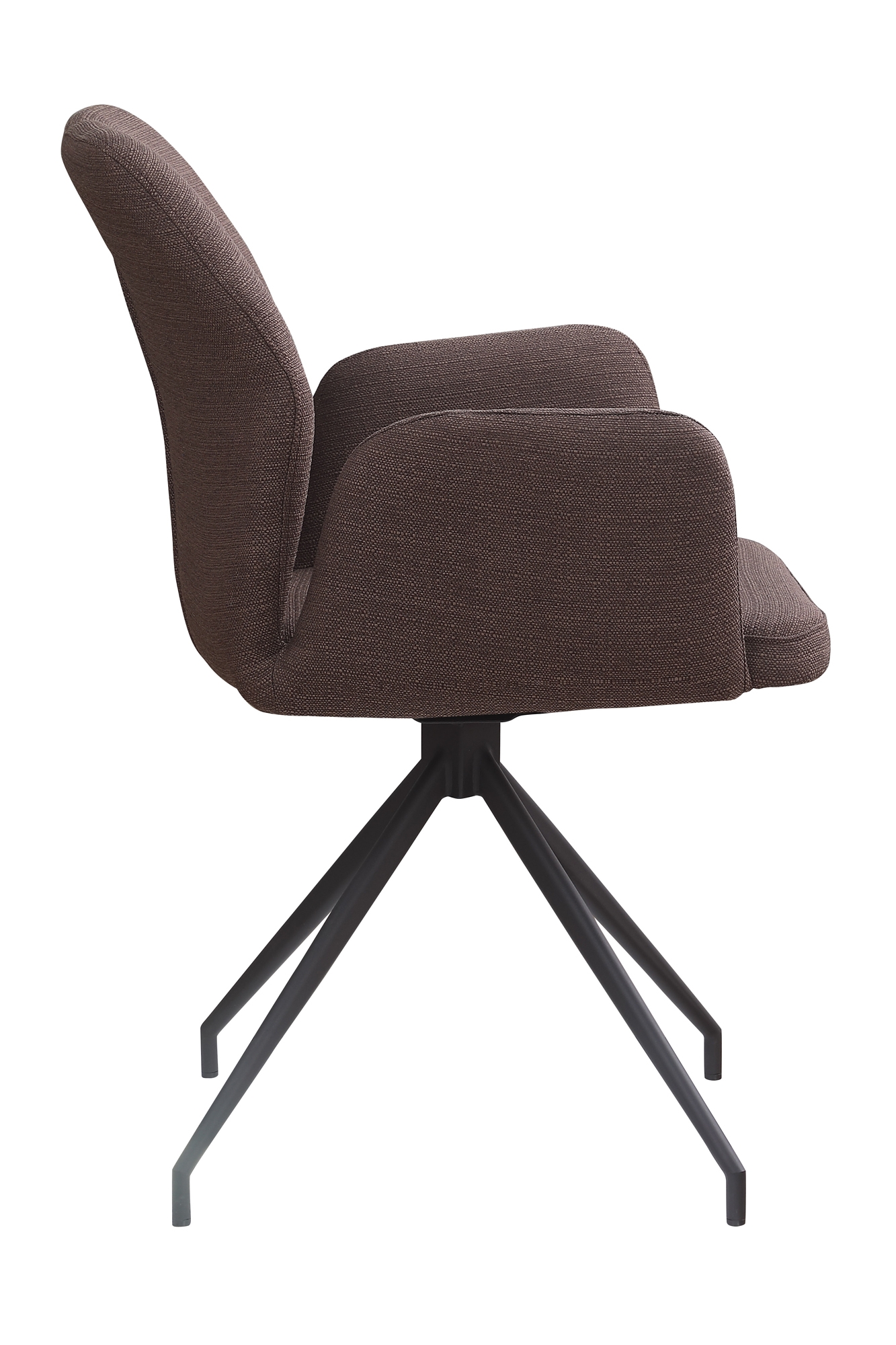 Besticht durch seine moderne Optik und die hohe Verarbeitungsqualität: Im modernen Design fügt sich der Armlehnstuhl mit 180° Drehfunktion in Ihr Zuhause ein. Dabei kann dieser vielseitig als Esszimmerstuhl, für den Schminktisch oder das Homeoffice eingesetzt werden. Der Polsterstuhl besticht durch seine trendige Formensprache mit ergonomisch geformter Rückenlehne mit Ziernaht, gerader Sitzfläche und leicht ausgestellten Armlehnen. Alle Bereiche weisen eine angenehme Polsterung für einen hohen Sitzkomfort auf. Bezogen ist das Sitzmöbel mit einem edlen Strukturstoff, der über strapazierfähige Eigenschaften verfügt und in vielen attraktiven Unifarben zur Auswahl steht. Ein weiteres Highlight stellt das filigran wirkende Design-Gestell aus pulverbeschichtetem Metall dar. Durch den integrierten Drehmechanismus ermöglicht der Sessel ein dynamisches Sitzen.