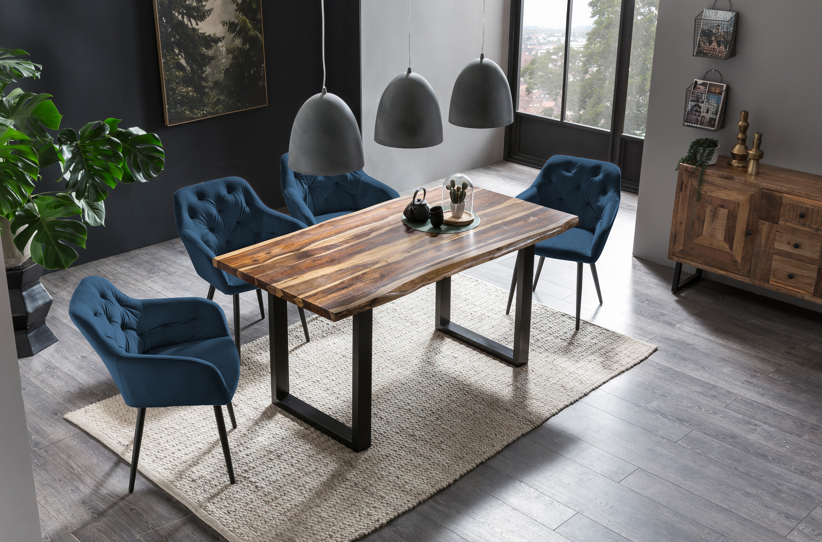 - attraktiver blauer Stoffbezug in Samt-Optik