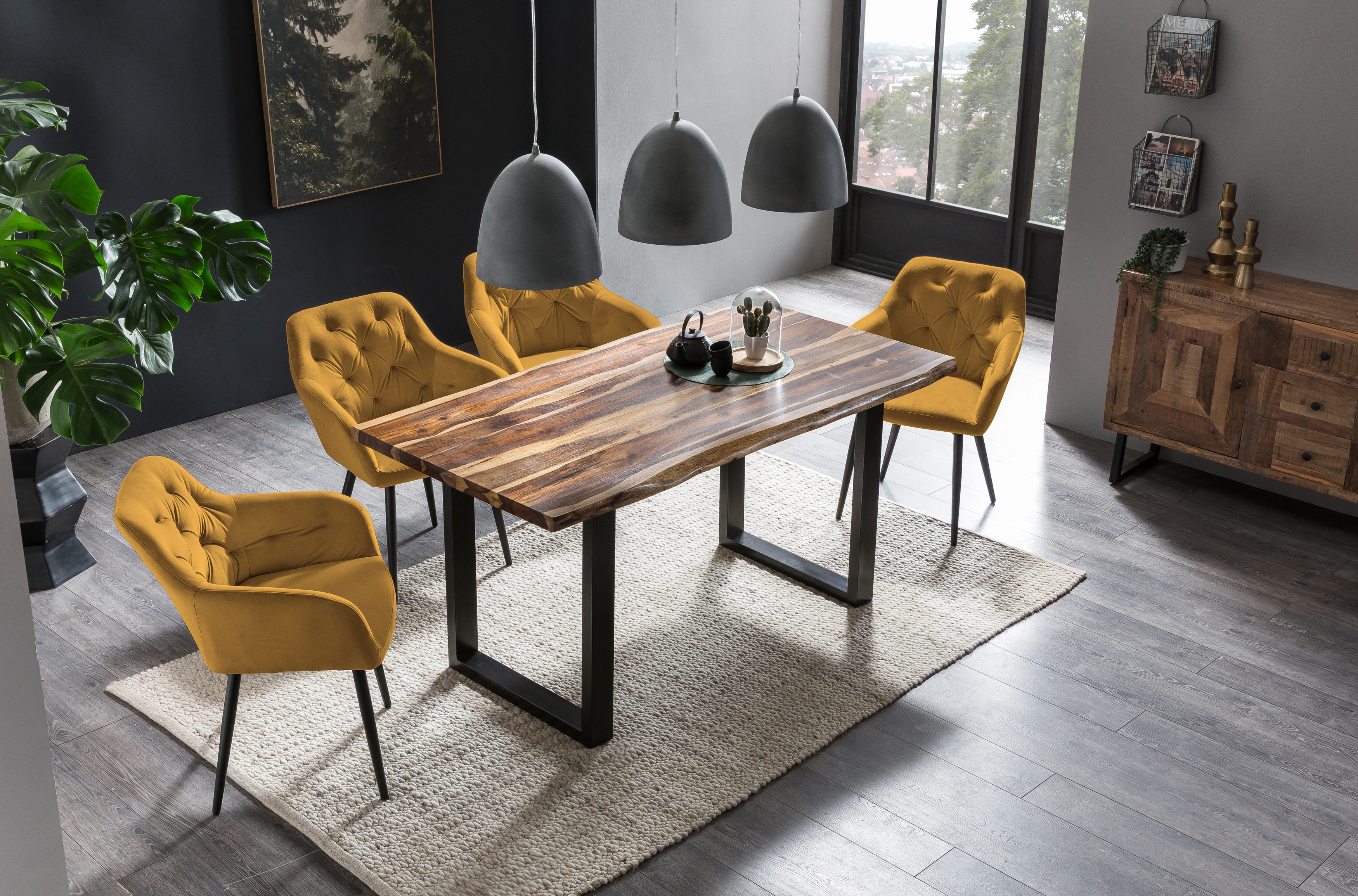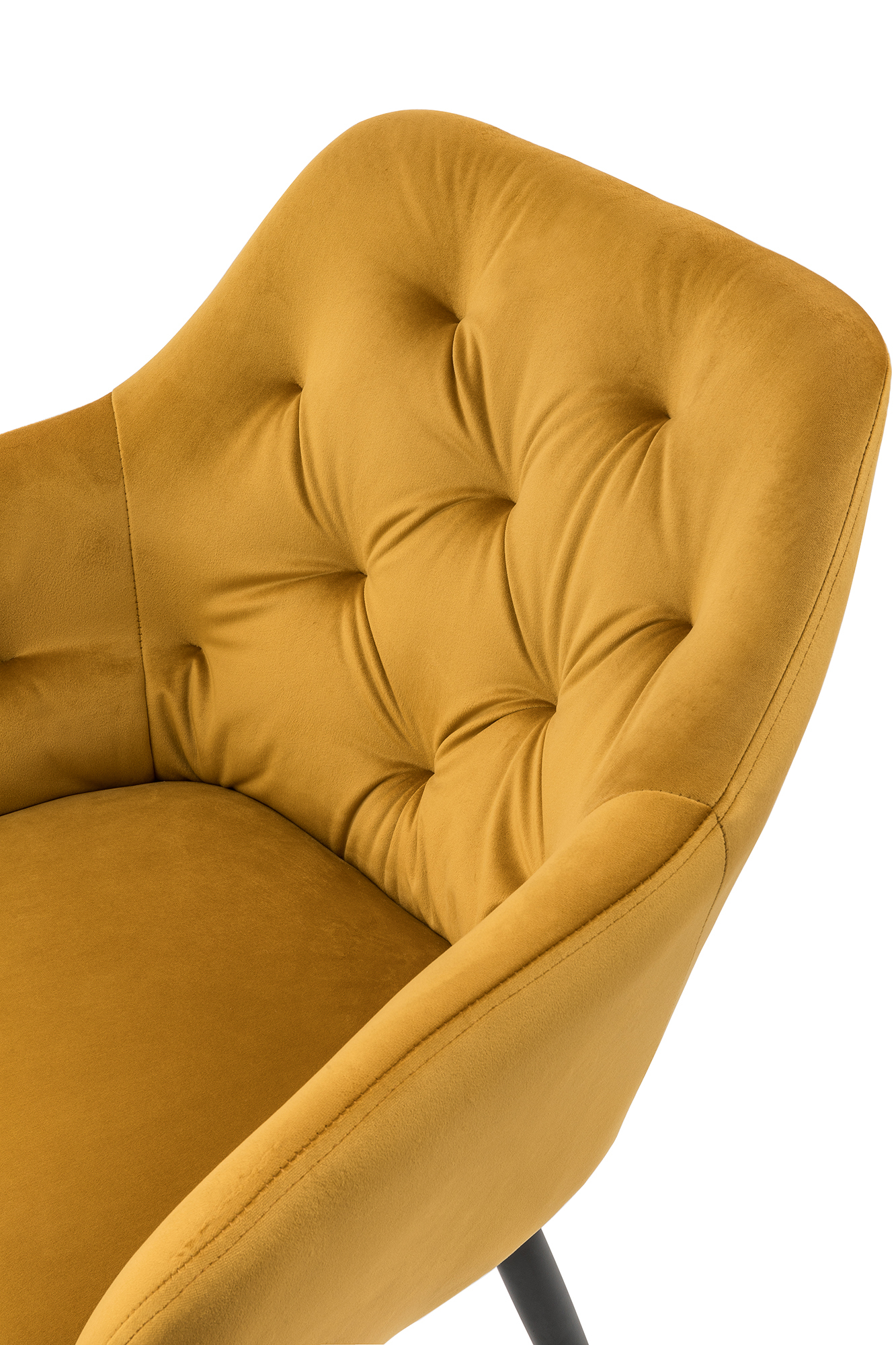 - attraktiver gelber Stoffbezug in Samt-Optik