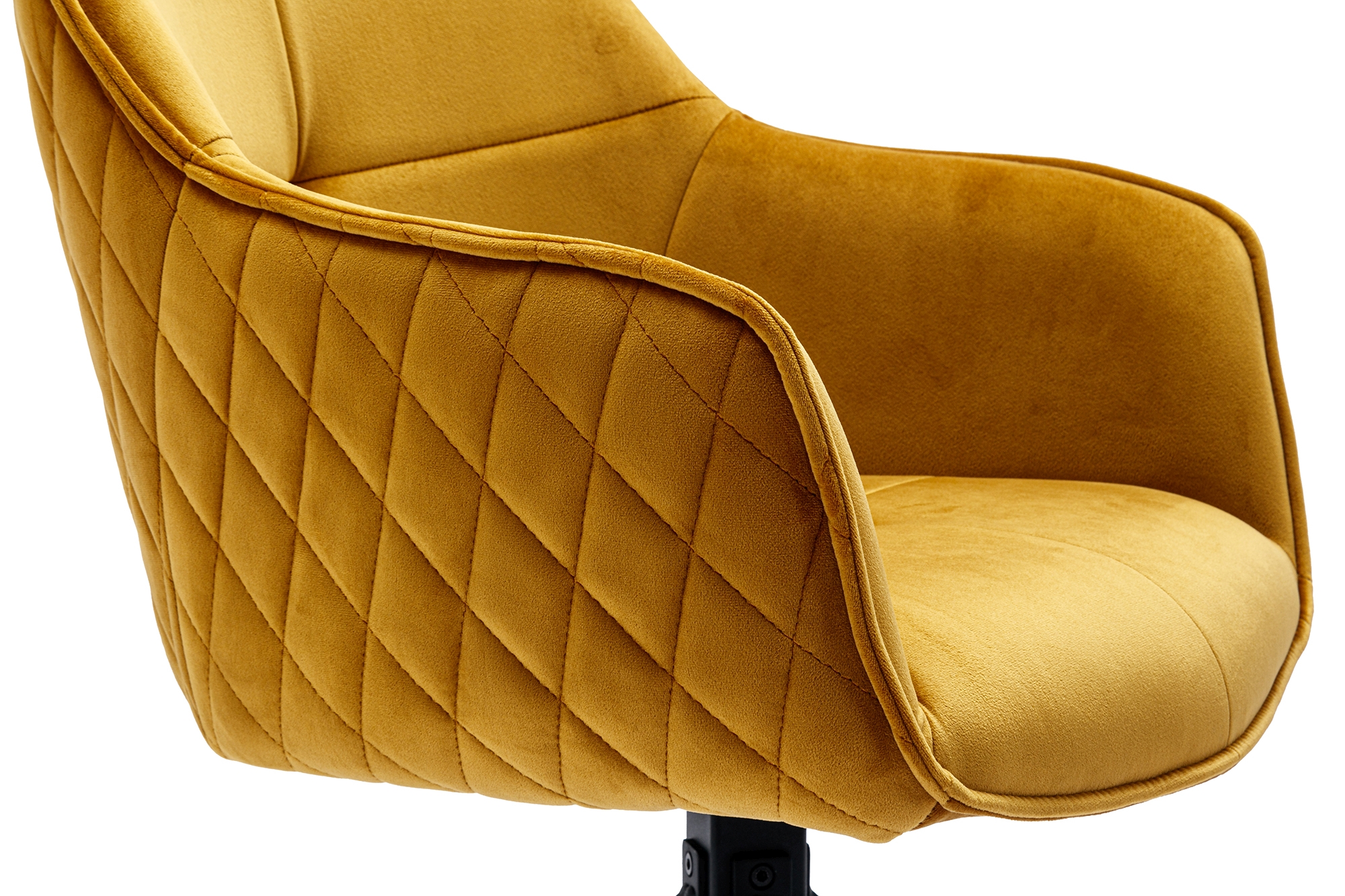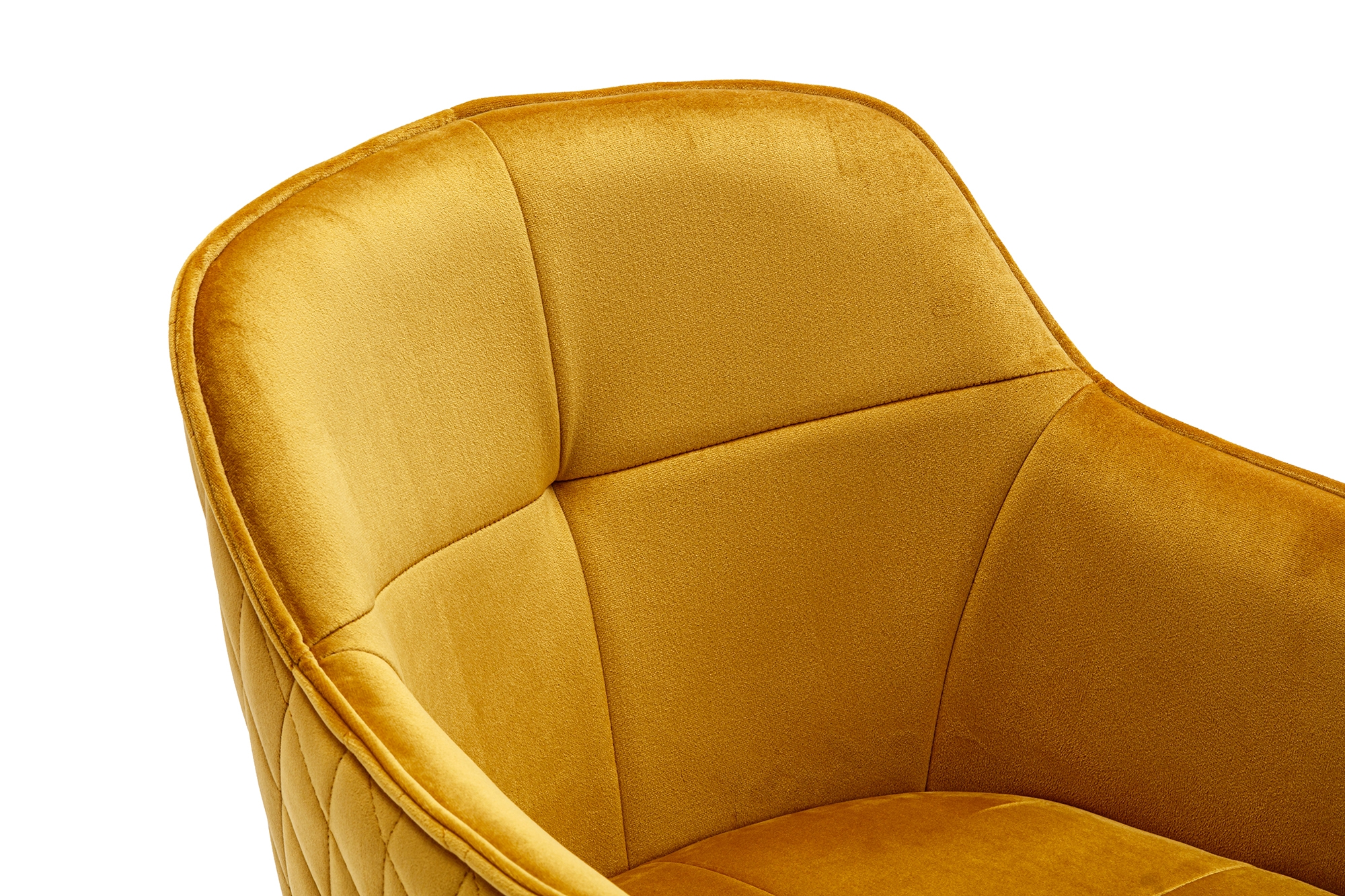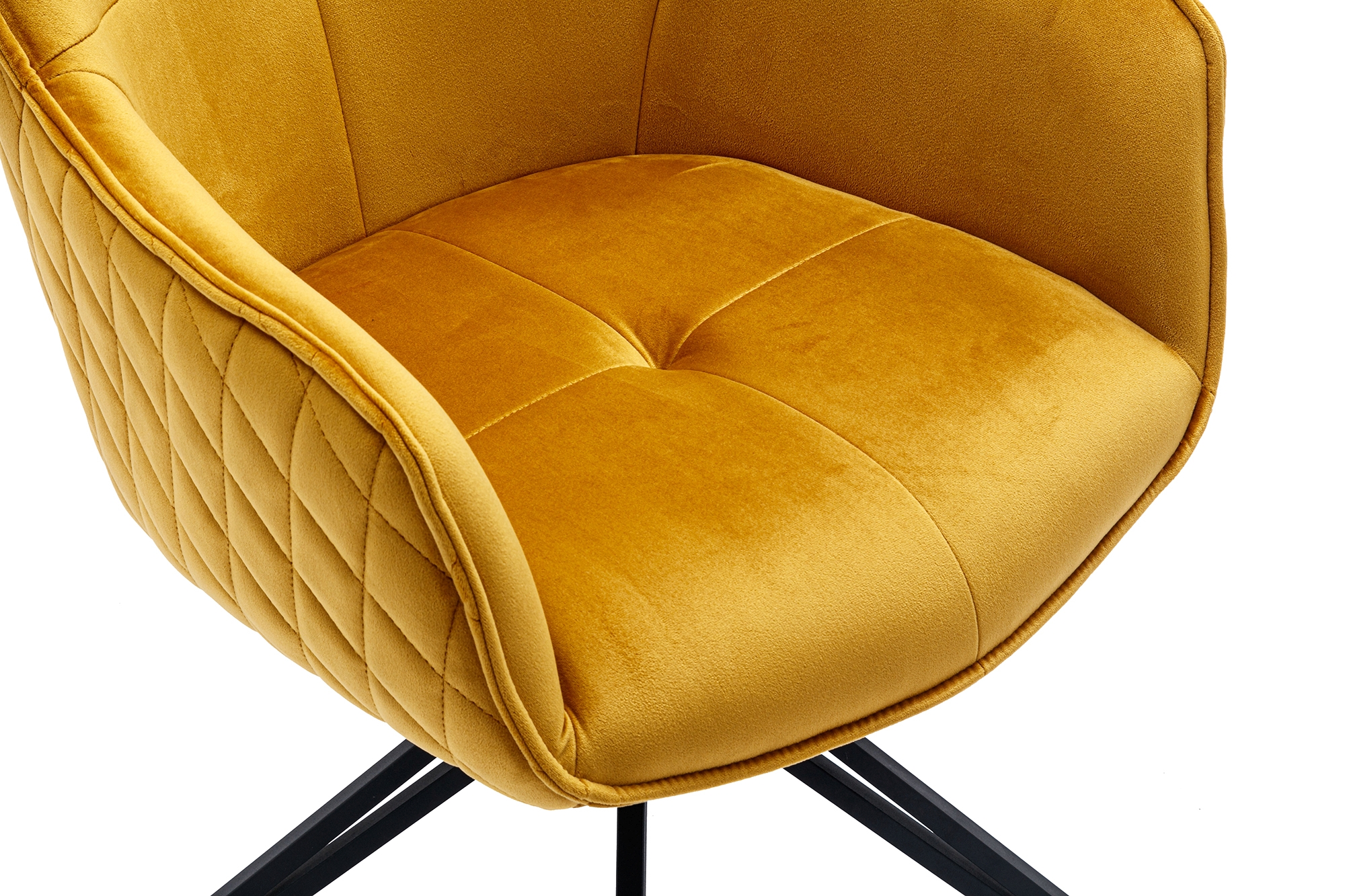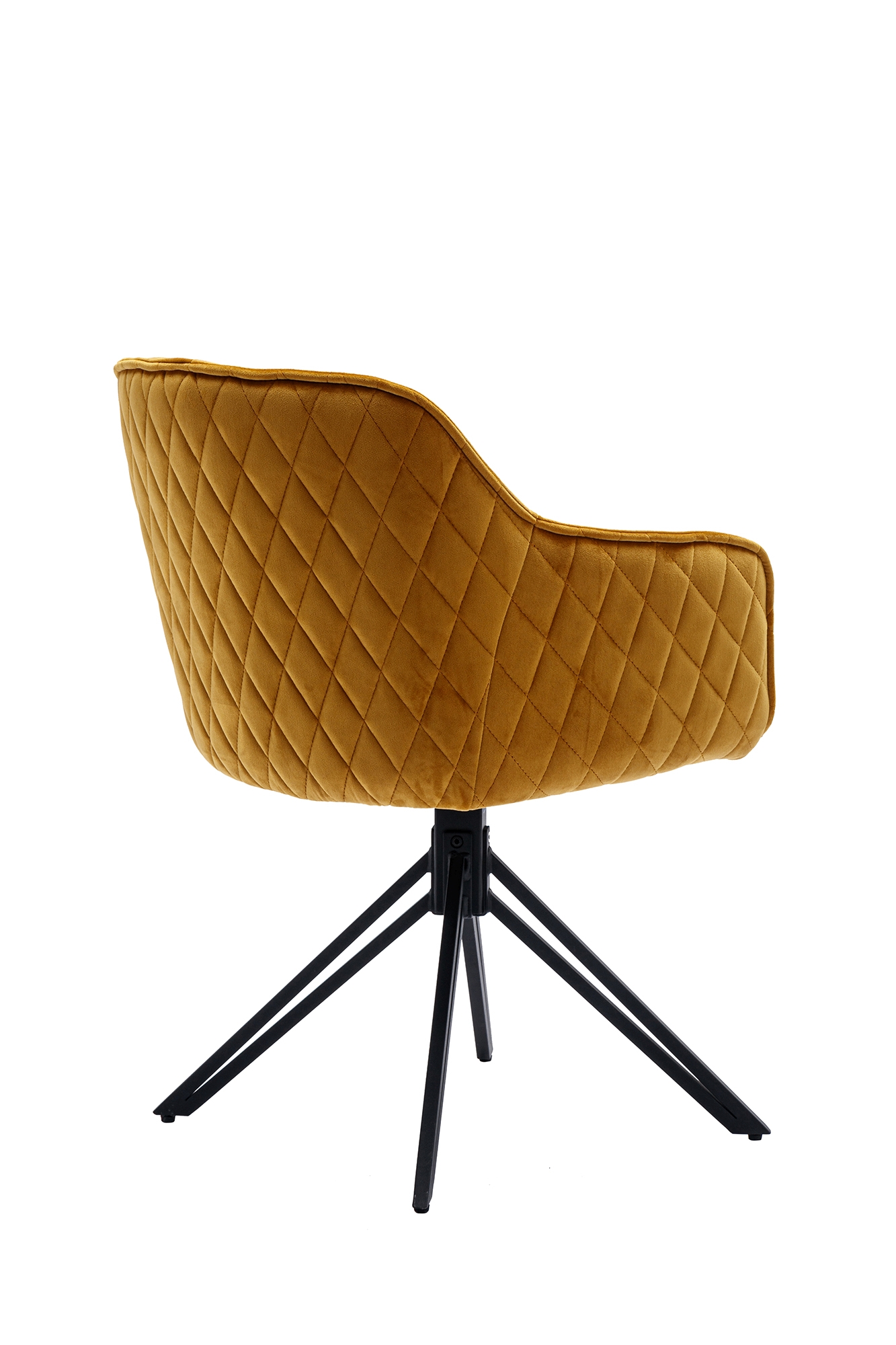 Der stylische Armlehnstuhl mit 360°-Drehfunktion bereichert mit besonders flexiblem Sitzkomfort Ihr Zuhause. Die Sitzschale lässt sich um 360° drehen. Der besondere Retro-Look des bequemen Stuhls macht das Sitzmöbel zum absoluten Hingucker. Das außergewöhnliche Design-Gestell aus schwarzem Metall und die hochwertig Wabensteppung im Rücken sind dabei nur zwei der hochwertigen Details des Polsters. Die schwarzen Metallbeine bilden einen interessanten Kontrast zu dem edlen Samt-Bezug der Sitzschale und sorgen für einen sicheren Stand. Ein Rundum besonderer Stuhl für Ihr Zuhause!