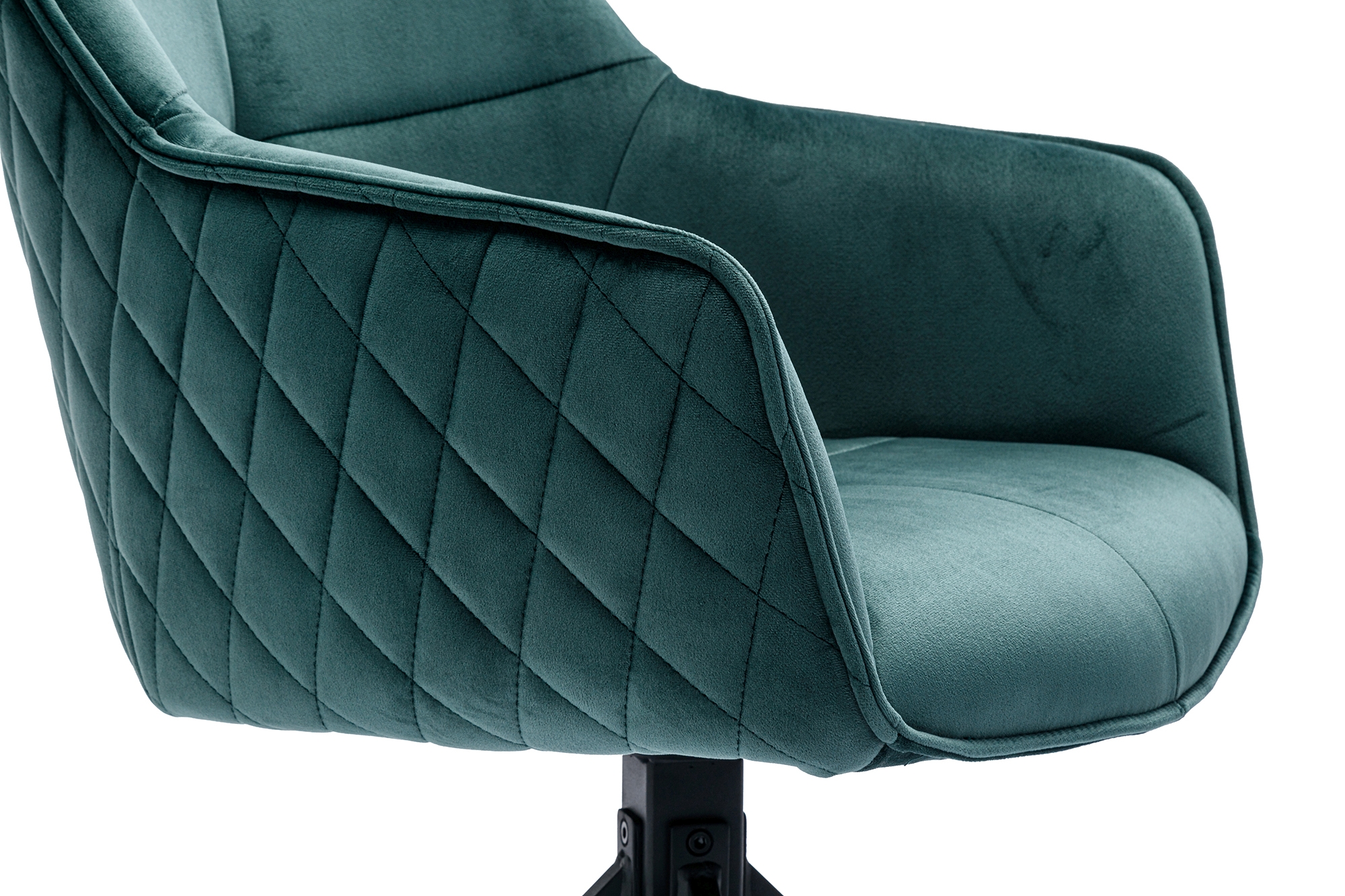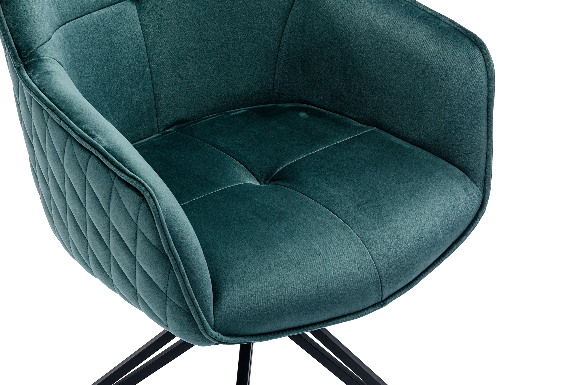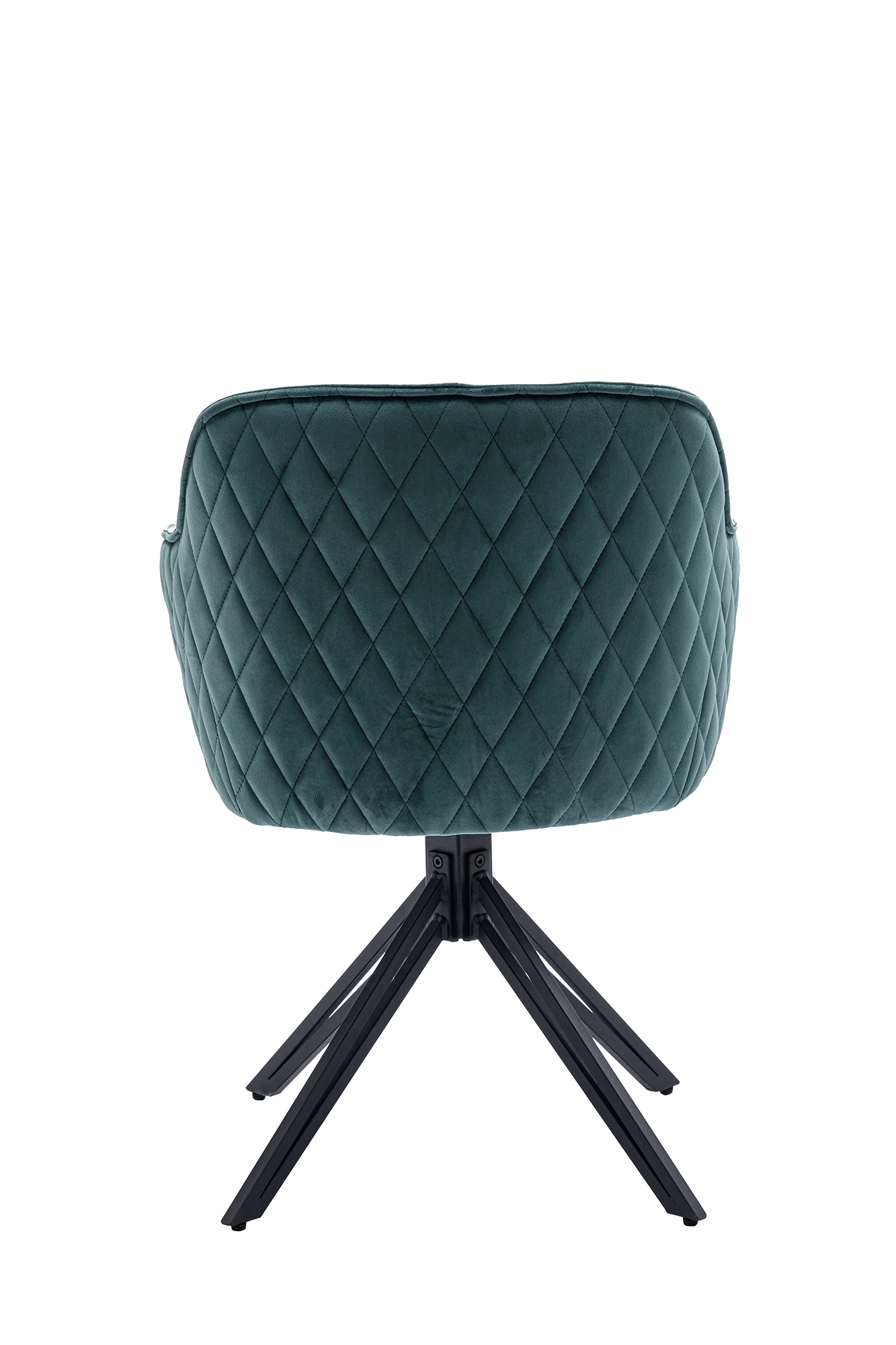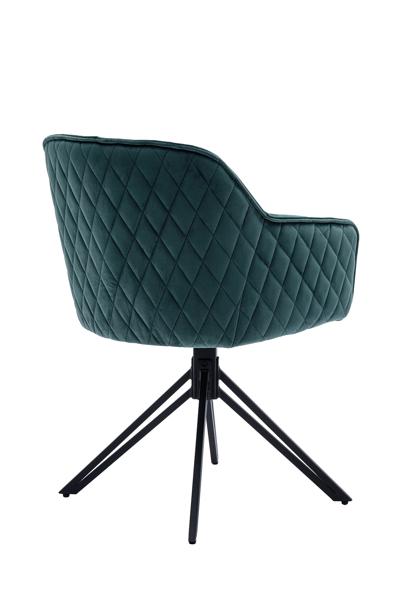 Der stylische Armlehnstuhl mit 360°-Drehfunktion bereichert mit besonders flexiblem Sitzkomfort Ihr Zuhause. Die Sitzschale lässt sich um 360° drehen. Der besondere Retro-Look des bequemen Stuhls macht das Sitzmöbel zum absoluten Hingucker. Das außergewöhnliche Design-Gestell aus schwarzem Metall und die hochwertig Wabensteppung im Rücken sind dabei nur zwei der hochwertigen Details des Polsters. Die schwarzen Metallbeine bilden einen interessanten Kontrast zu dem edlen Samt-Bezug der Sitzschale und sorgen für einen sicheren Stand. Ein Rundum besonderer Stuhl für Ihr Zuhause!