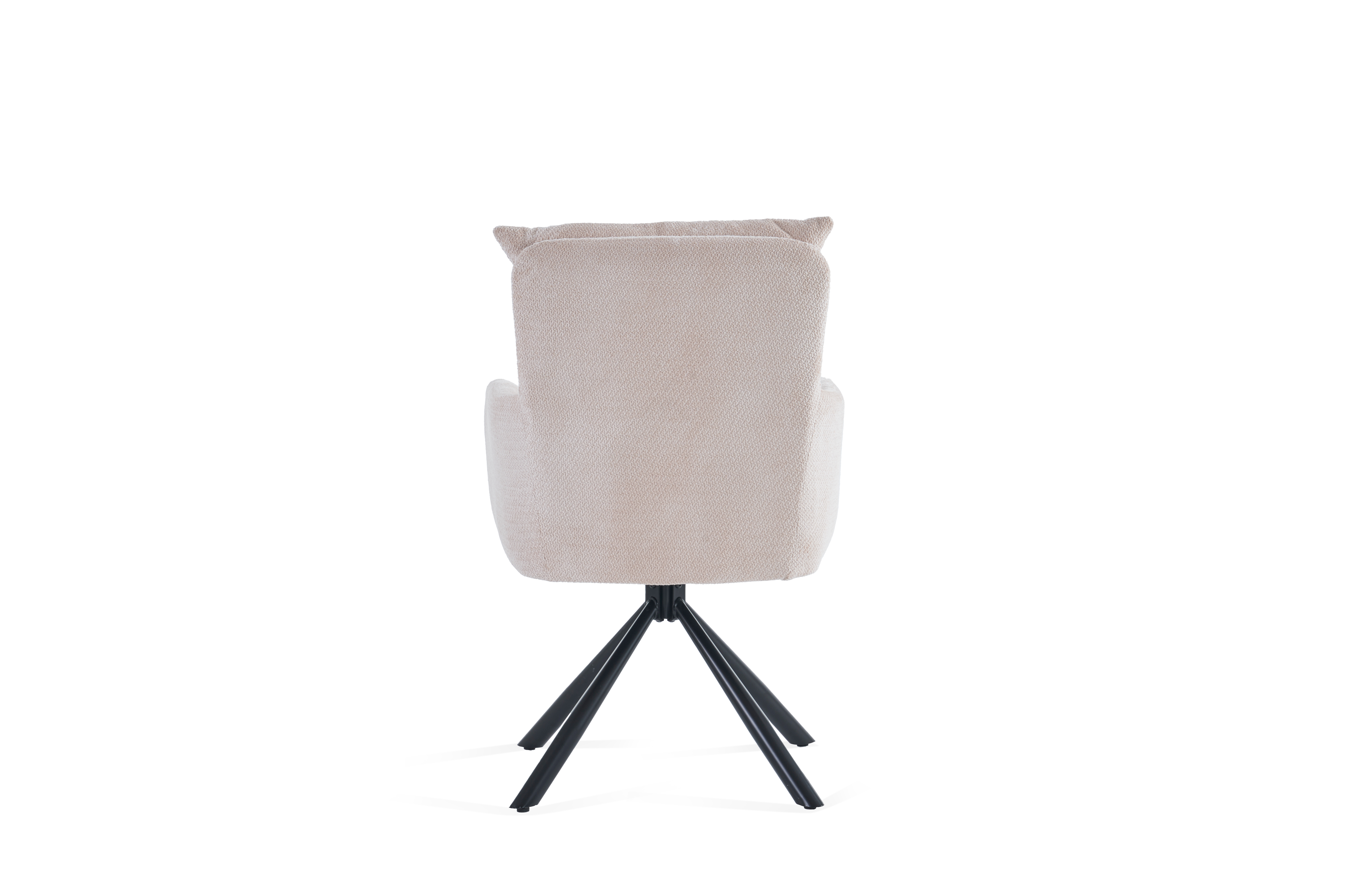 Ein besonderes Highlight ist die 180-Grad-Drehfunktion mit Rückholmechanik, die für zusätzliche Bewegungsfreiheit sorgt und den Stuhl nach dem Aufstehen automatisch in seine Ausgangsposition zurückführt. Das stabile Metallgestell gewährleistet einen sicheren Stand und unterstreicht den modernen Charakter des Stuhls.