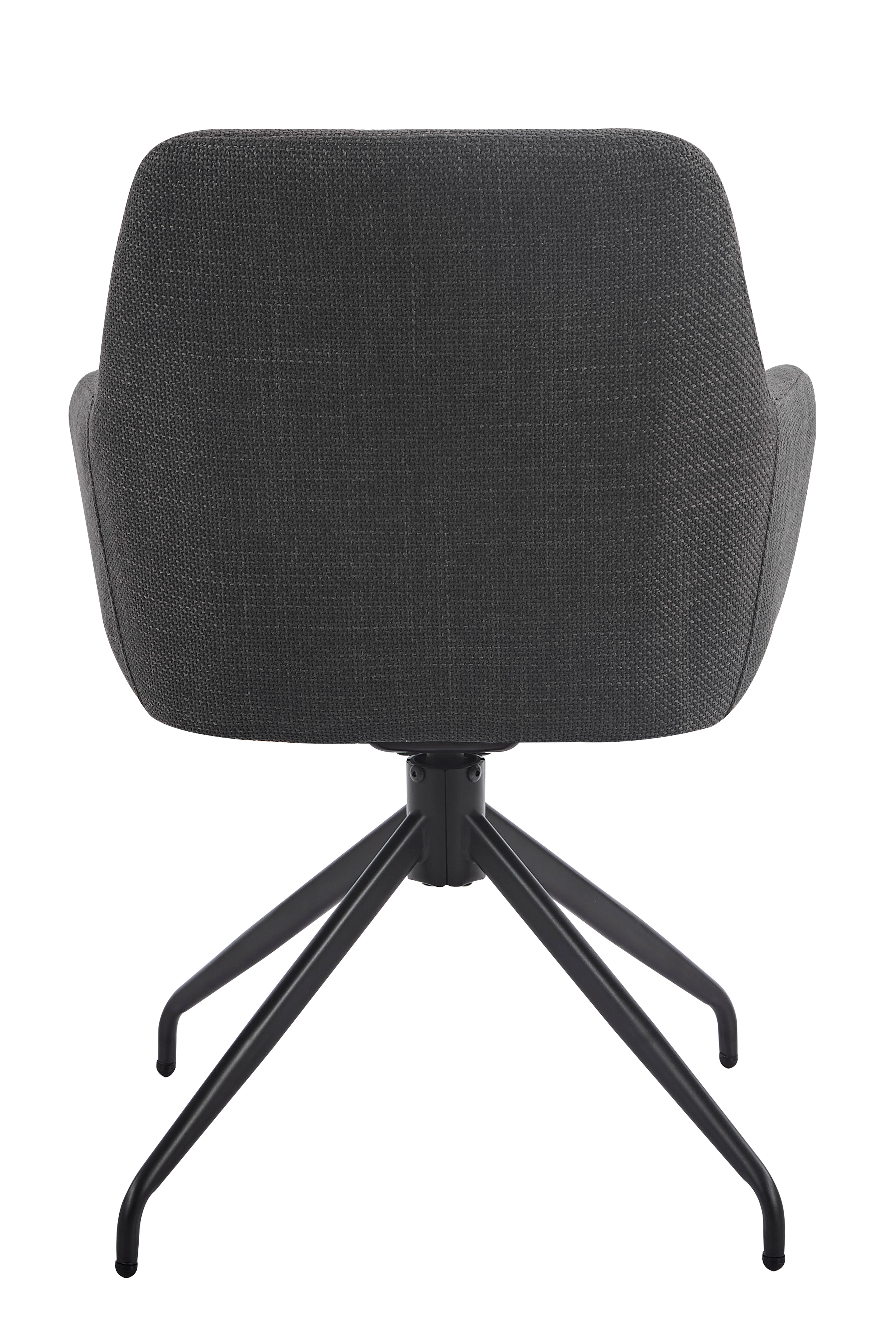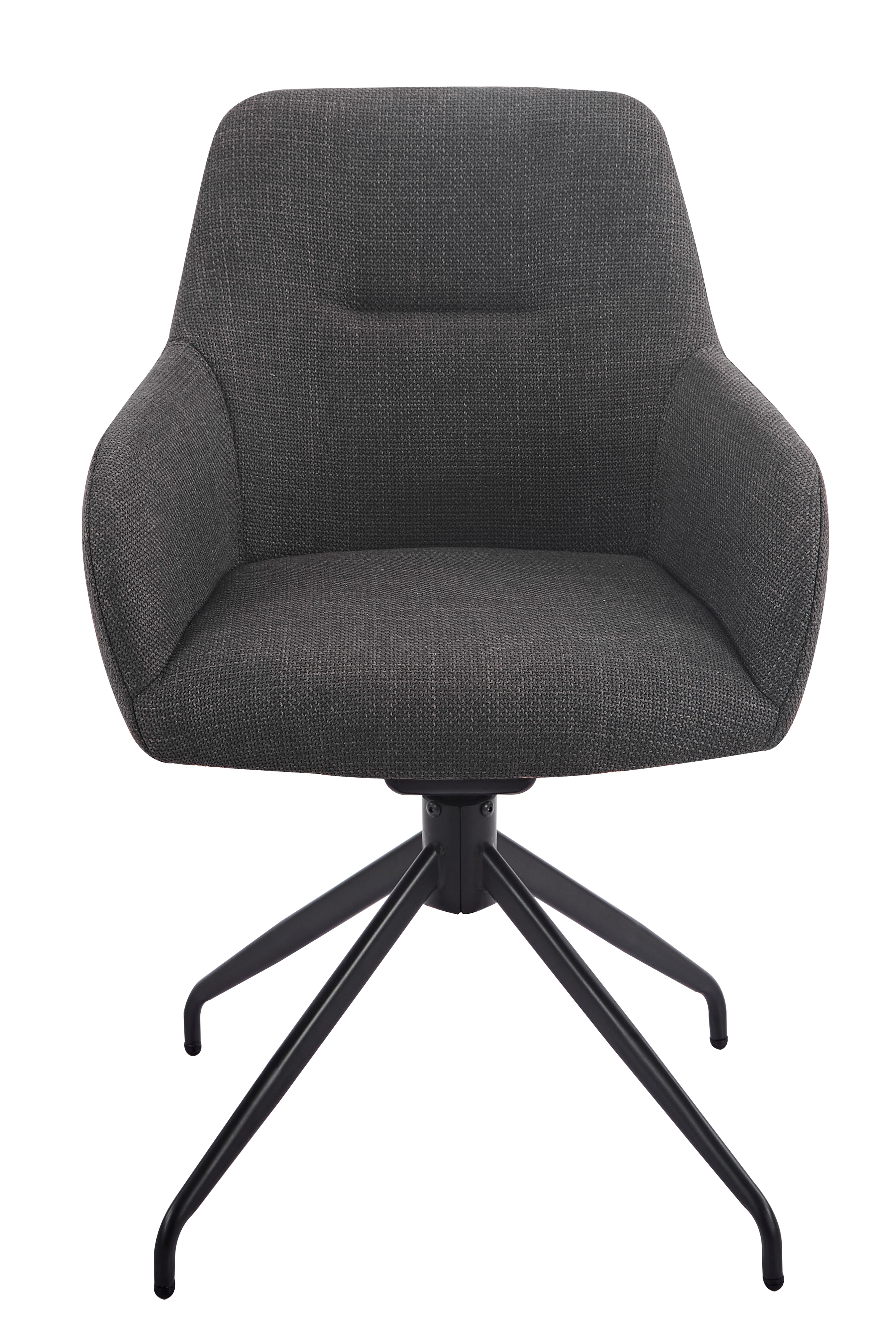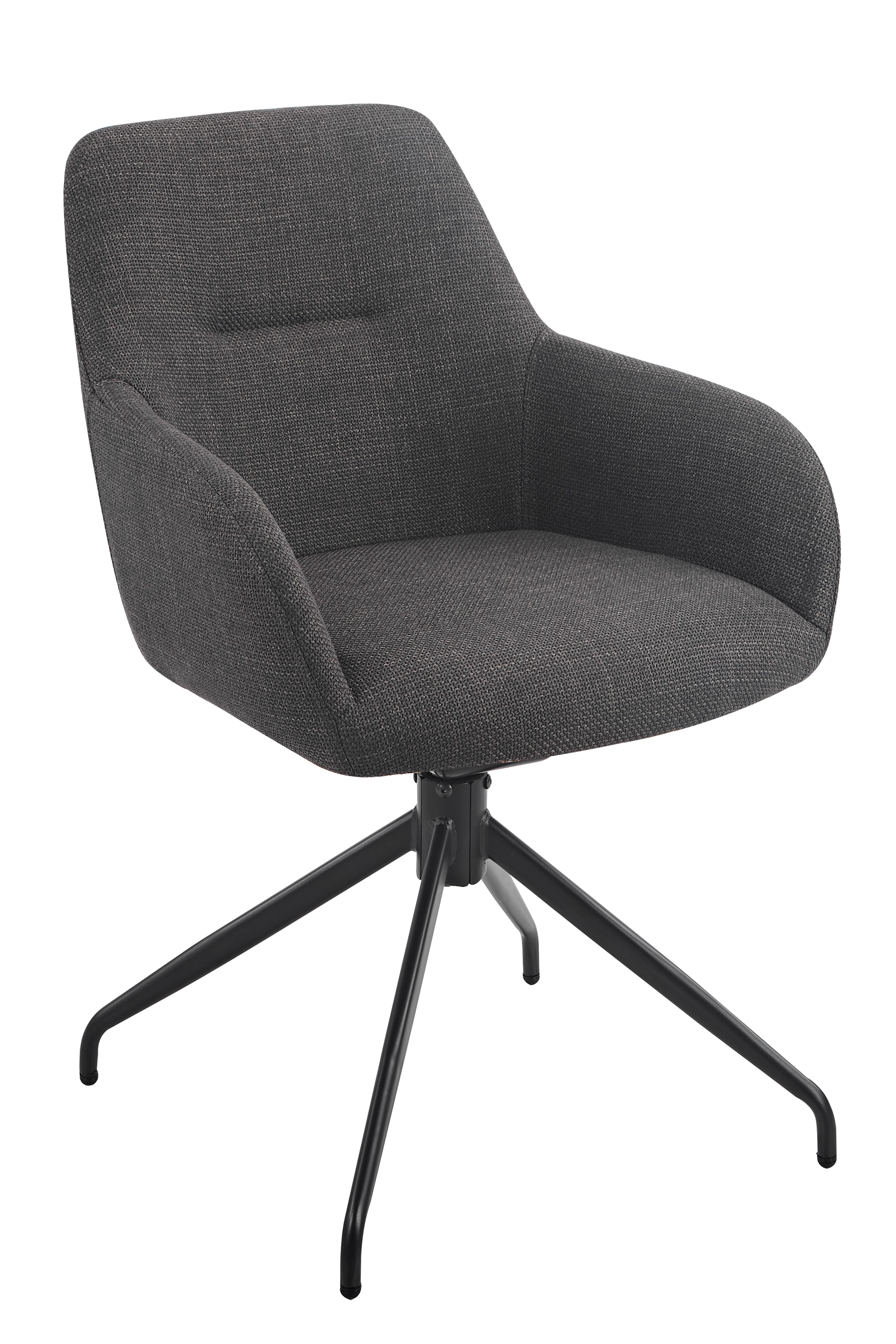 Der Drehstuhl mit Relaxfunktion überzeugt durch seine praktische Ausstattung und langlebige Materialien. Der anthrazitfarbene Bezug aus Microfaser-Webstoff (100% Polyester) ist pflegeleicht und strapazierfähig - ideal für den täglichen Gebrauch. Die schwarze Metallkonstruktion mit pulverbeschichteter, strukturierter Oberfläche sorgt für Stabilität. Eine fest gepolsterte Sitzschale mit Steppnähten, integrierte Armlehnen und die 360°-Drehfunktion bieten zusätzlichen Komfort. Dank der Relaxfunktion eignet sich der Stuhl sowohl für den Essbereich als auch als bequeme Sitzgelegenheit im Wohnraum. Die Belastbarkeit beträgt bis zu ca. 120kg. Geliefert wird ein Stuhl - direkt einsatzbereit.