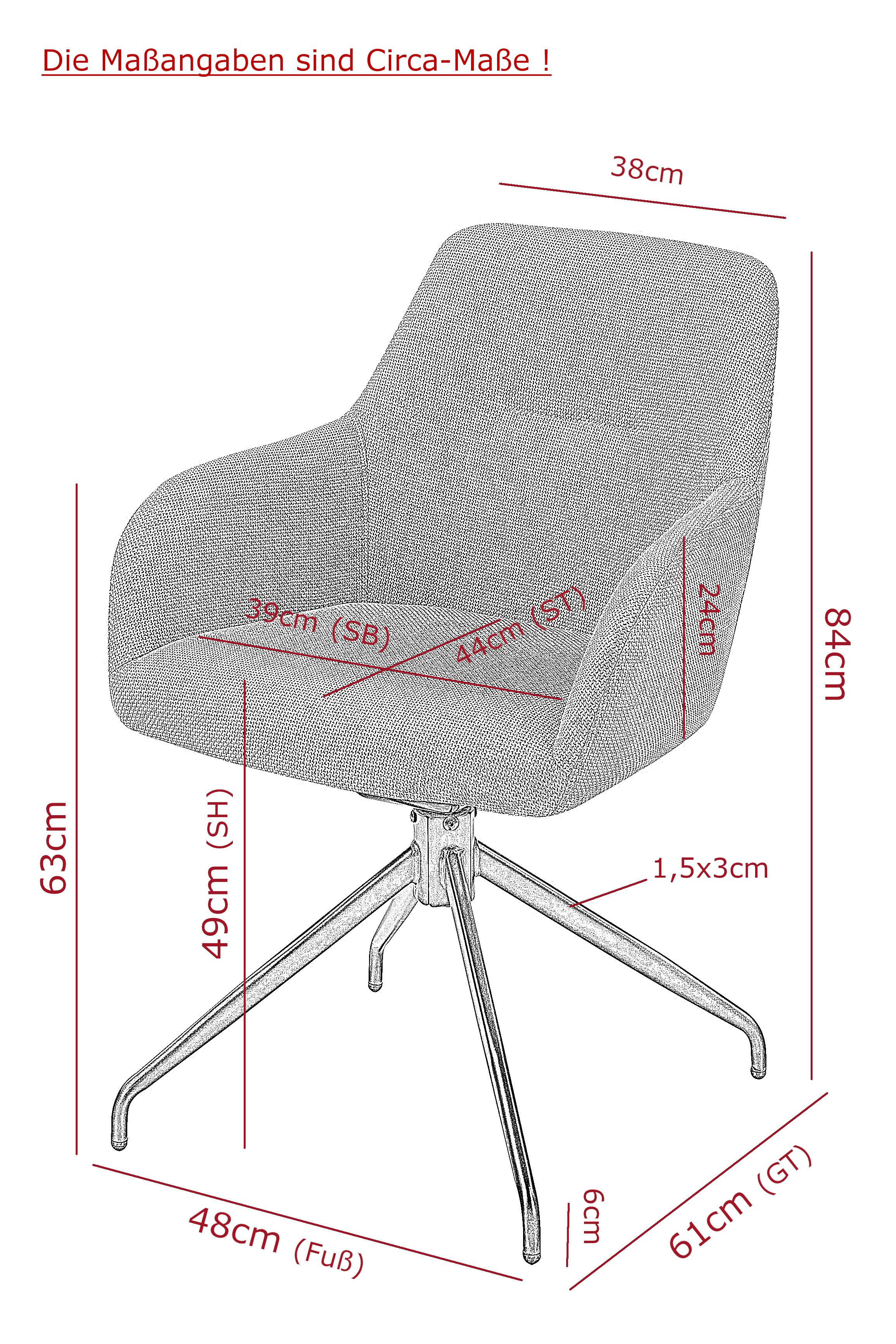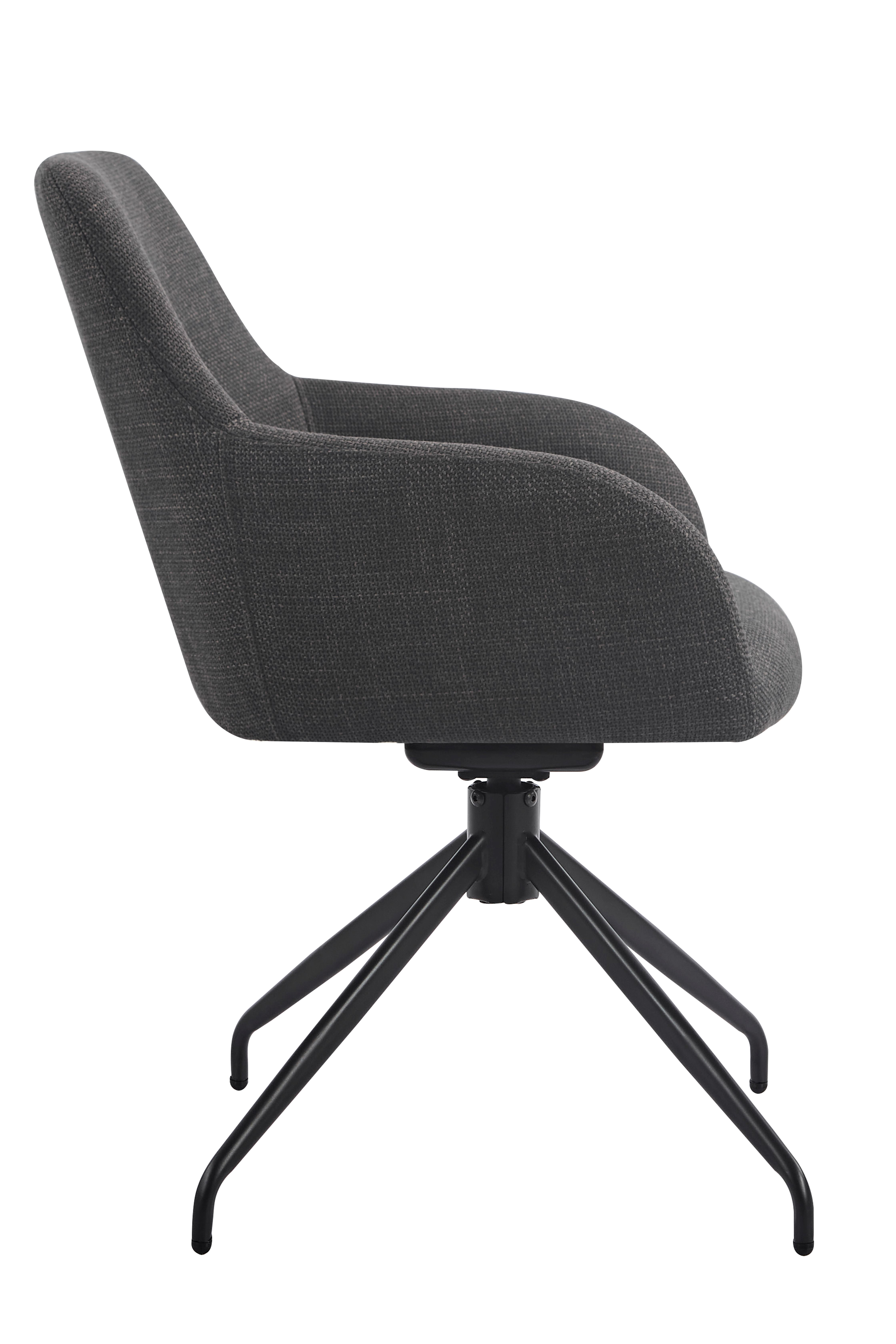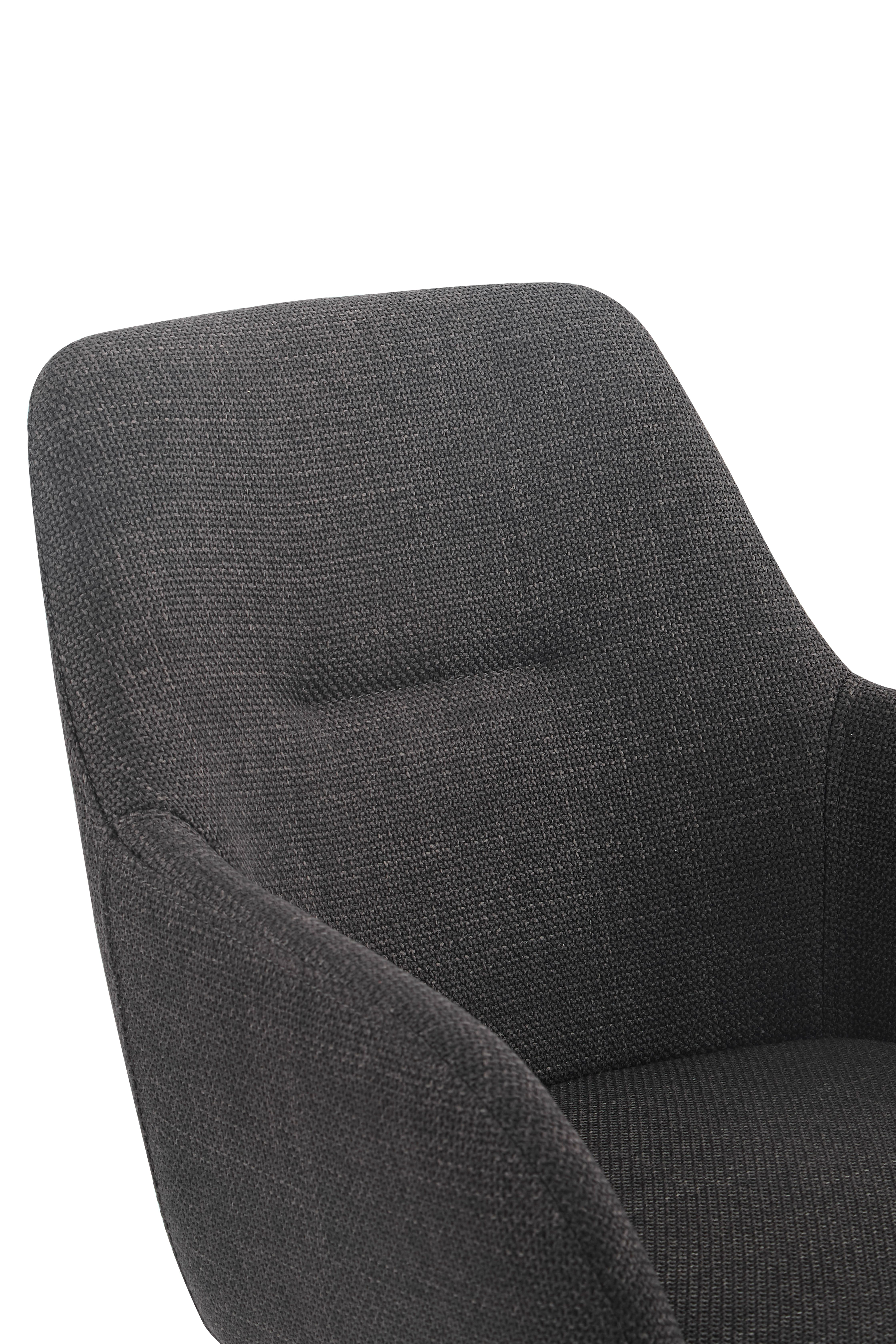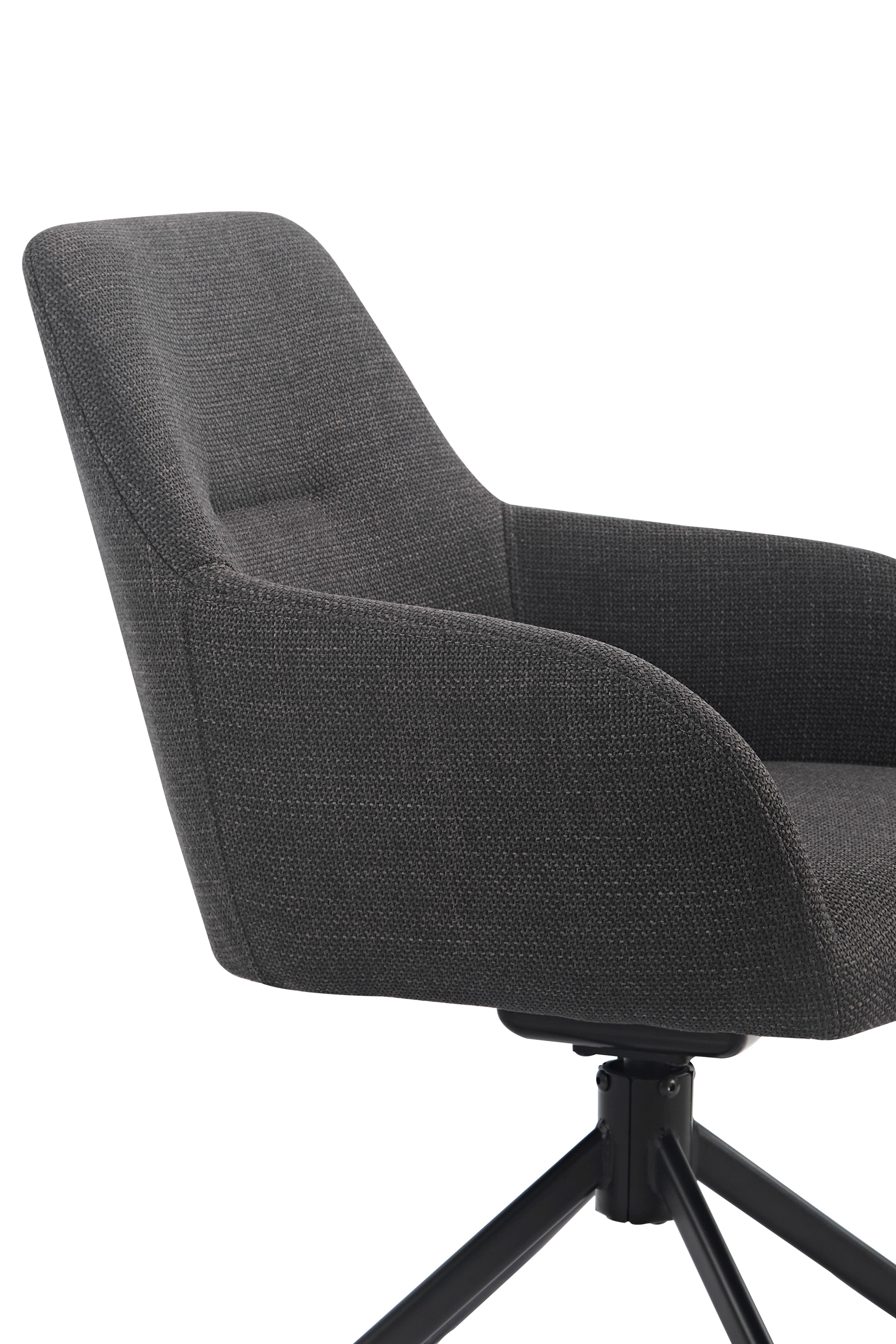Der Drehstuhl mit Relaxfunktion überzeugt durch seine praktische Ausstattung und langlebige Materialien. Der anthrazitfarbene Bezug aus Microfaser-Webstoff (100% Polyester) ist pflegeleicht und strapazierfähig - ideal für den täglichen Gebrauch. Die schwarze Metallkonstruktion mit pulverbeschichteter, strukturierter Oberfläche sorgt für Stabilität. Eine fest gepolsterte Sitzschale mit Steppnähten, integrierte Armlehnen und die 360°-Drehfunktion bieten zusätzlichen Komfort. Dank der Relaxfunktion eignet sich der Stuhl sowohl für den Essbereich als auch als bequeme Sitzgelegenheit im Wohnraum. Die Belastbarkeit beträgt bis zu ca. 120kg. Geliefert wird ein Stuhl - direkt einsatzbereit.