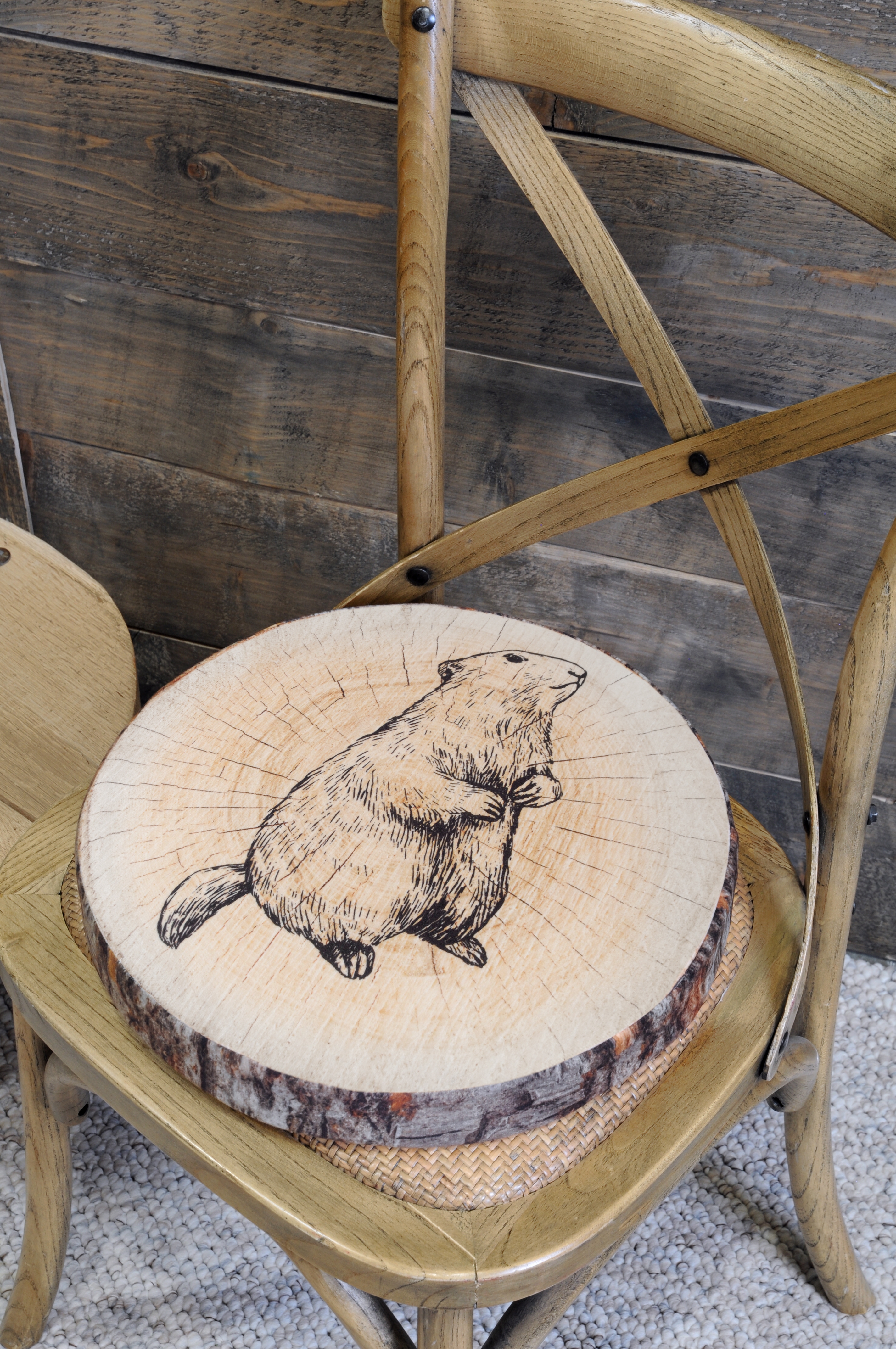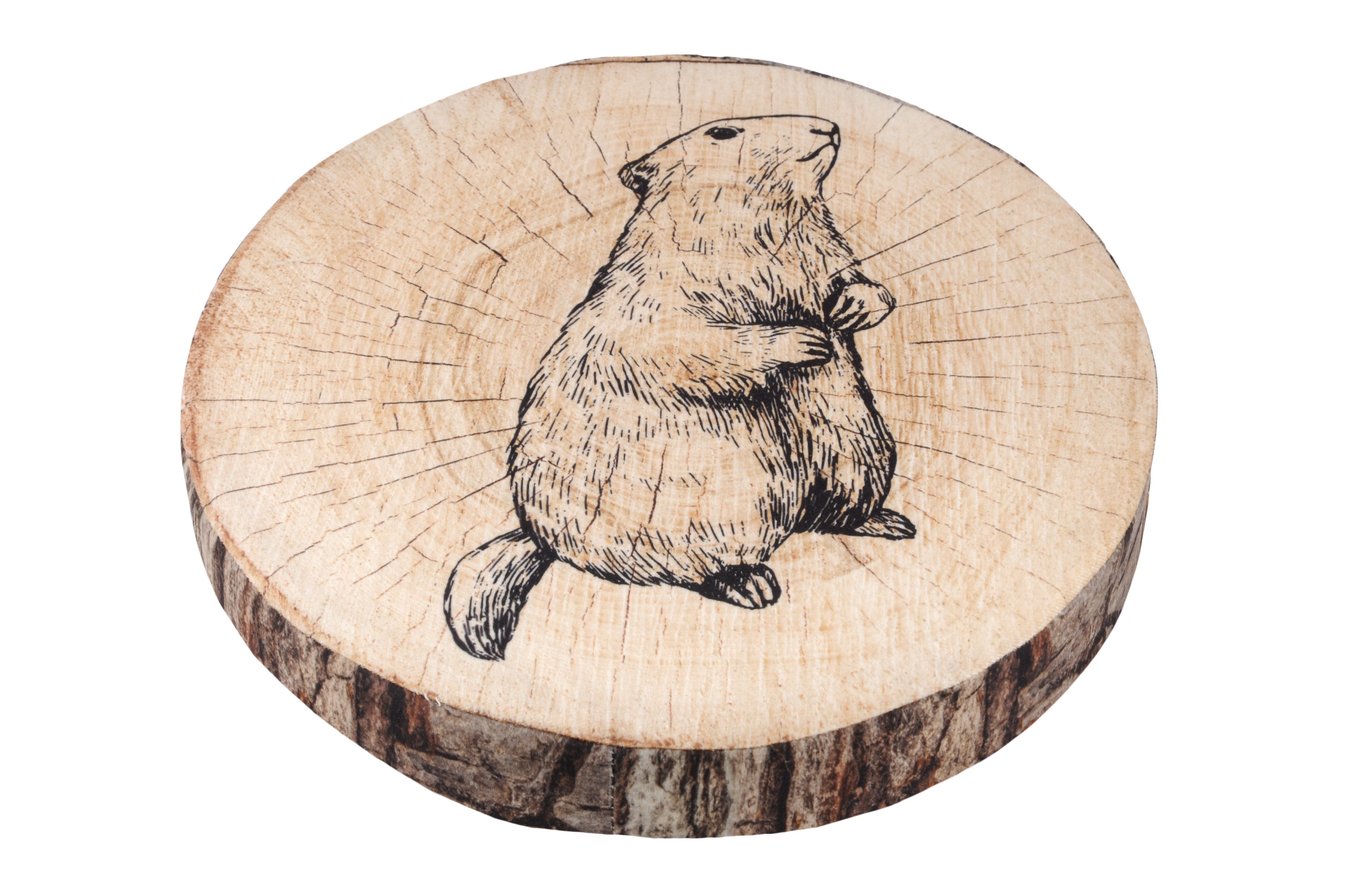 Farbe: beige, braun mit 2 Motiven Vorder und Rückseite bedruckt mit Hirsch und Murmeltier