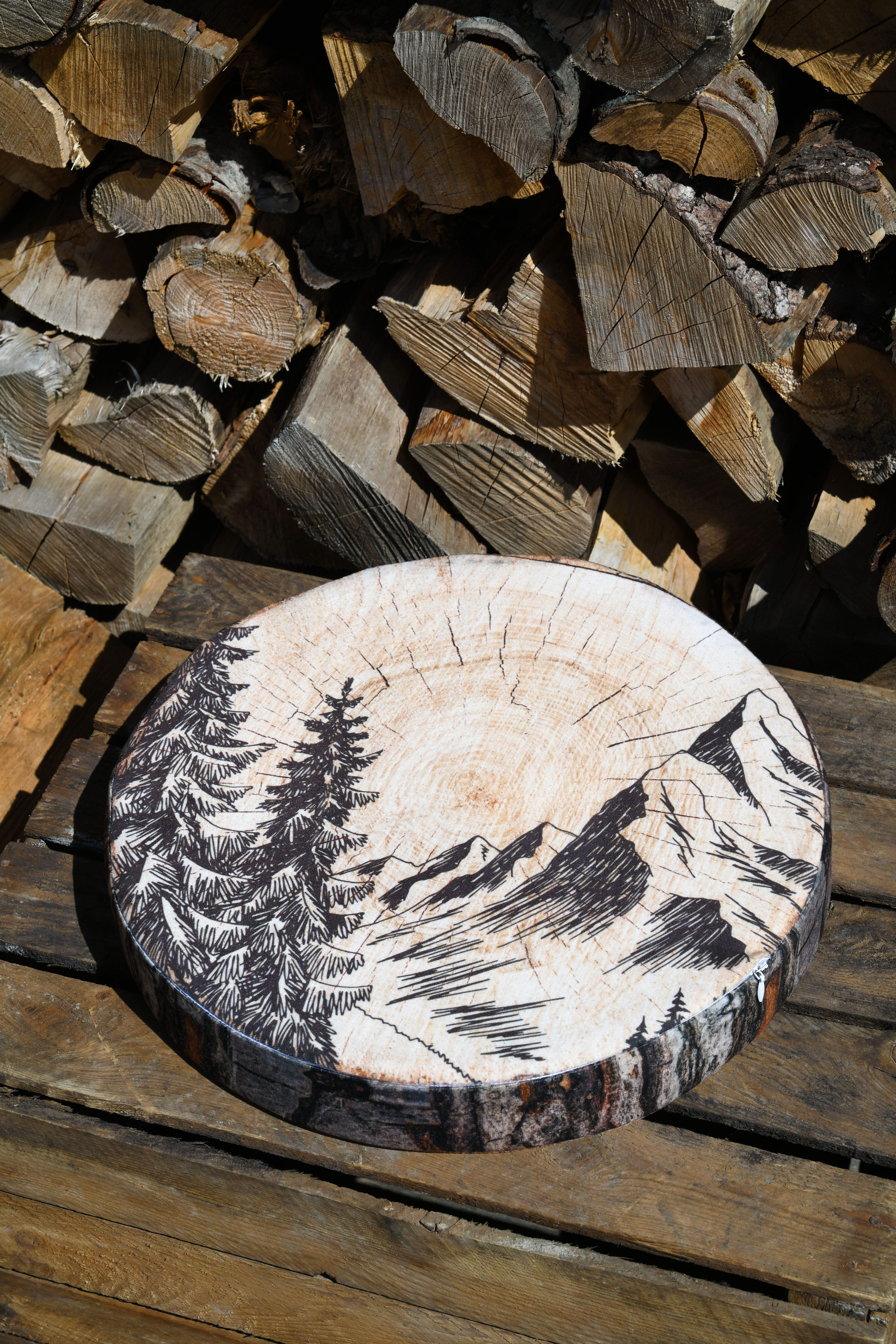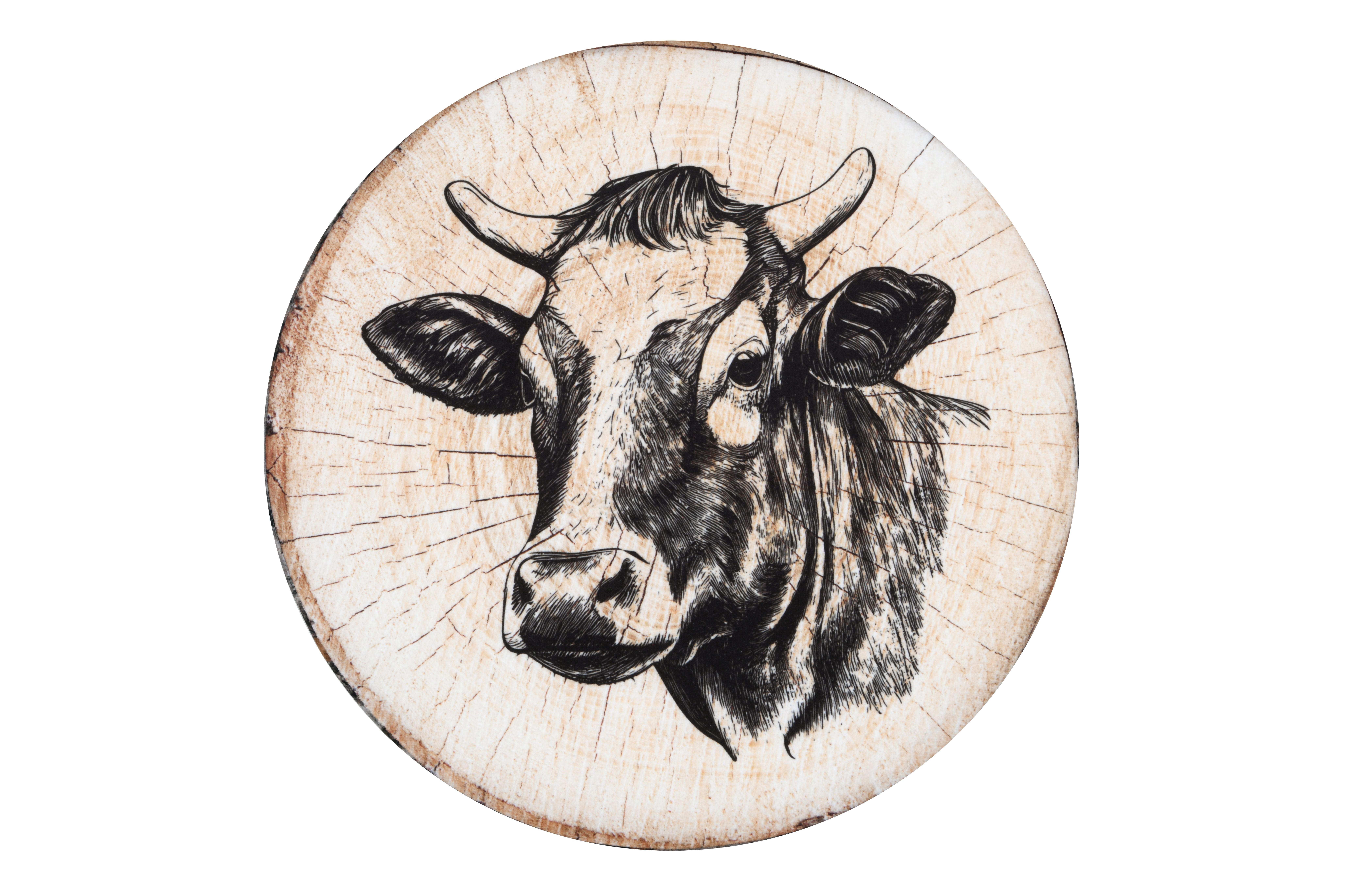 Farbe: beige, braun, schwarz mit 2 Motiven Vorder und Rückseite bedruckt mit Kuh und Bergwelt
