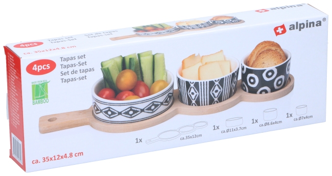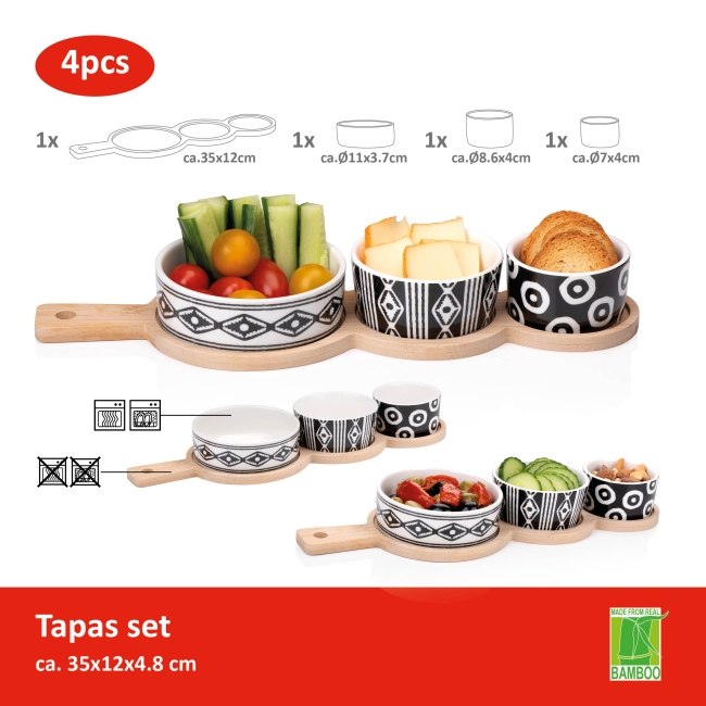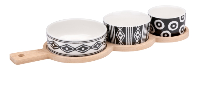 1 Tapas Set 4tlg. bestehend aus 3 Schälchen und 1 Holztablett