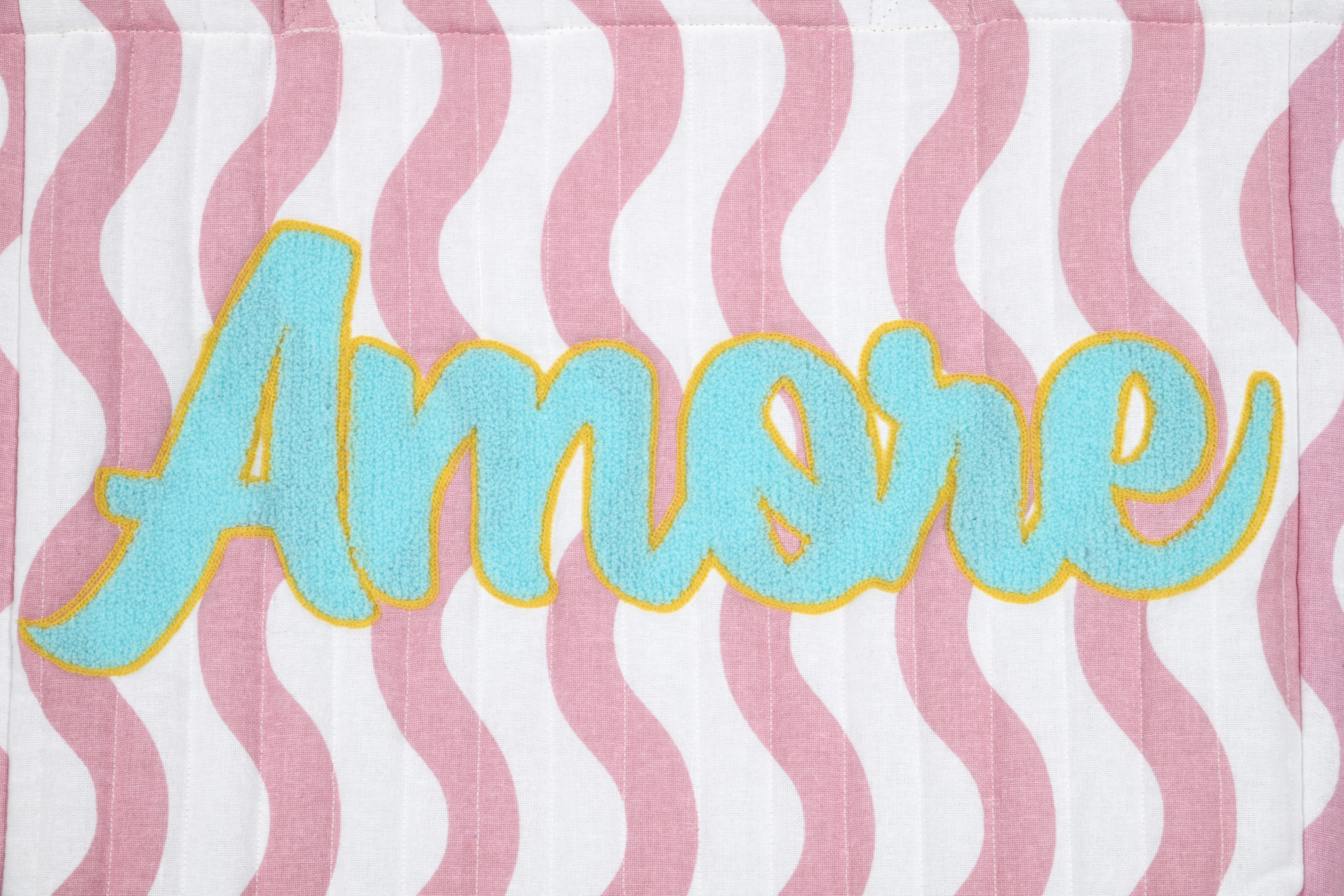 mit gesticktem Schriftzug Amore in türkis